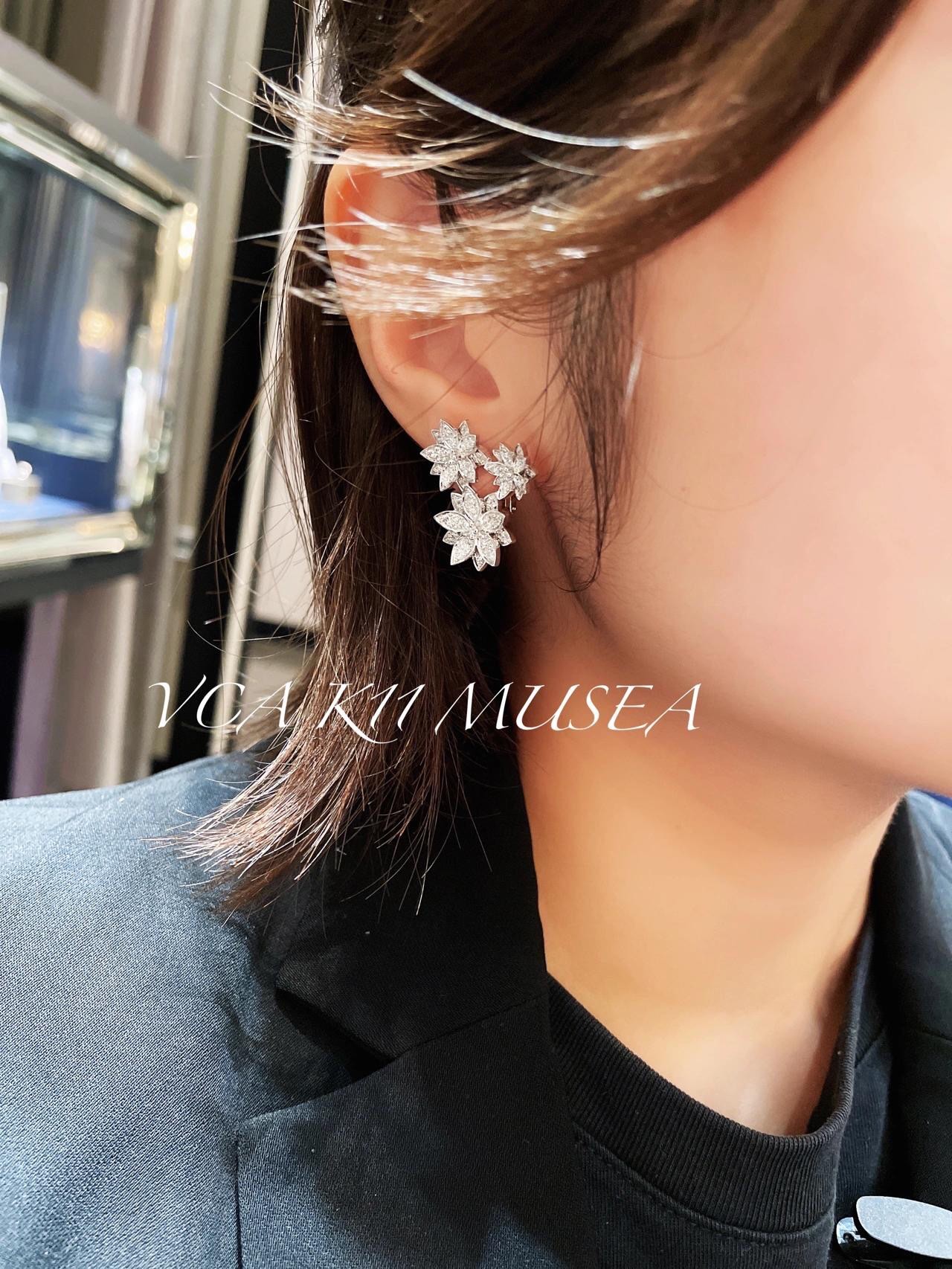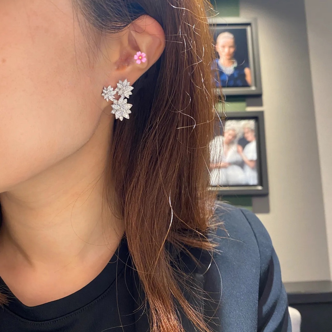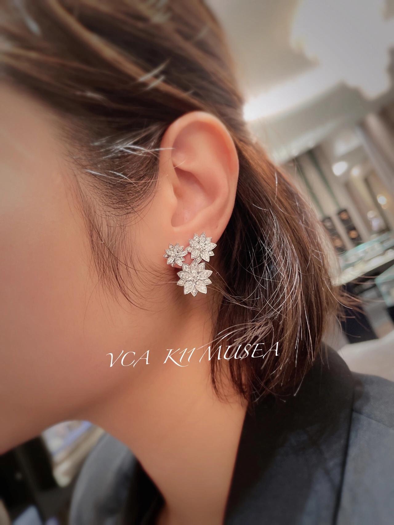 NIGO Van Cleef&Arpels Women's Silver Lotus Flower Diamond Stud Earrings Jewelry #nigo73529