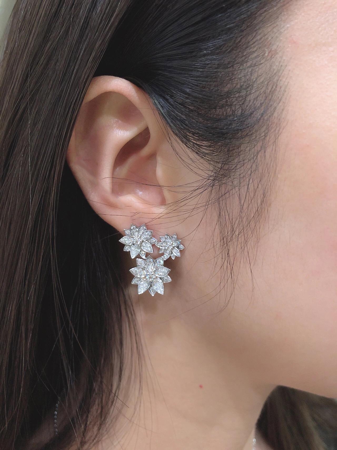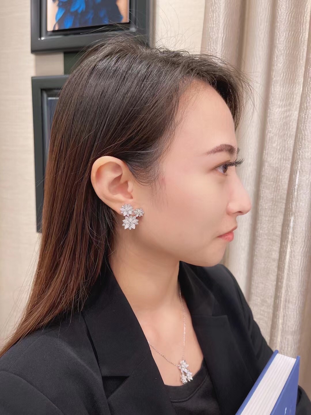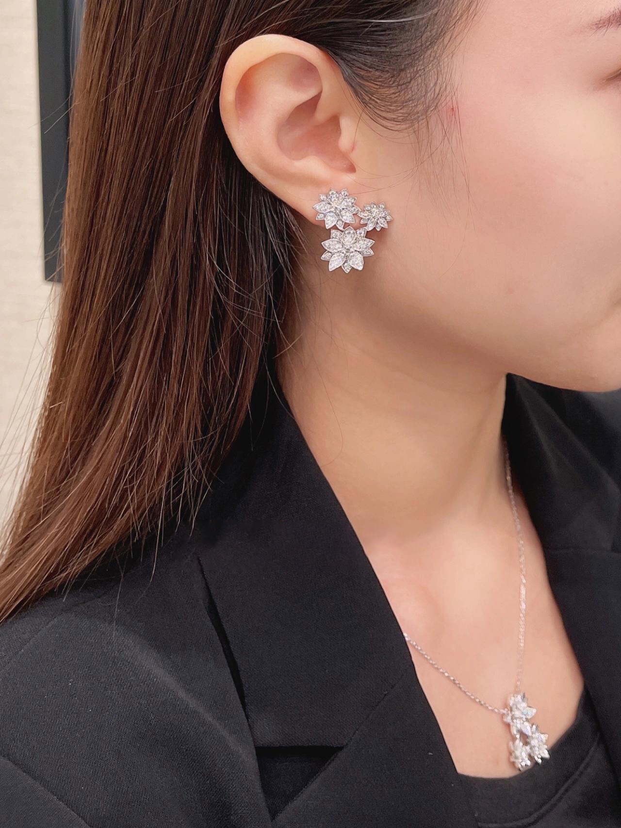 NIGO Van Cleef&Arpels Women's Silver Lotus Flower Diamond Stud Earrings Jewelry #nigo73529