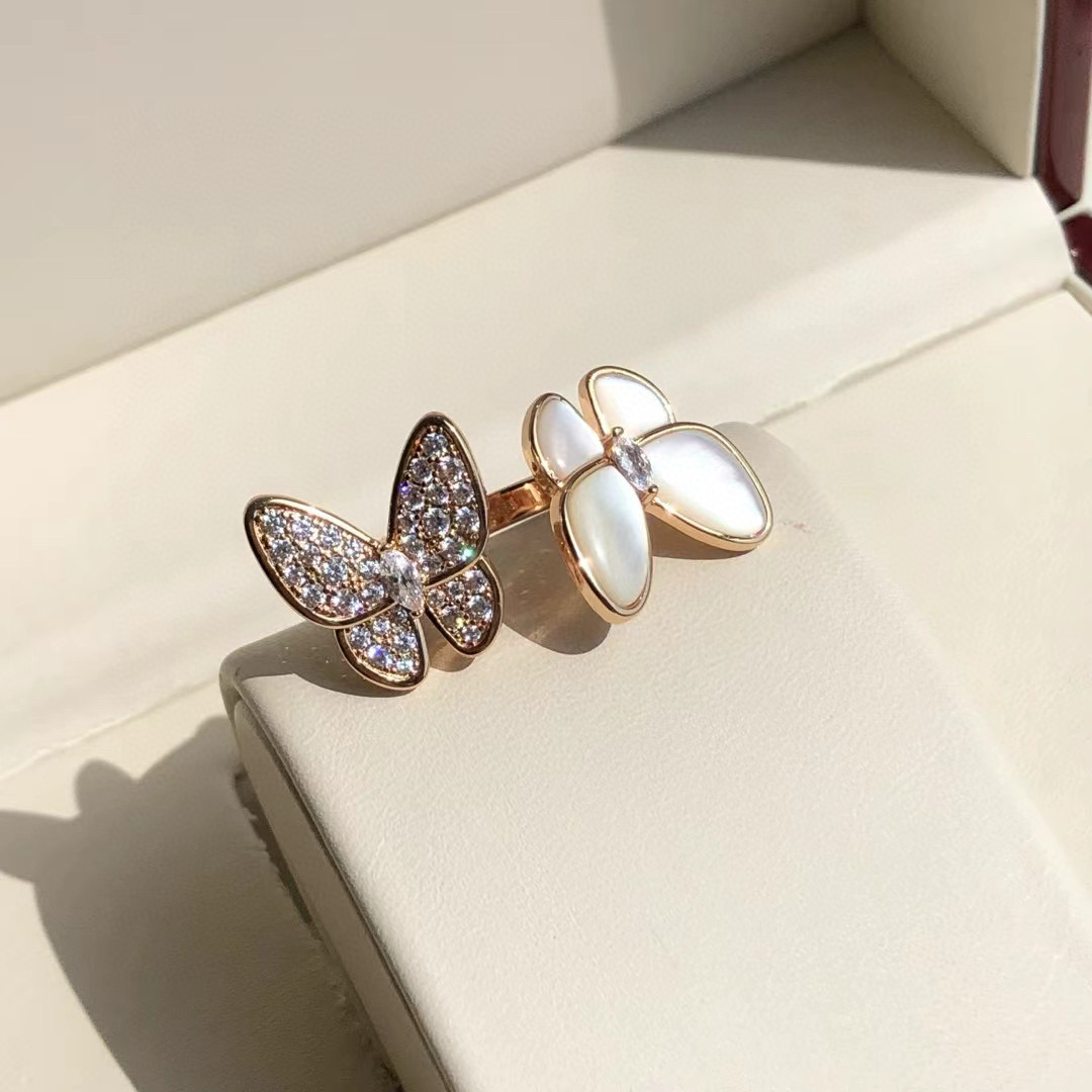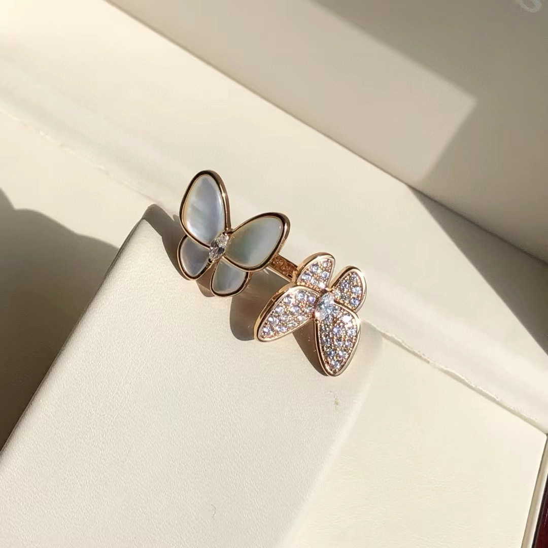 NIGO Van Cleef&Arpels Two Butterfly Women's Rose Gold Butterfly Shape Ring Jewelry Accessories #nigo75542