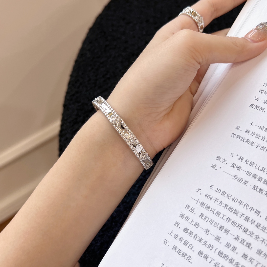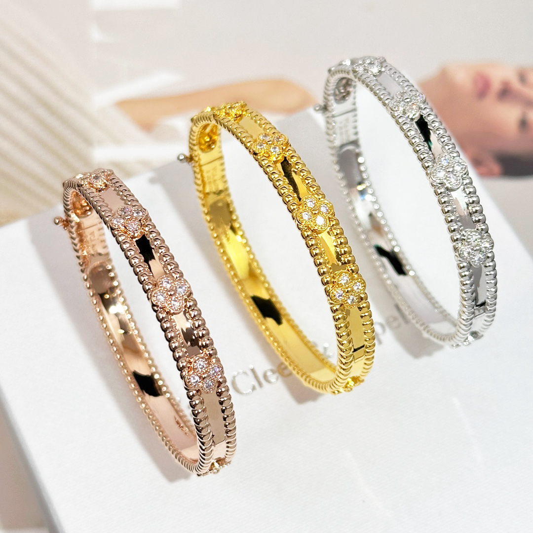 NIGO Van Cleef&Arpels Women's Fashion Five Pendant Clover Solid Color 925 Silver Bracelet Accessories #nigo71443