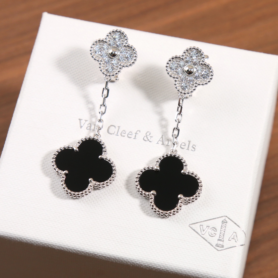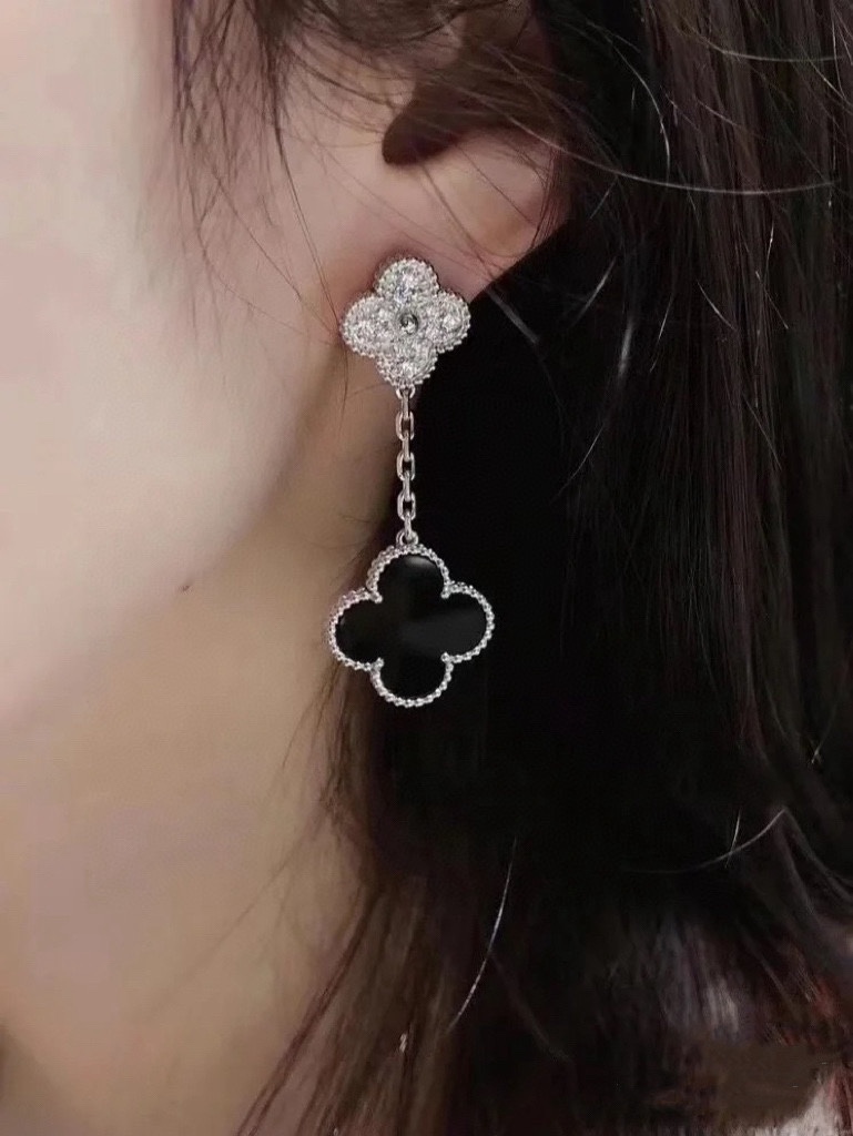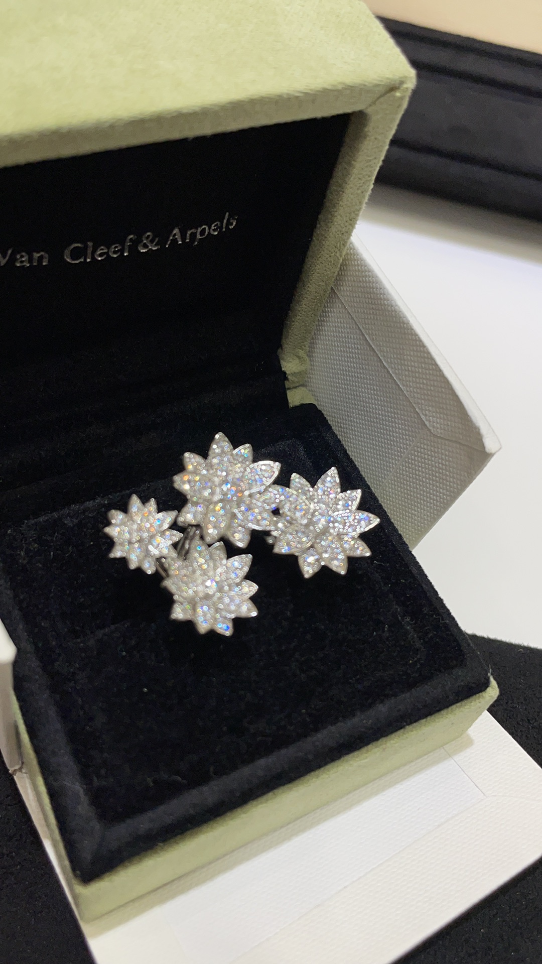NIGO Van Cleef&Arpels Women's Silver Lotus Flower Diamond Stud Earrings Jewelry #nigo73529