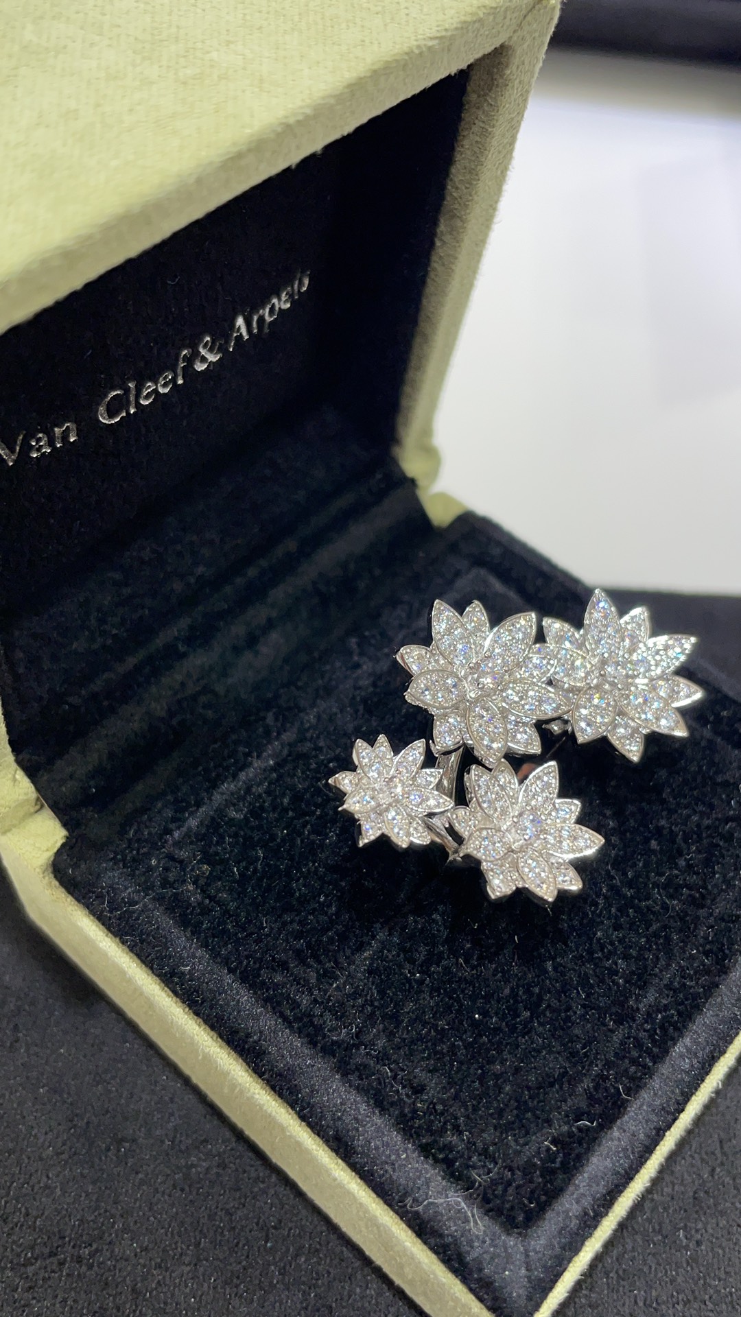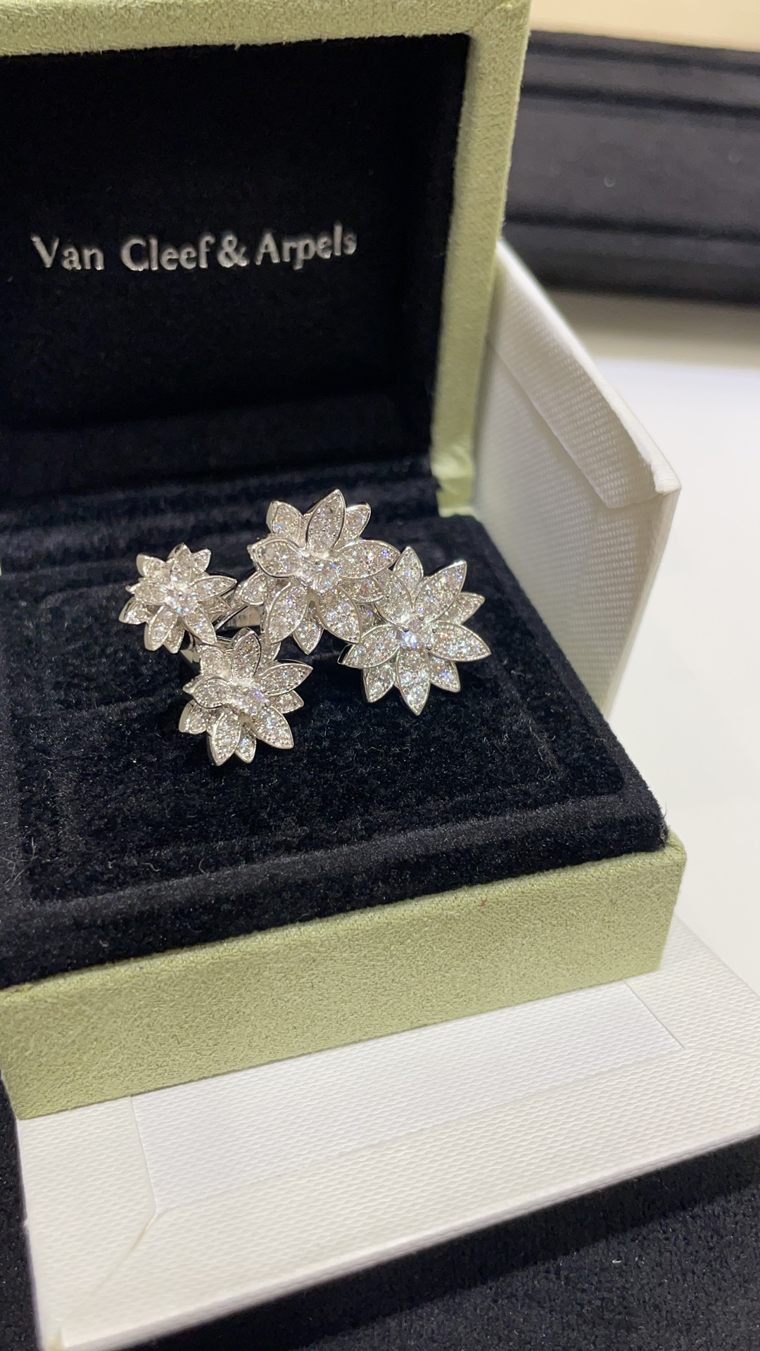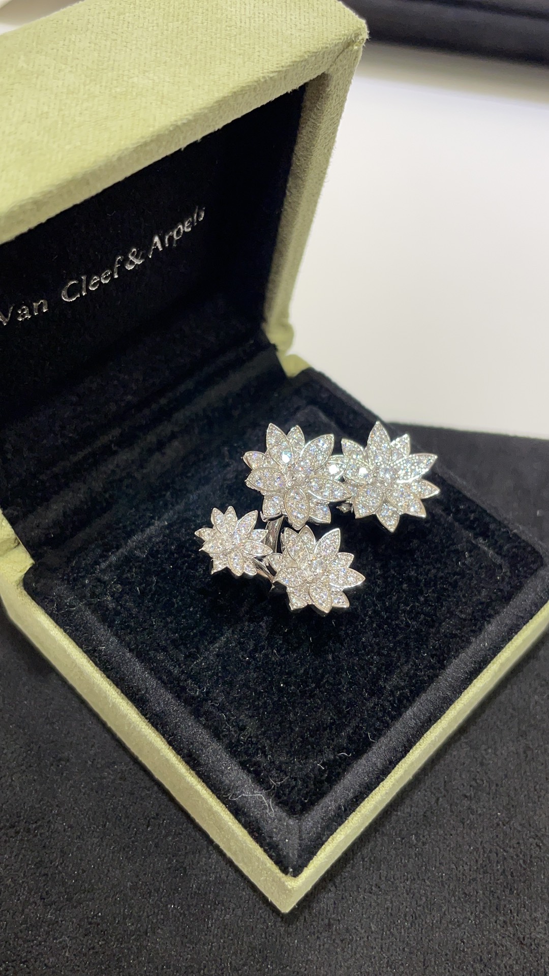 NIGO Van Cleef&Arpels Women's Silver Lotus Flower Decoration Open End Ring Jewelry #nigo73532