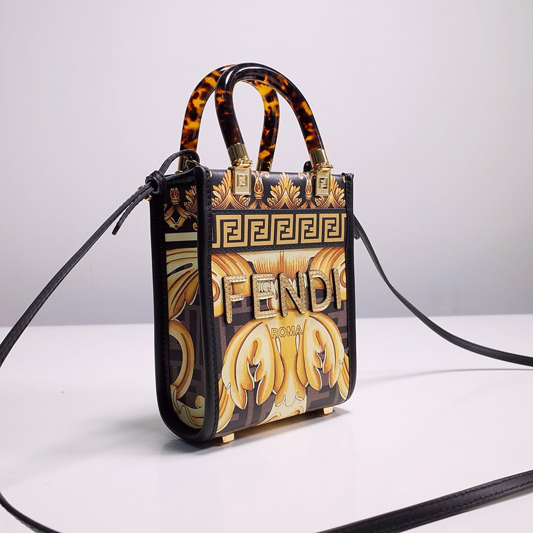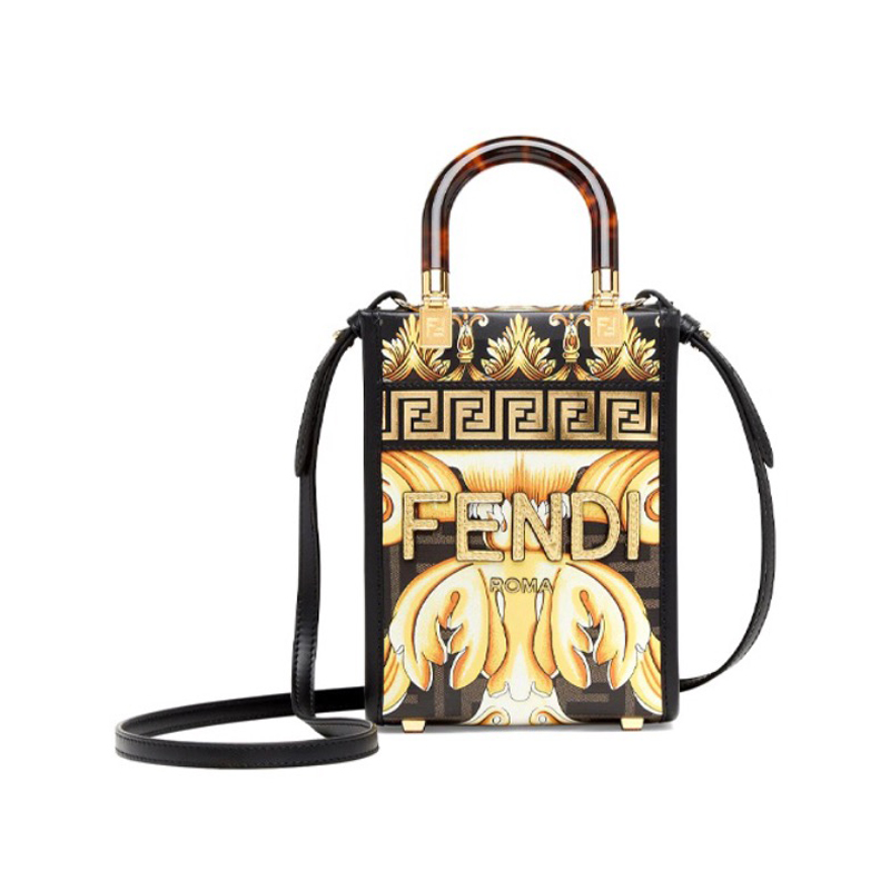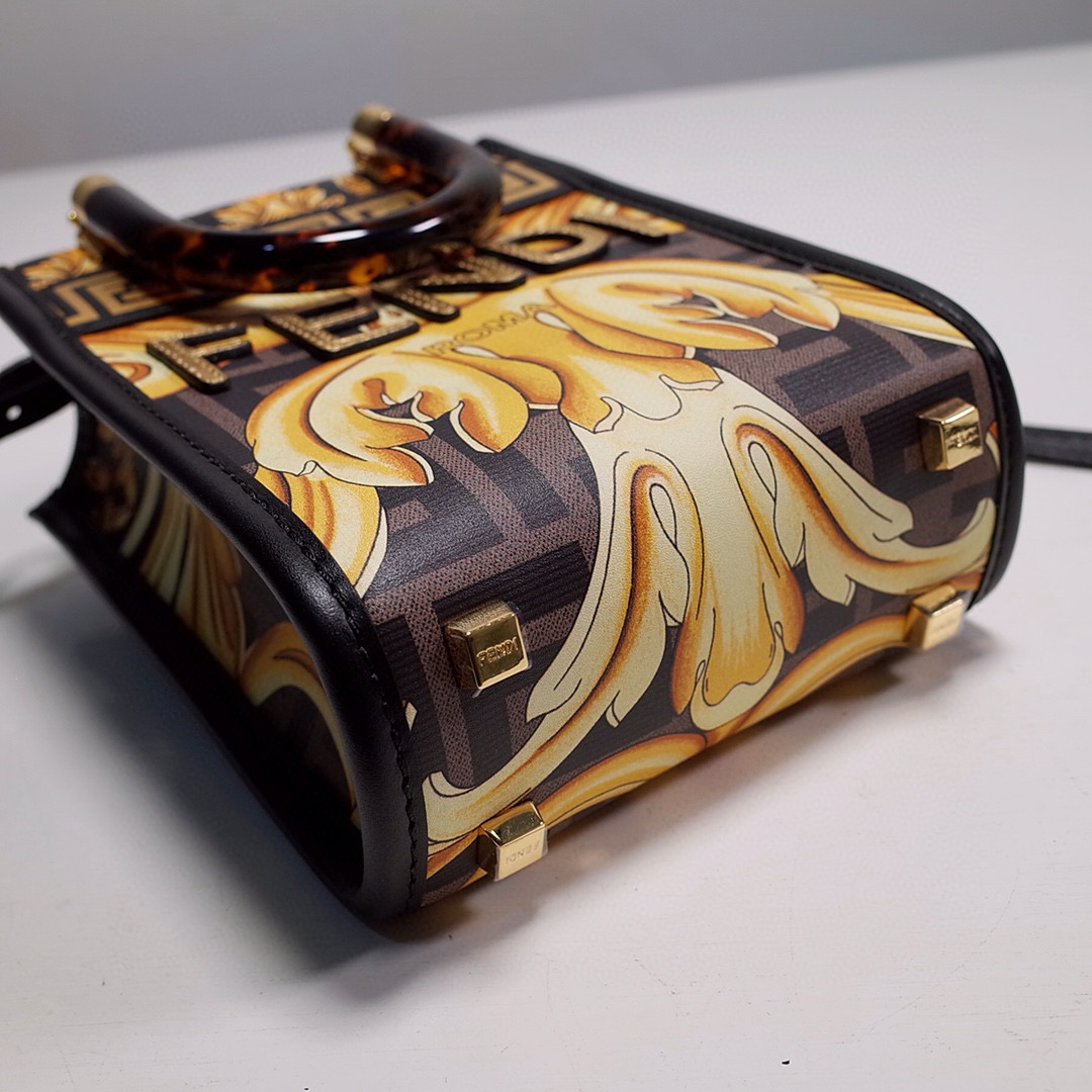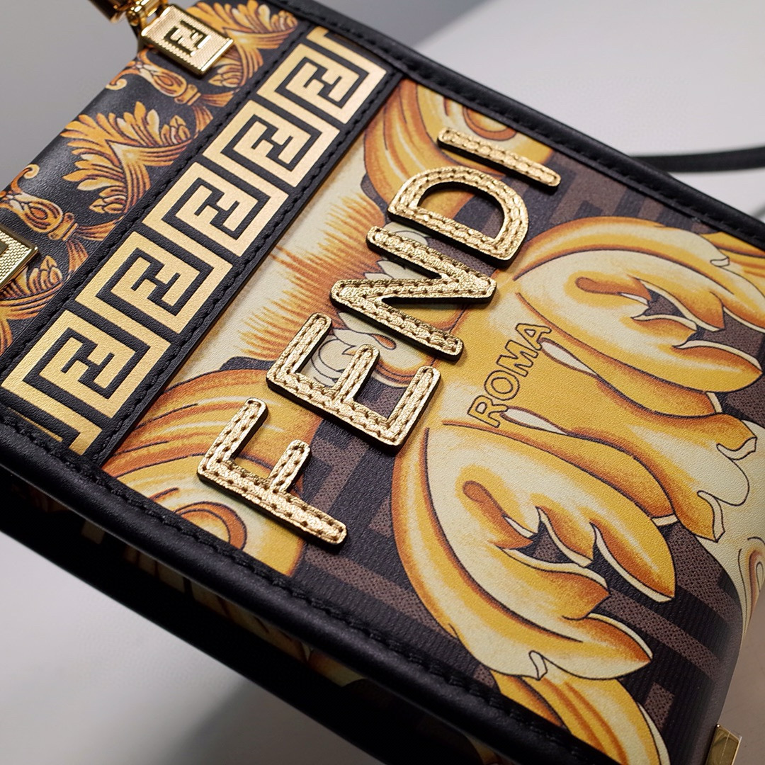 NIGO Fendi x Versace Fendace Women's Gold Baroque Print Cowhide Shoulder Crossbody Handbag Bag Bags #nigo97819