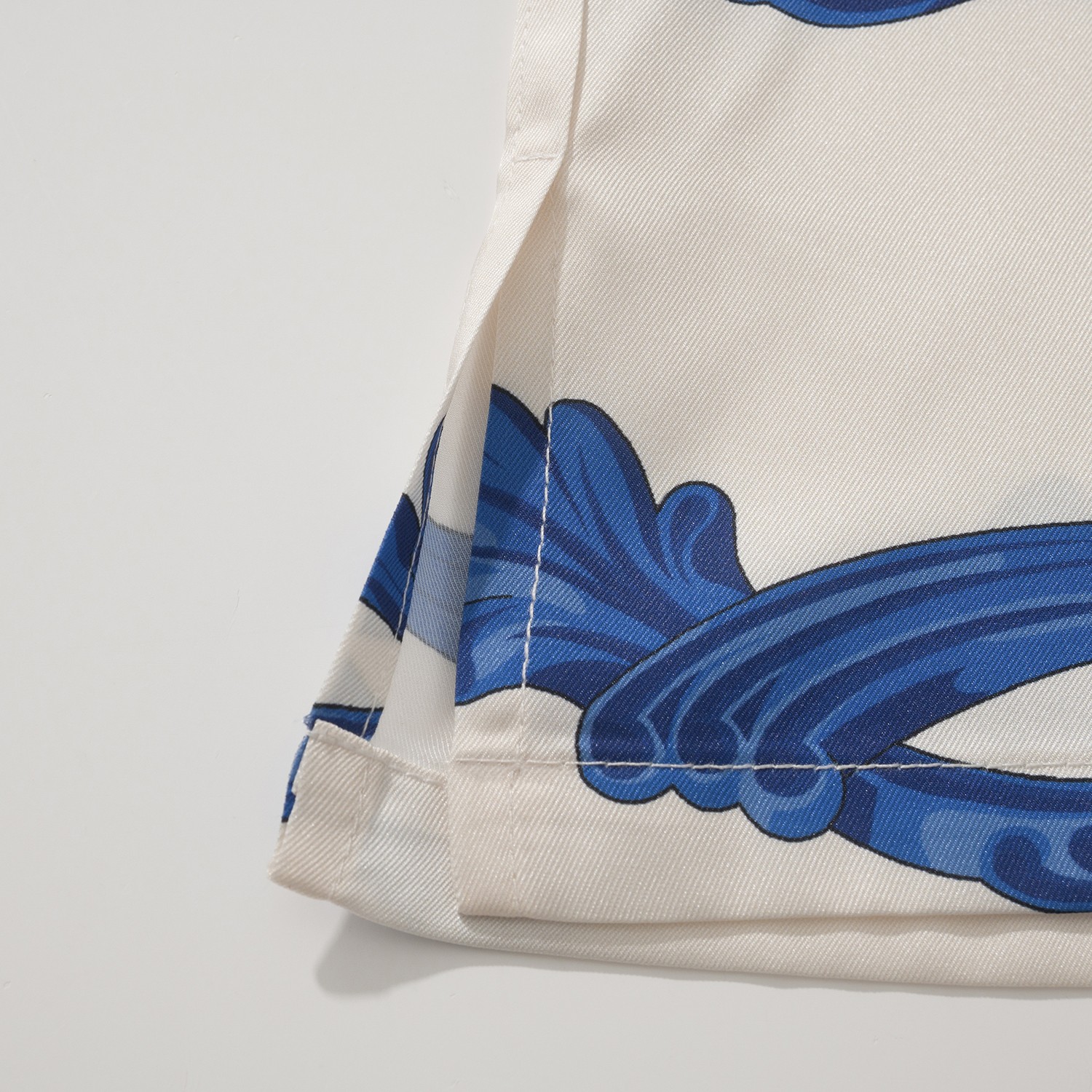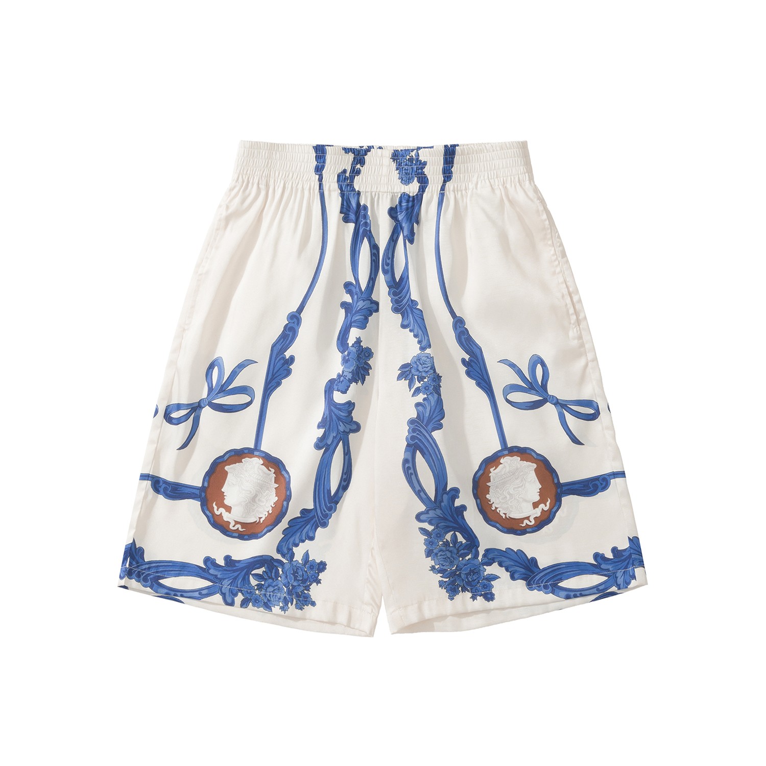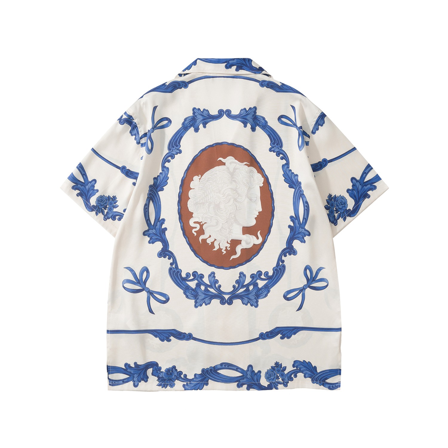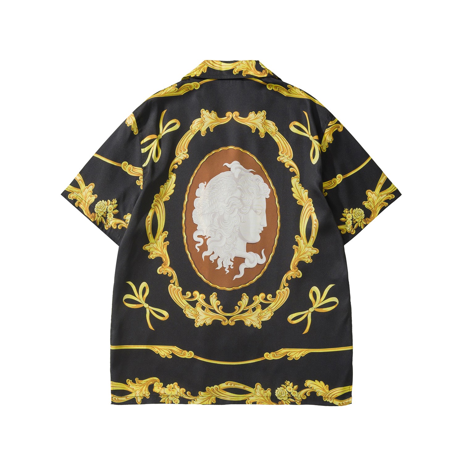 NIGO Versace Men's Summer Cameo Silk Lapel Shirt Casual Tie Straight Midriff Shorts Ngvp #nigo1437