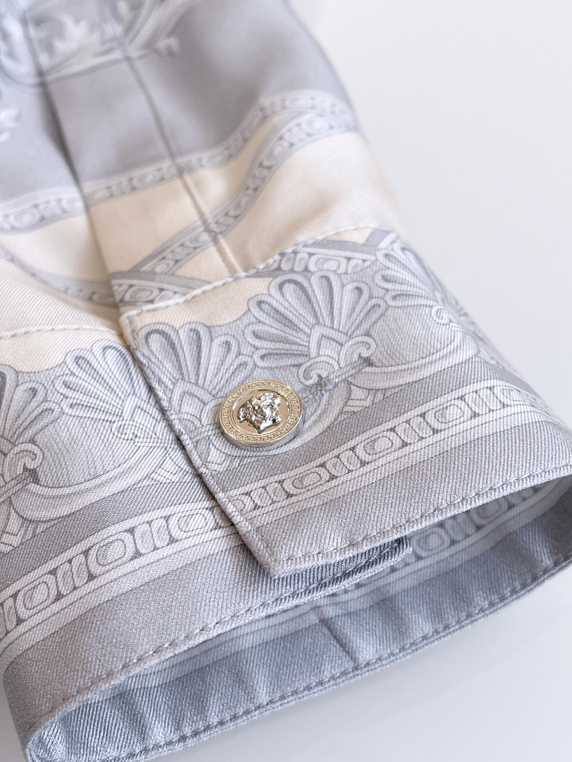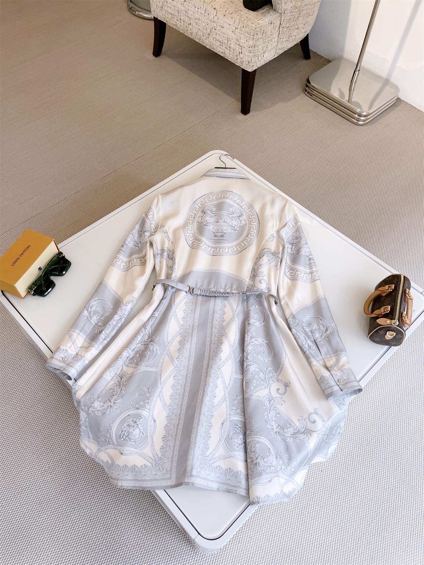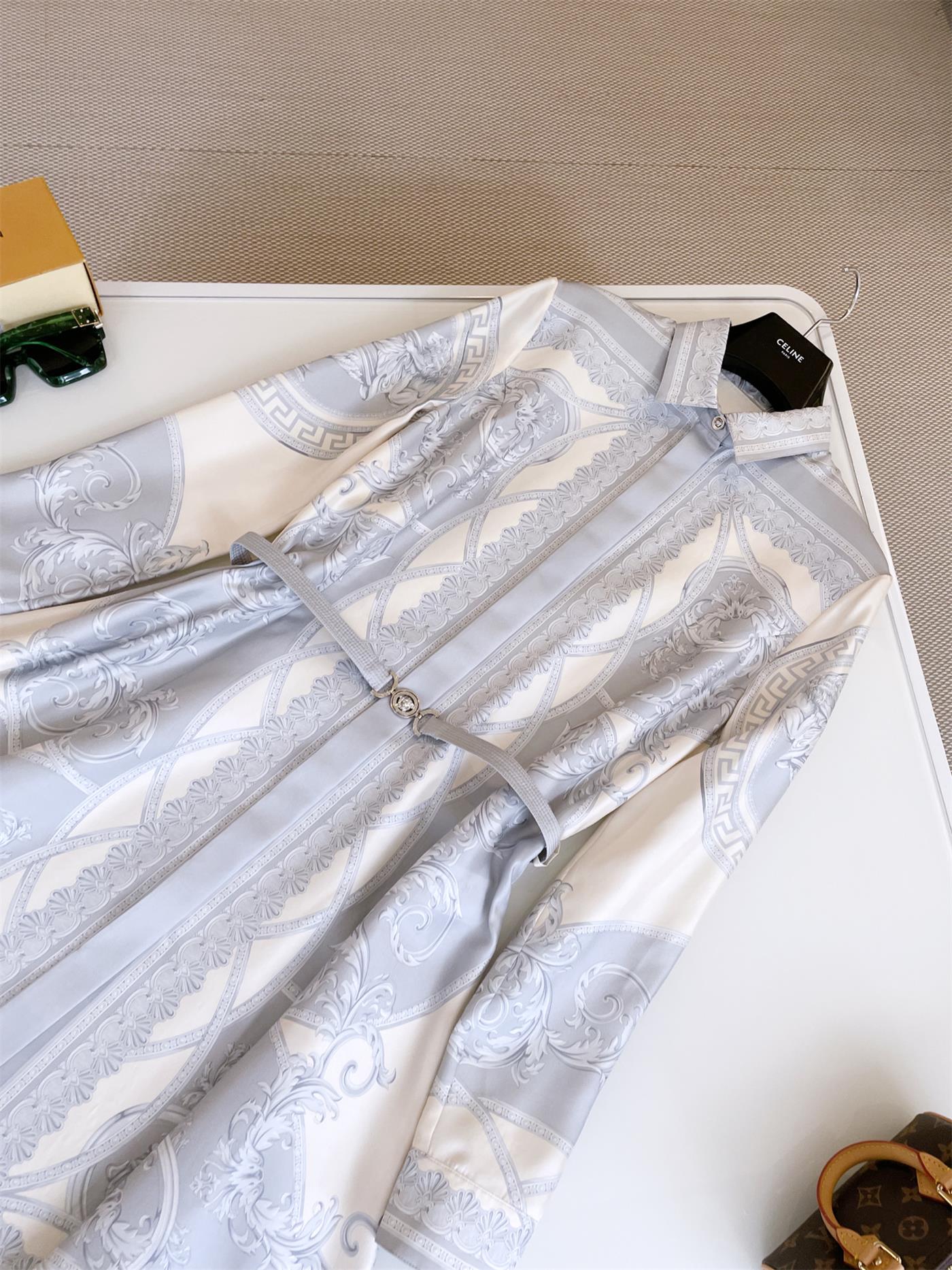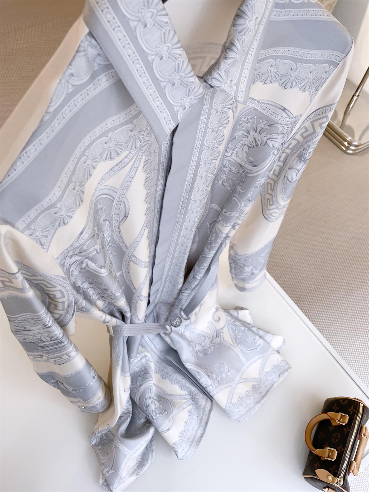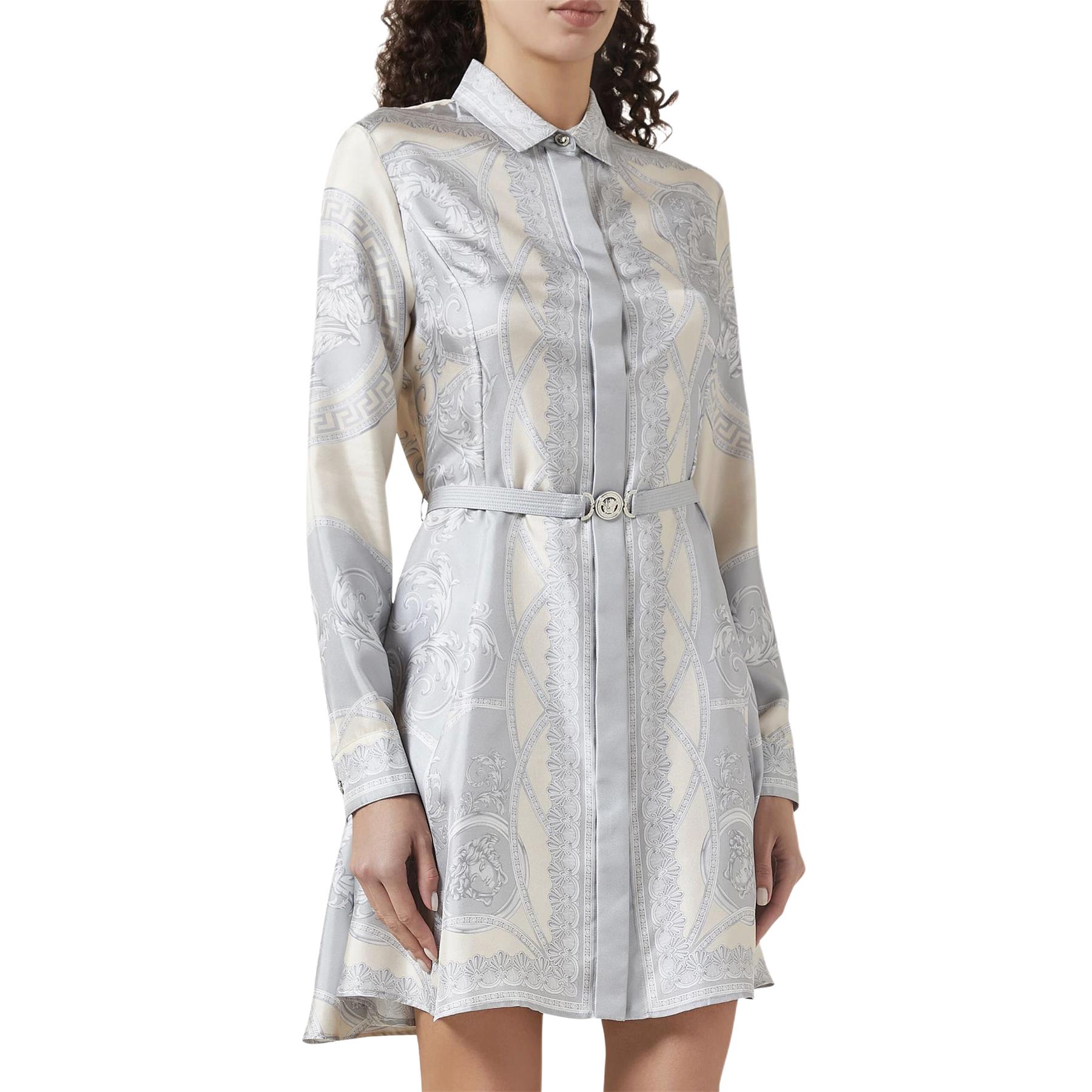 NIGO Versace Women's Summer Flip Ancient Greek Floral Pattern Long Sleeve Tunic Silk Dress #nigo75227