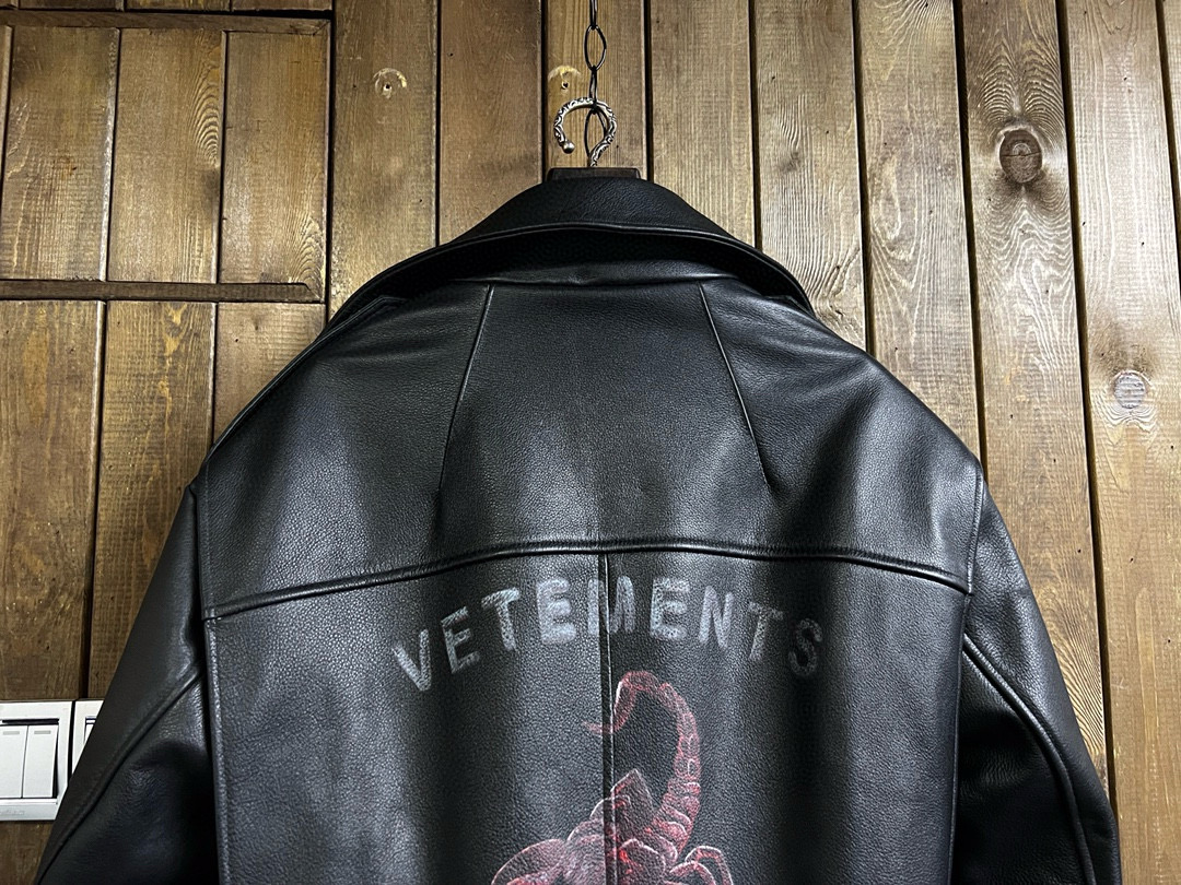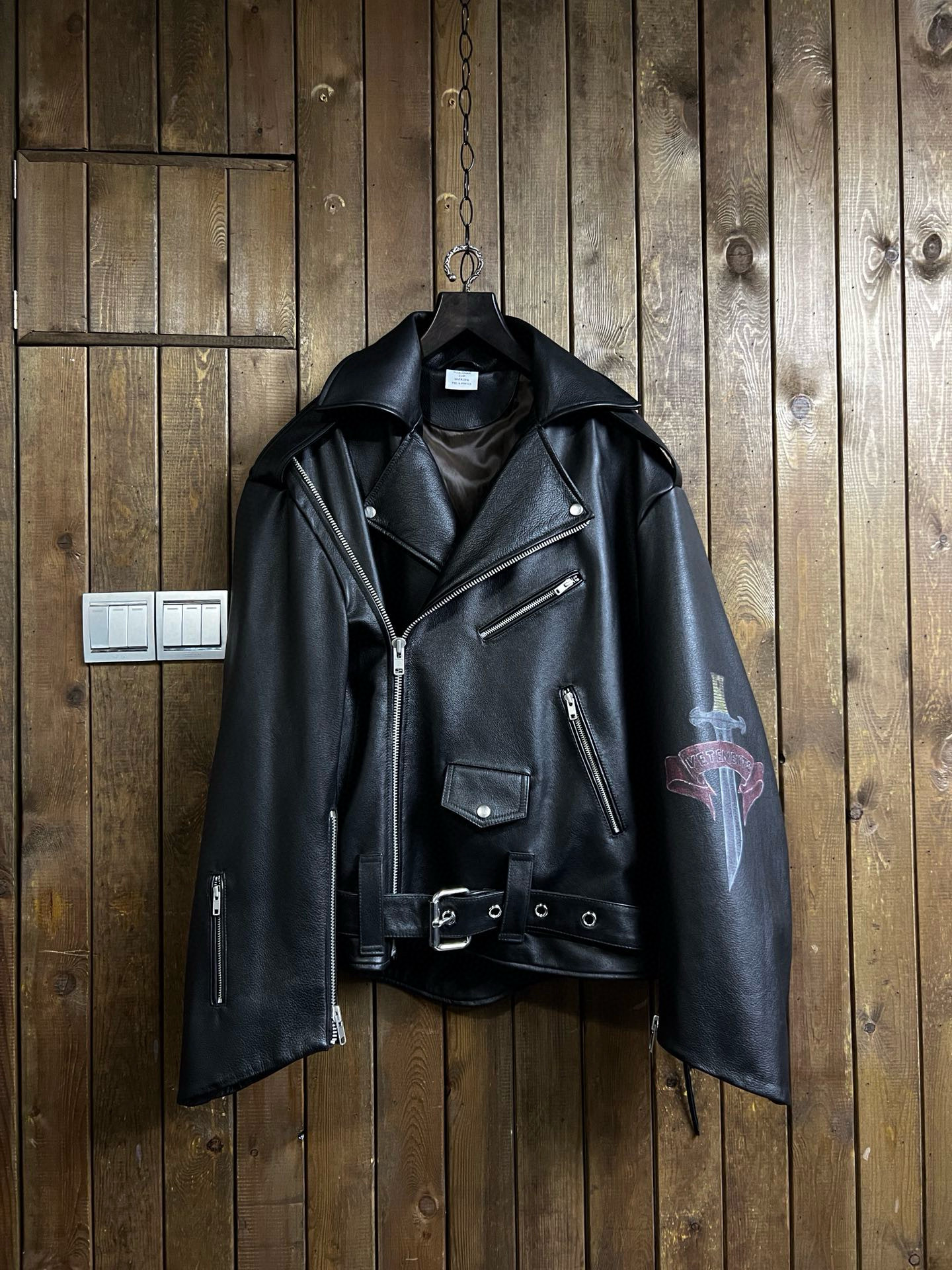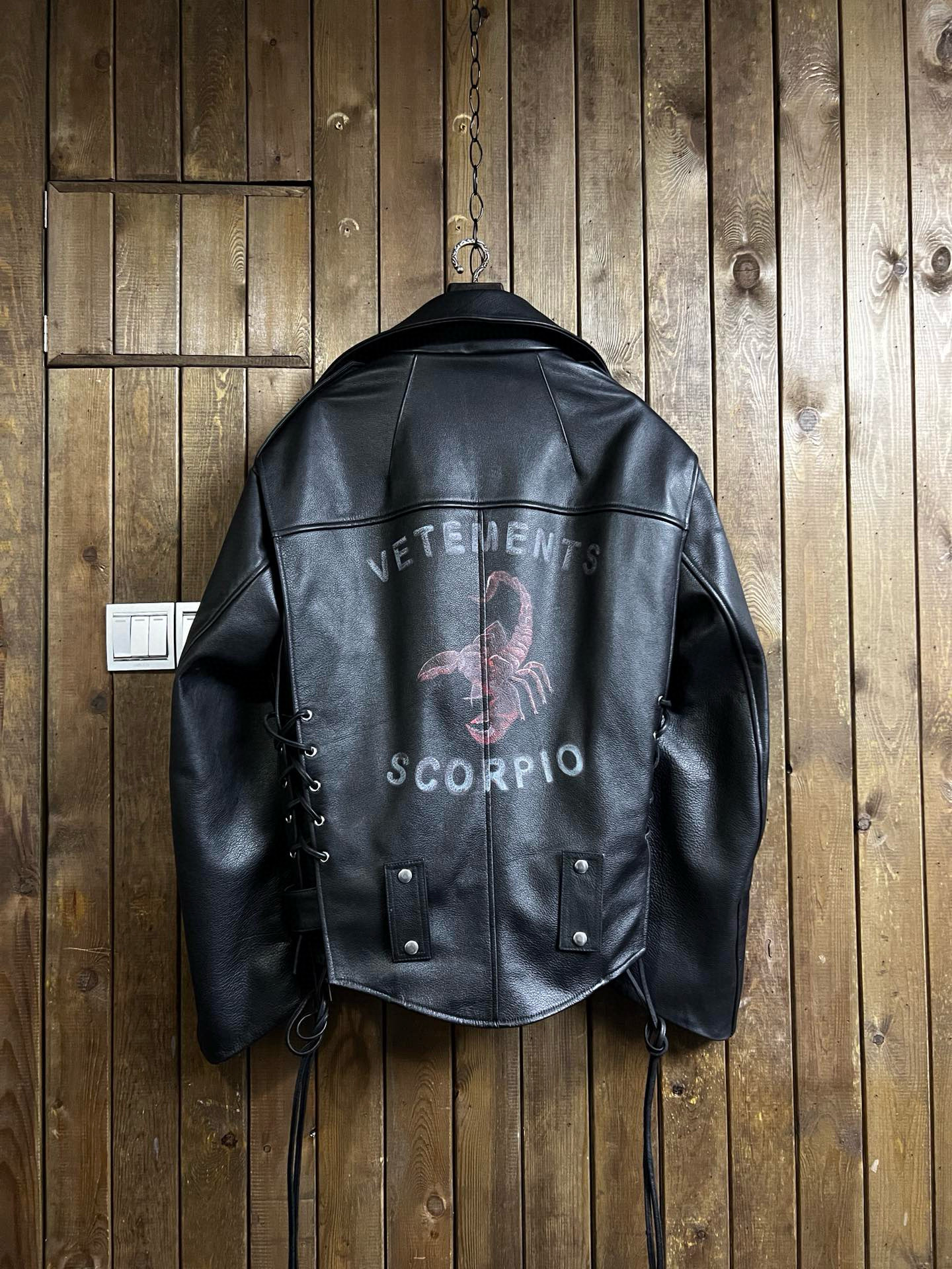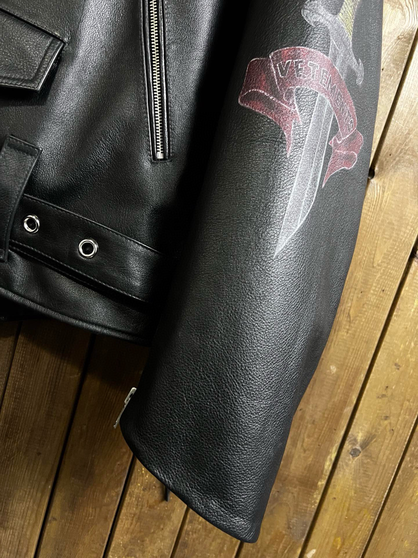 NIGO Vetements 16aw Scorpio Men's Fall/Winter Black Graffiti Printed Biker Multi-Zip Leather Jacket #nigo97922