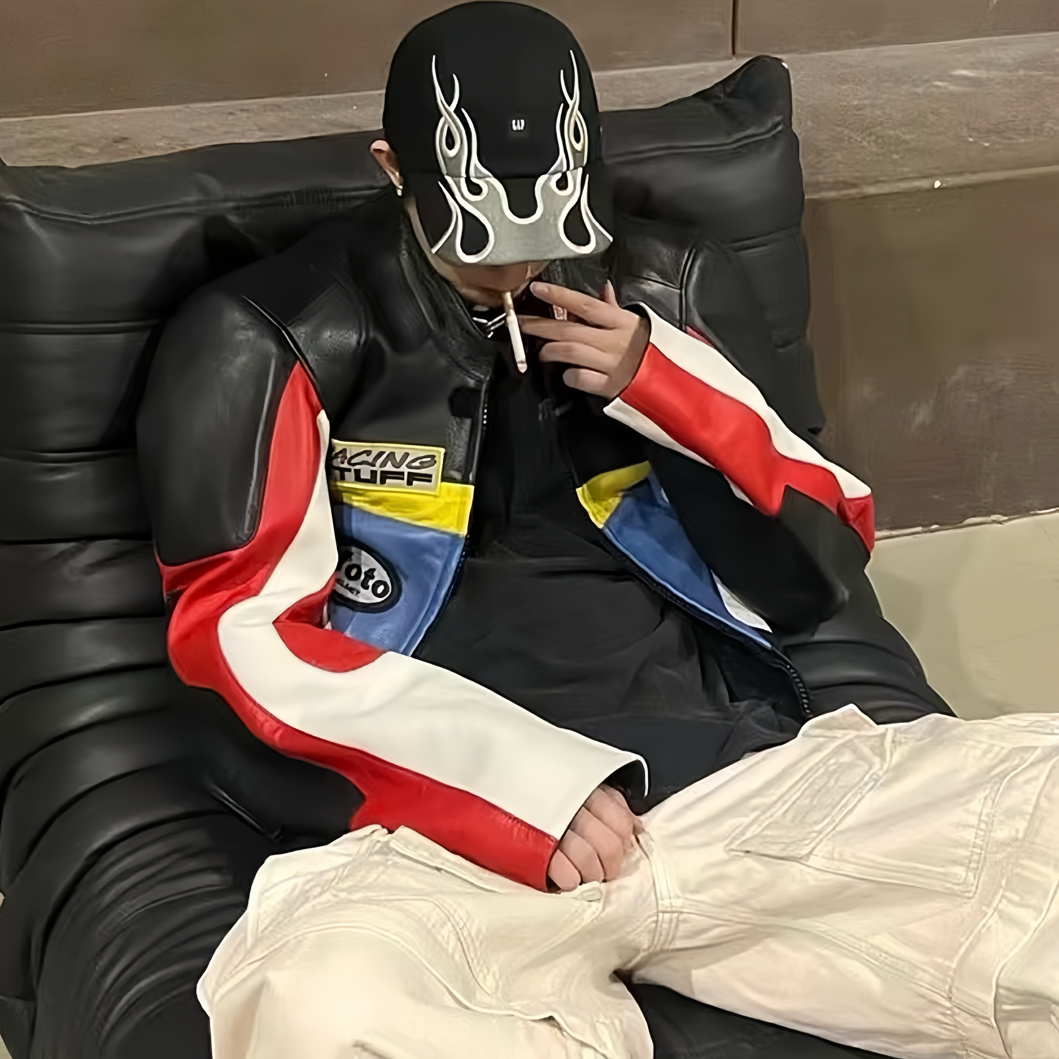 NIGO Vetements Men's and Women's Autumn and Winter Leather Zip-up Biker Jacket #nigo97569