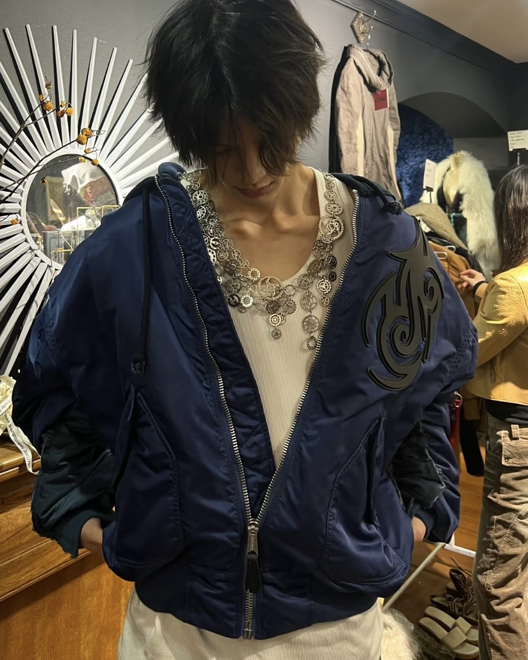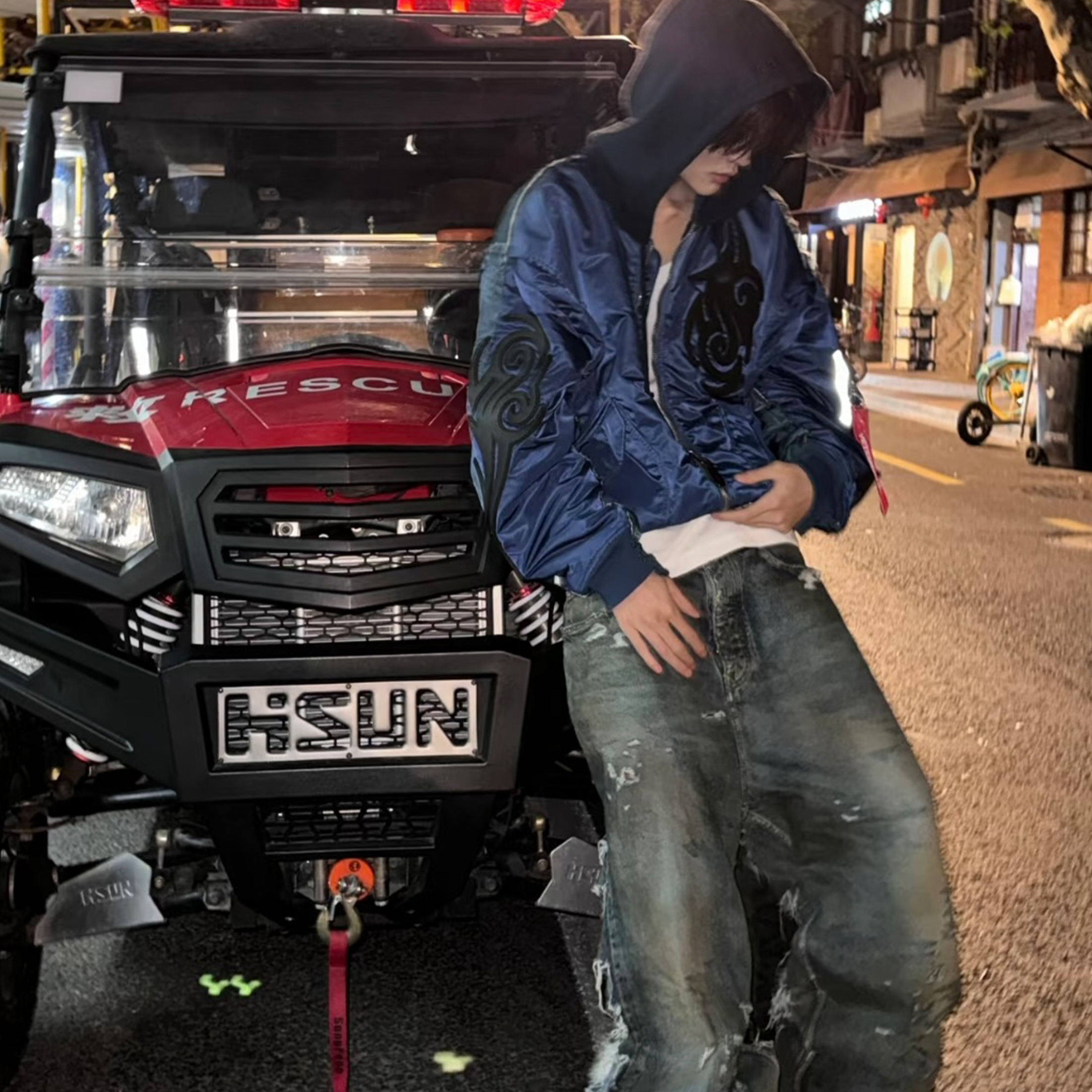 NIGO Vetements Men's Autumn And Winter Blue Hooded High Street Cotton Jacket Fashion Retro Trend Applique Zip Jacket Ngvp #nigo9939