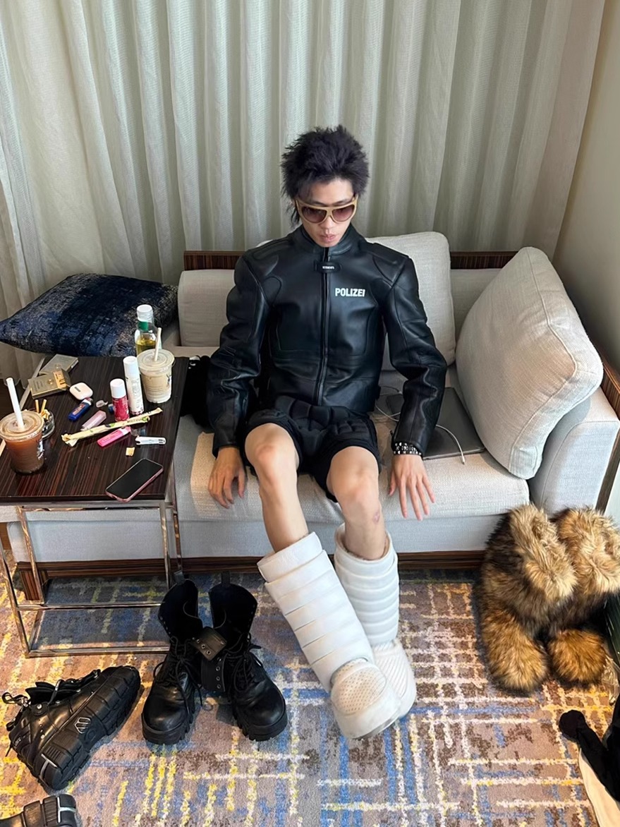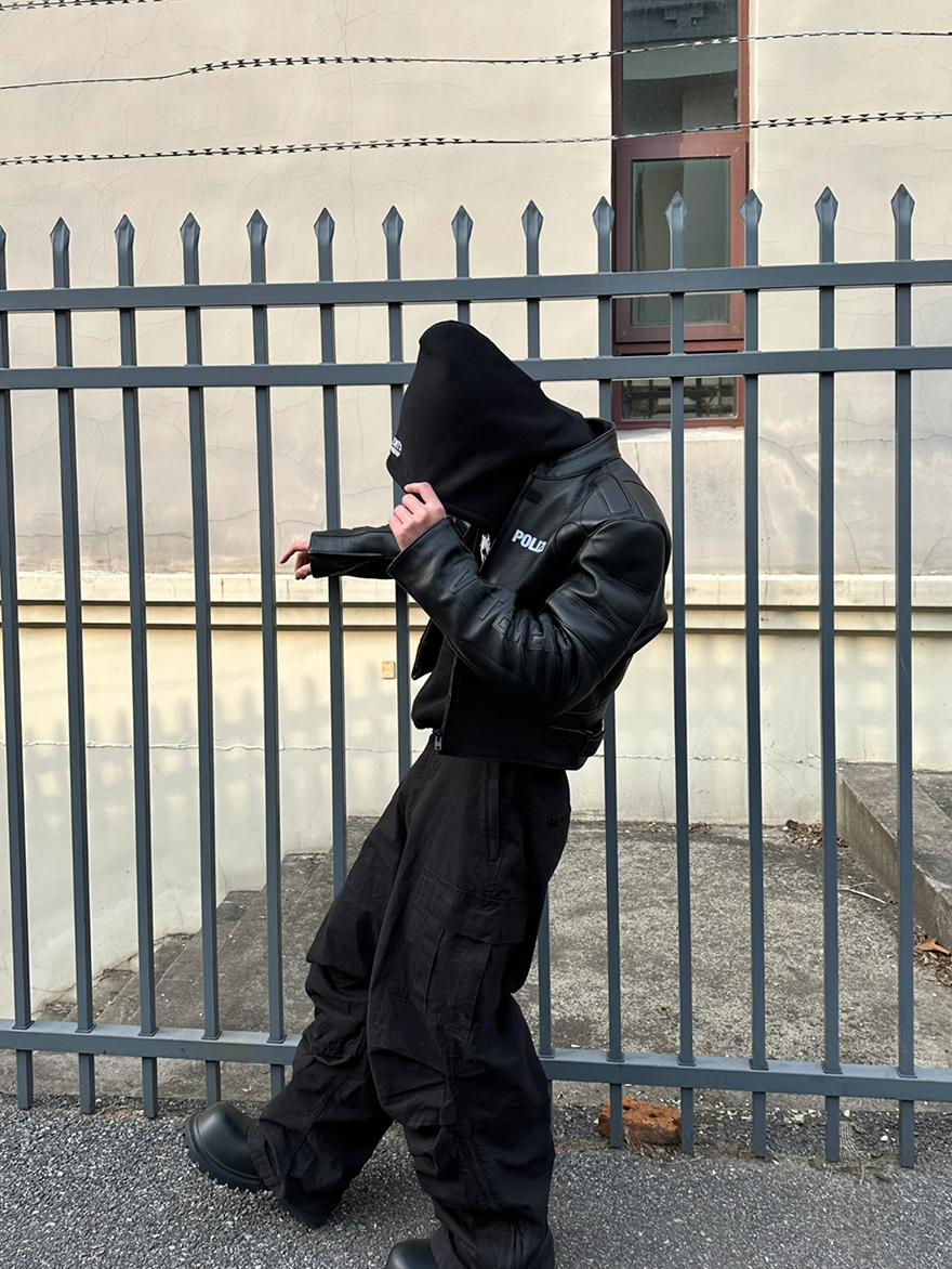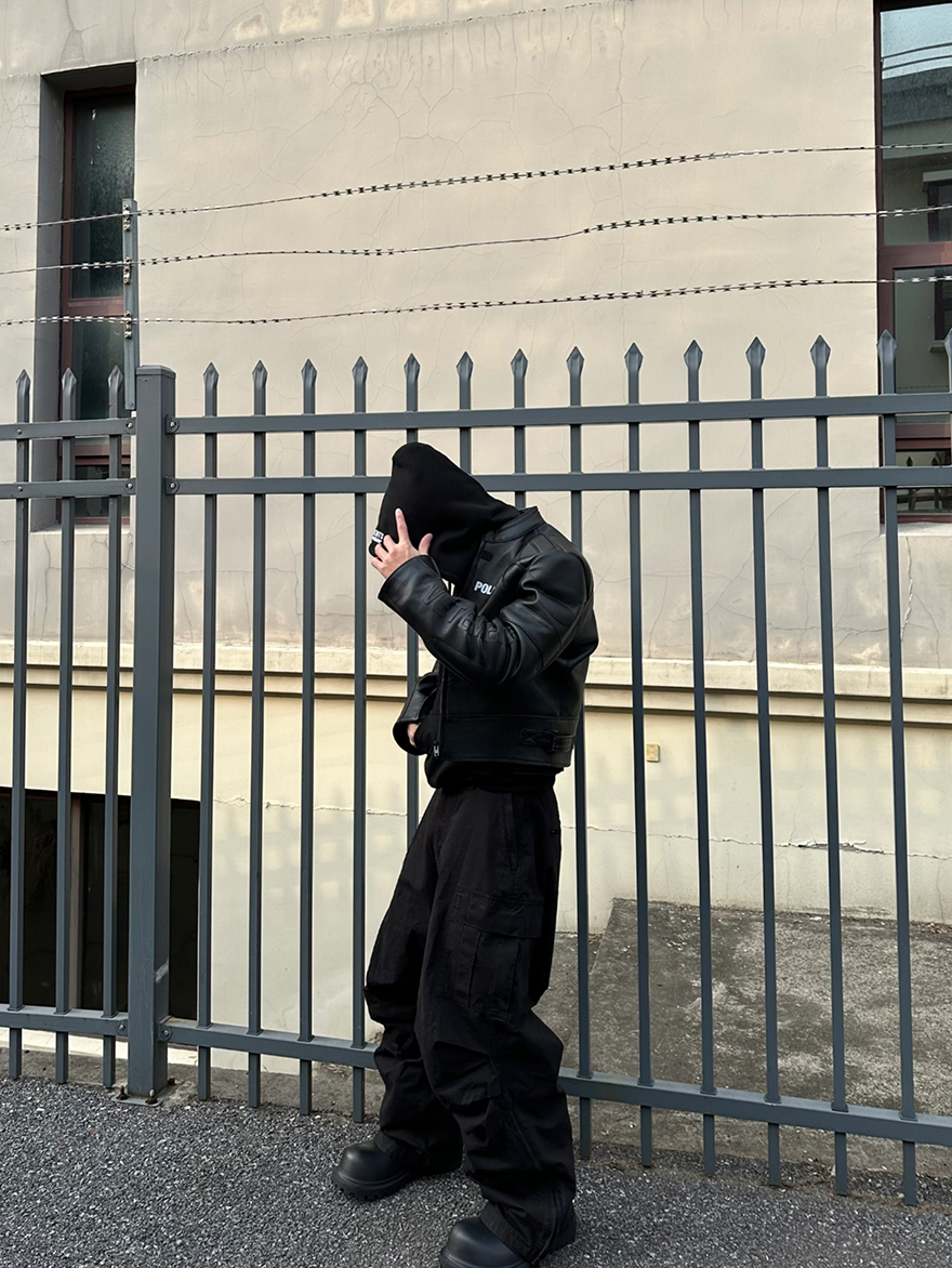 NIGO Vetements Men's Fall And Winter Motorcycle Biker Shoulder Pad Leather Jacket Thickened Cotton Short Jacket Ngvp #nigo1895