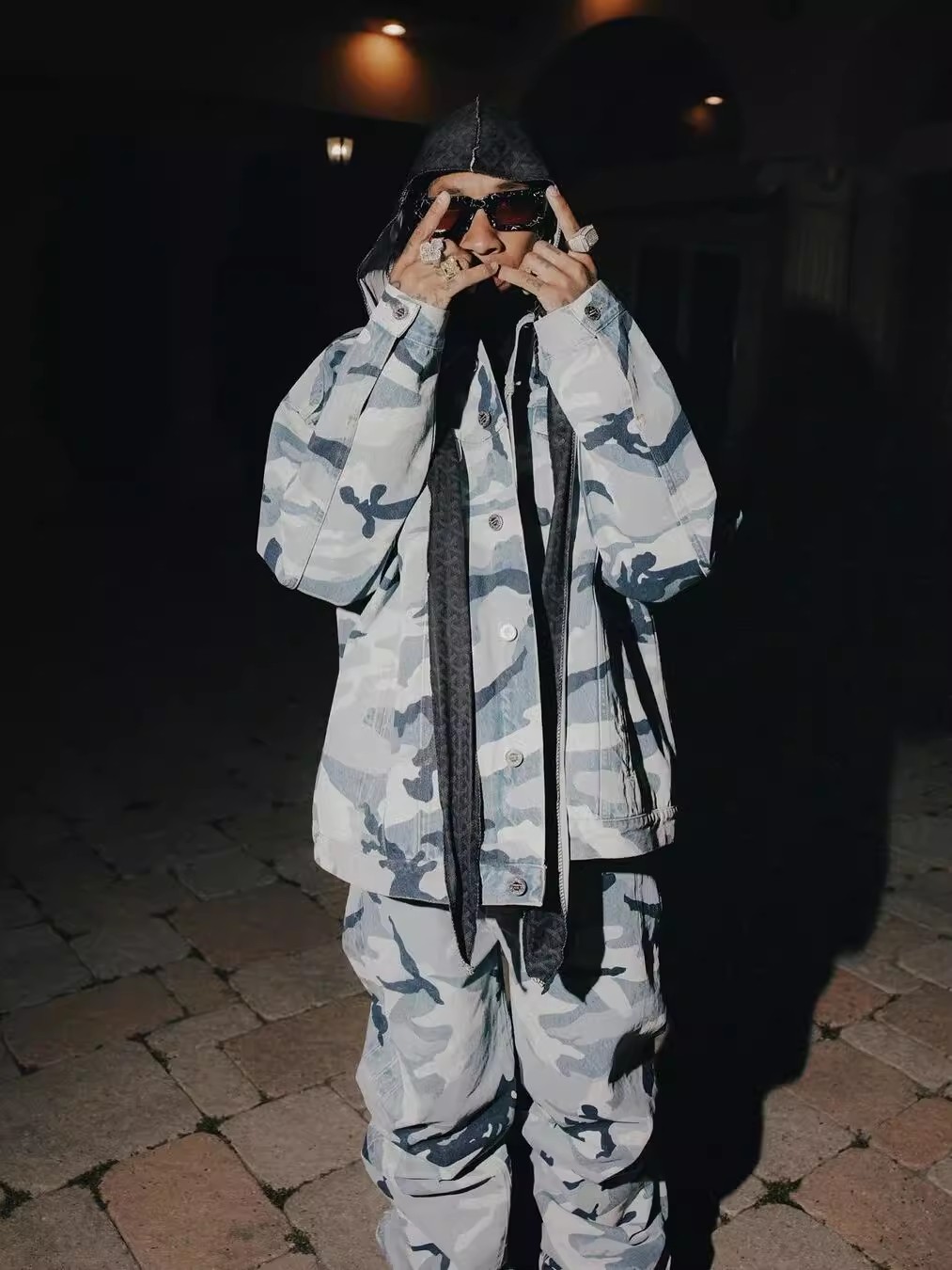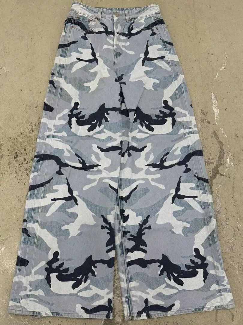 NIGO Vetements Men's Four Seasons Fashion Snow Camouflage Blue Casual Button Fitted Straight Leg Denim Pants Ngvp #nigo8643