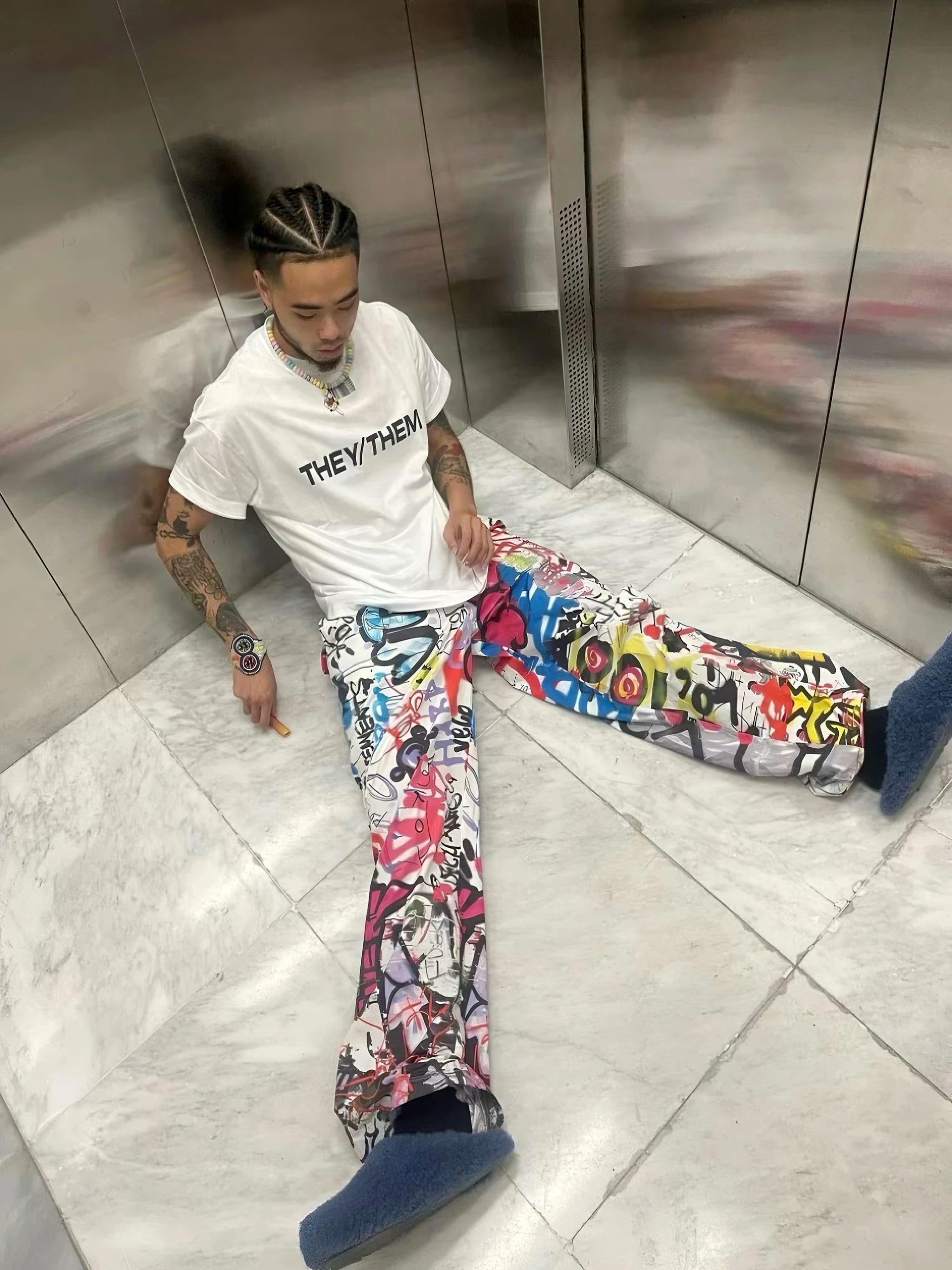 NIGO Vetements Men's Spring And Summer Digital Print Graffiti Wide-leg Pants Beenslackin The Same Opium Yvl Style High Street Trend Casual Pants Ngvp #nigo2445