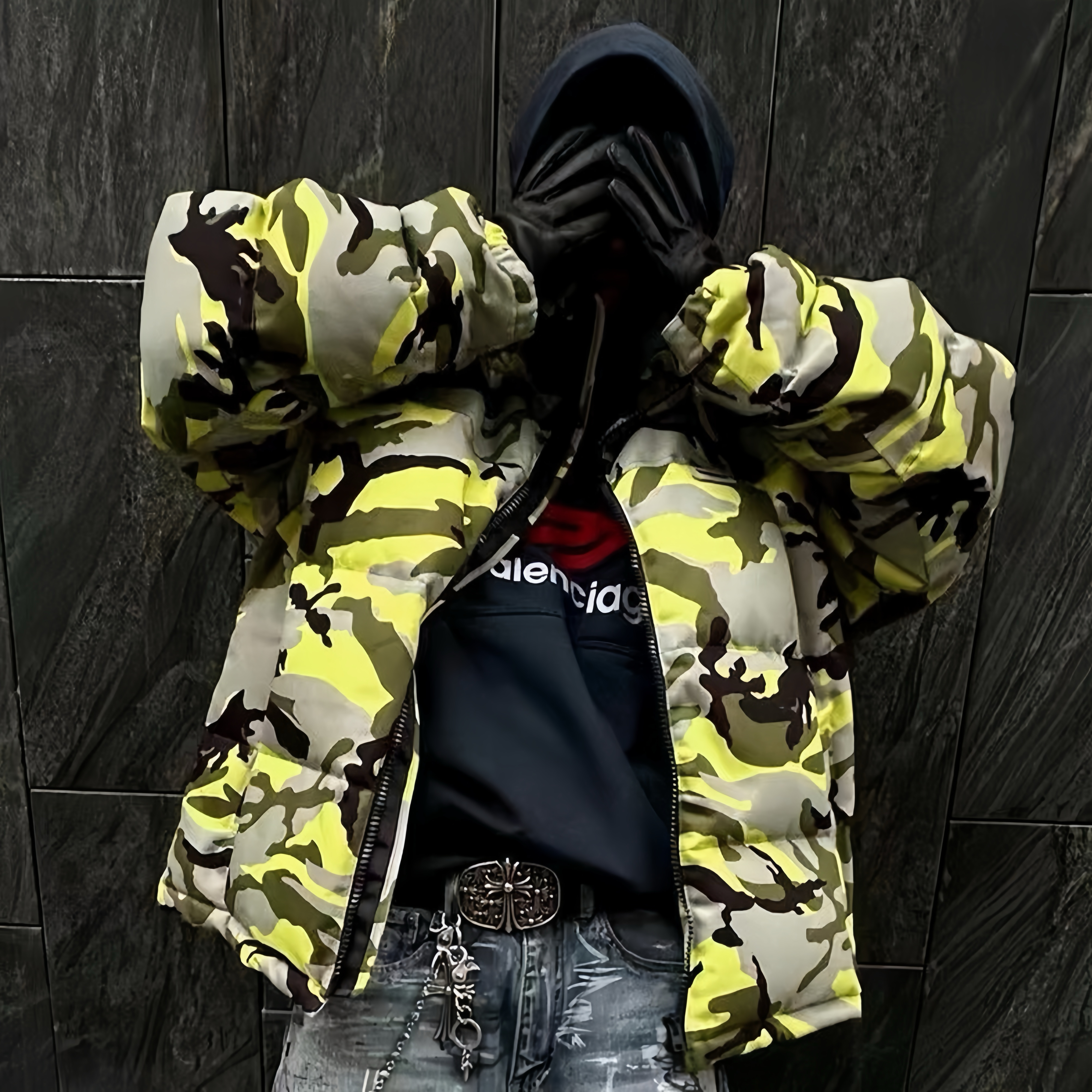 NIGO Vetements Men's Winter Standing Collar Zipper Long Sleeve Fitted Drop Shoulder Camouflage Puffer Down Jacket Ngvp #nigo7734