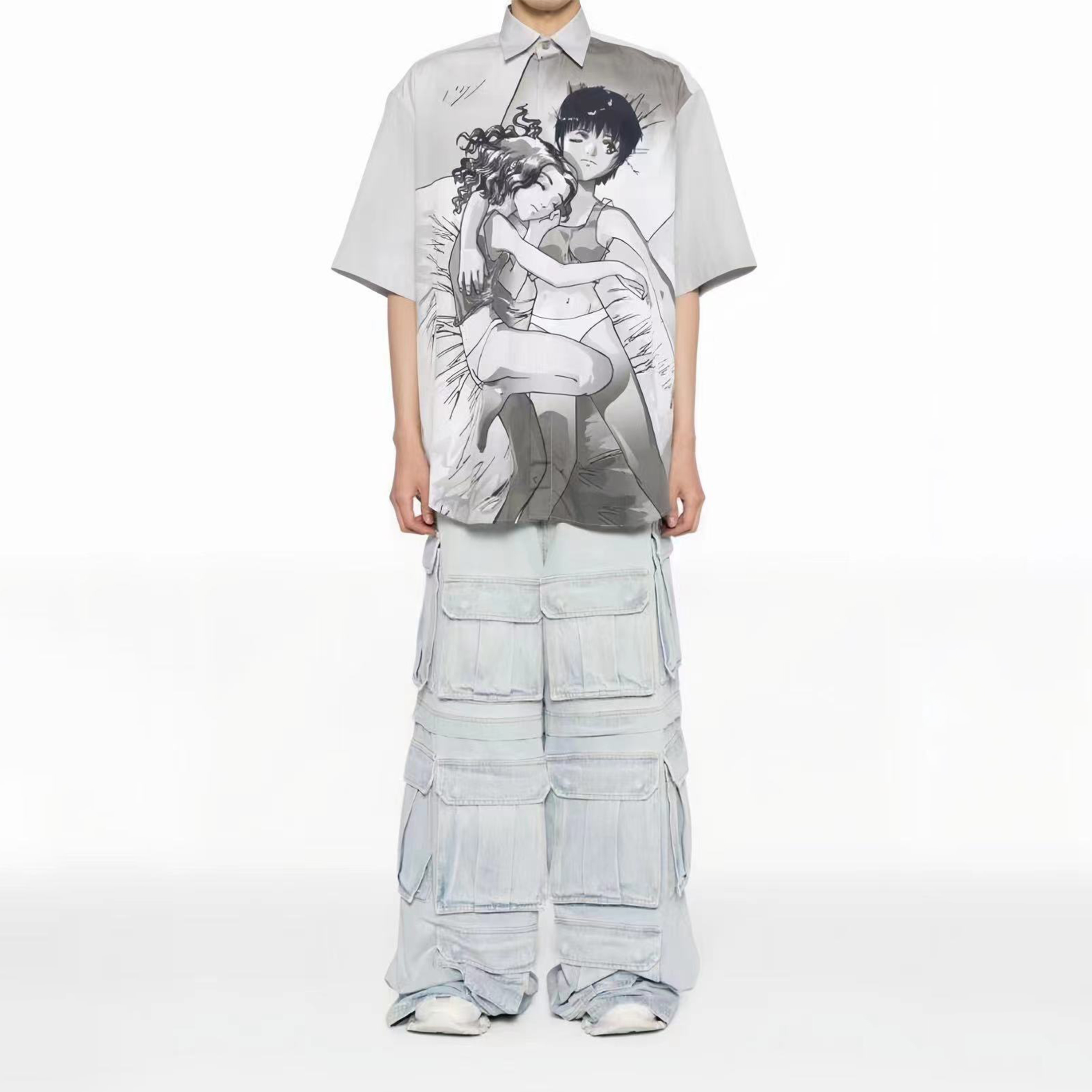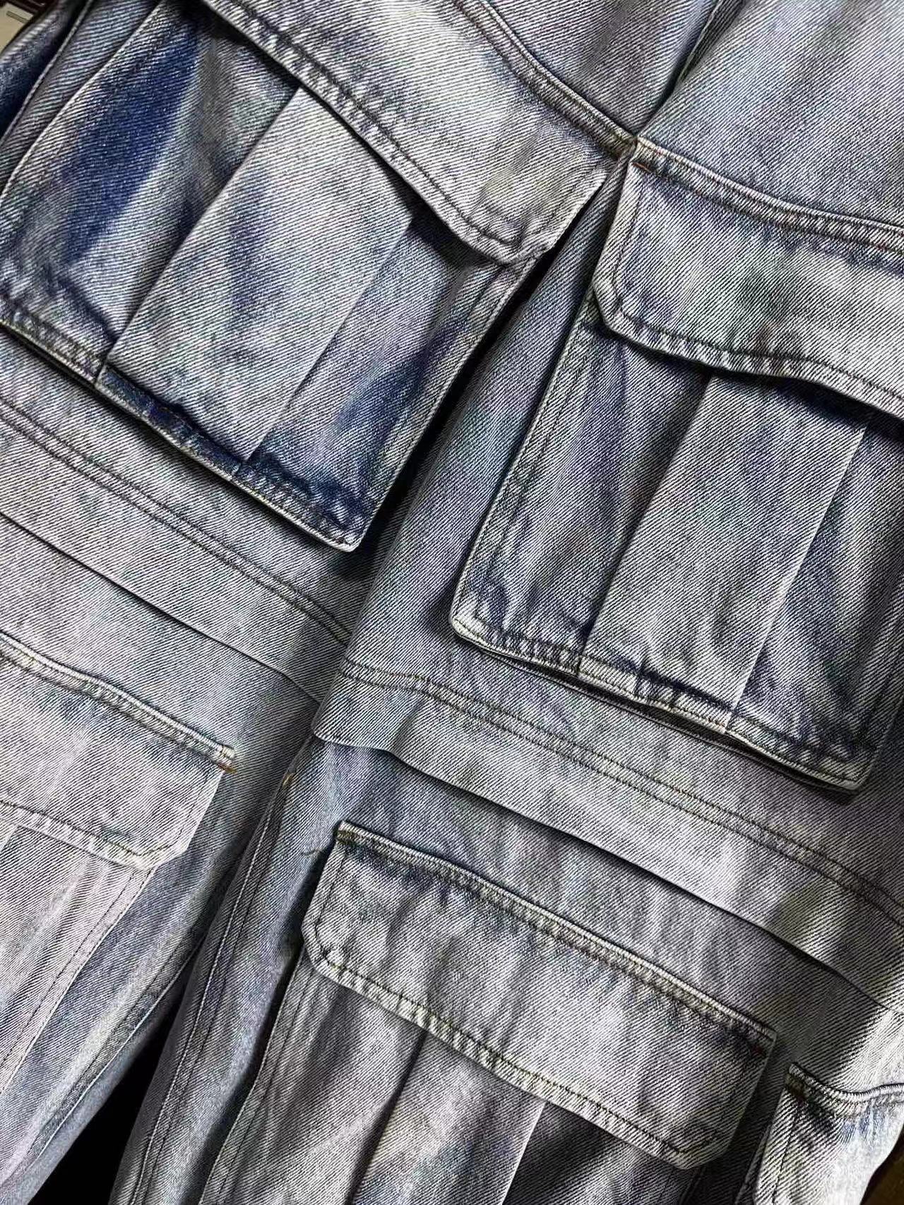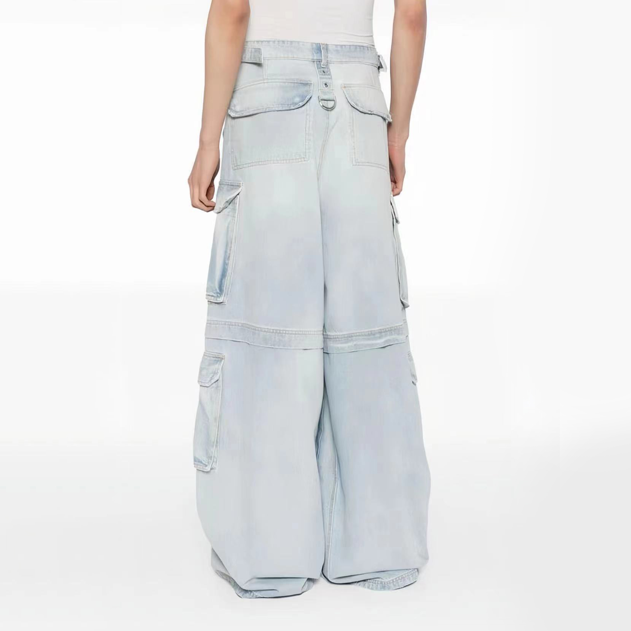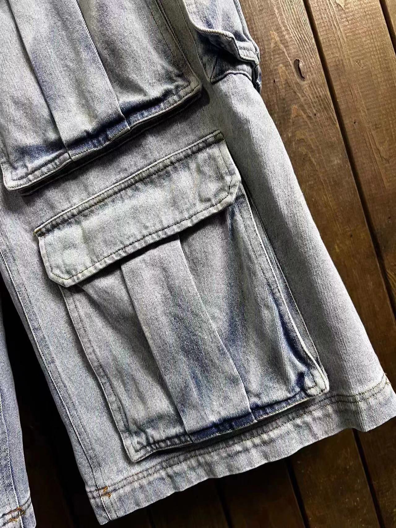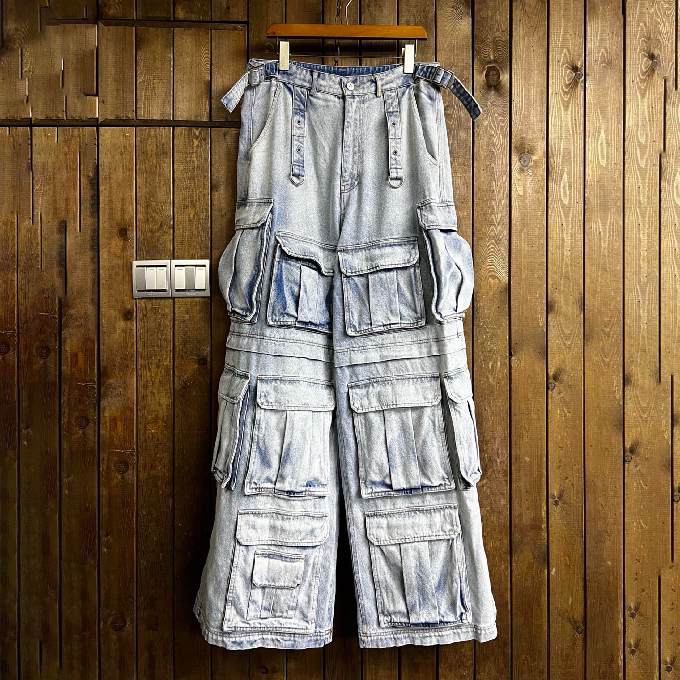 NIGO Vetements Men's Women's Cotton Washed Denim Trousers Zipper Multi-pocket Fitted Wide Leg Work Pants Ngvp #nigo8232