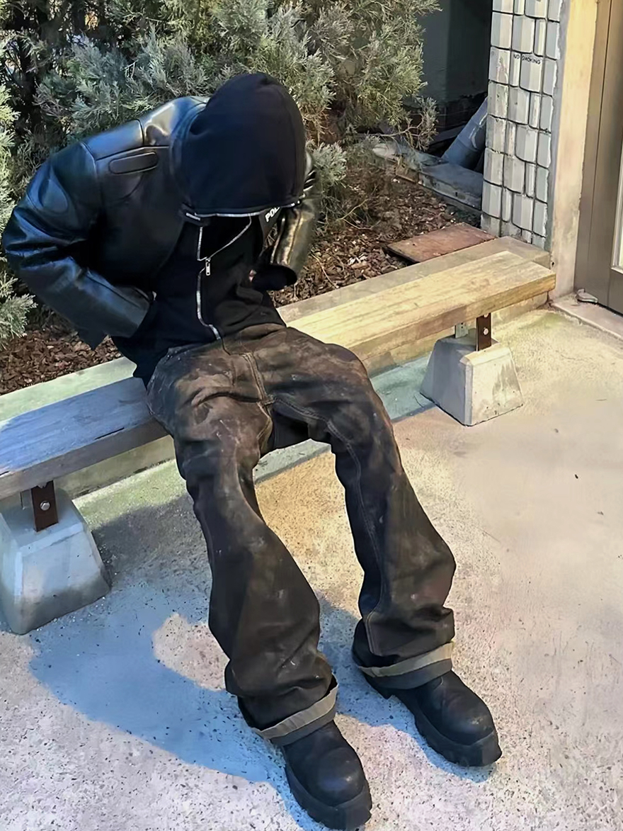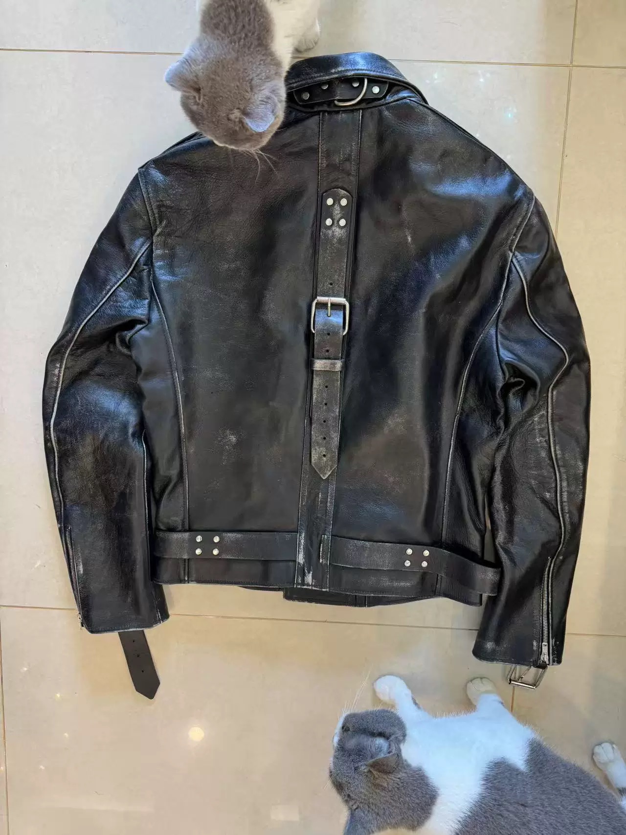 NIGO Vetements Men's Winter Letter Printed Long Sleeve Short Fit Motorcycle Leather Jacket #nigo95111