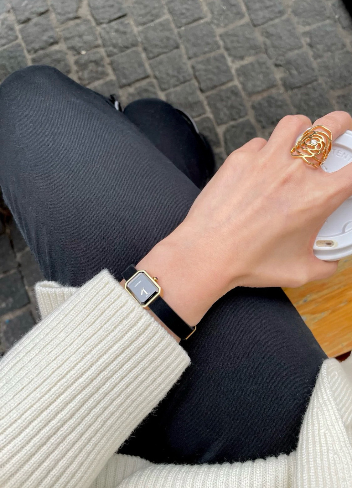 Home / Watch / NIGO Chanel Première Ribbon Watch Diamond-set Dial Temperament Fashionable And Elegant Watch Black Dial 18k Gold Square Watch Accessories #nigo71955