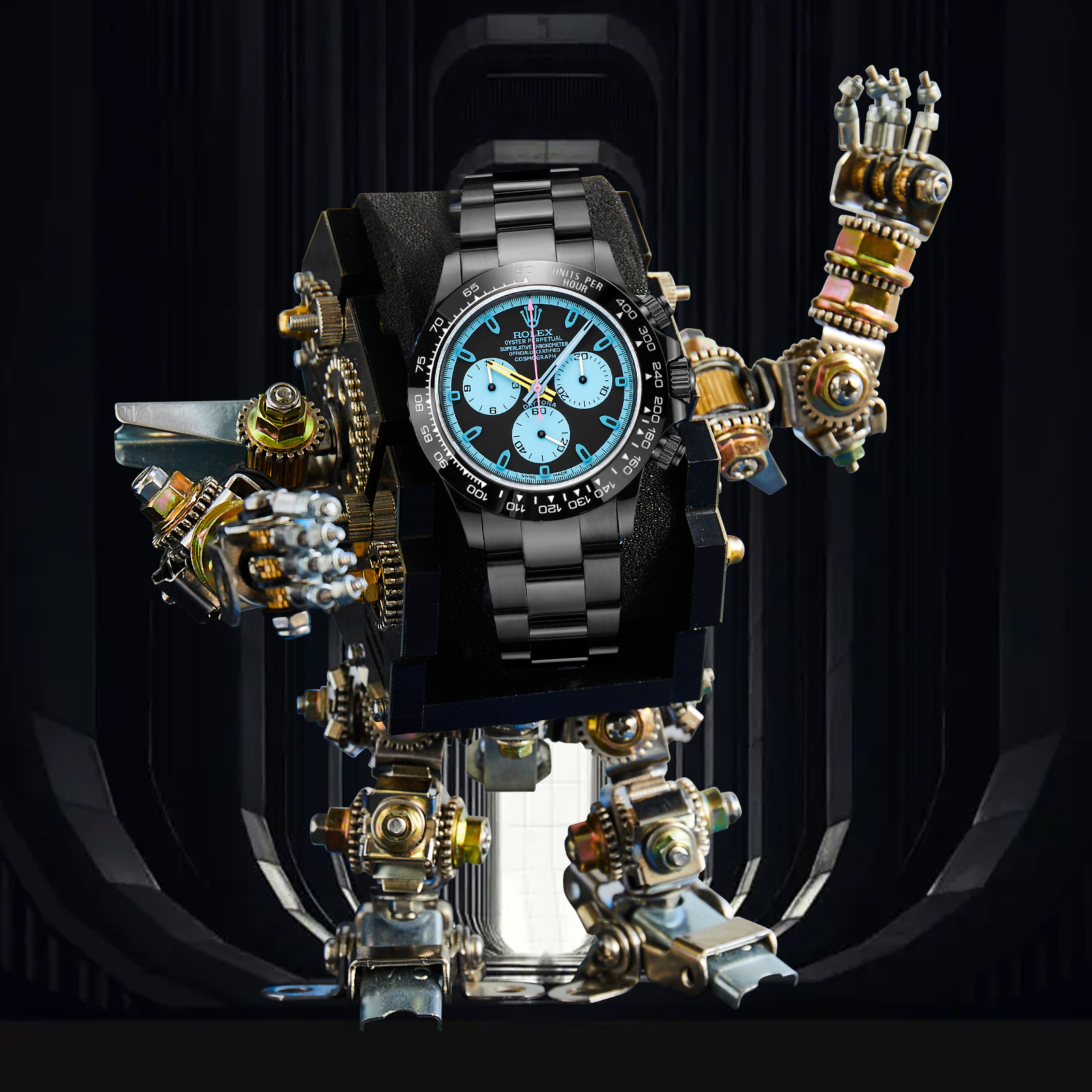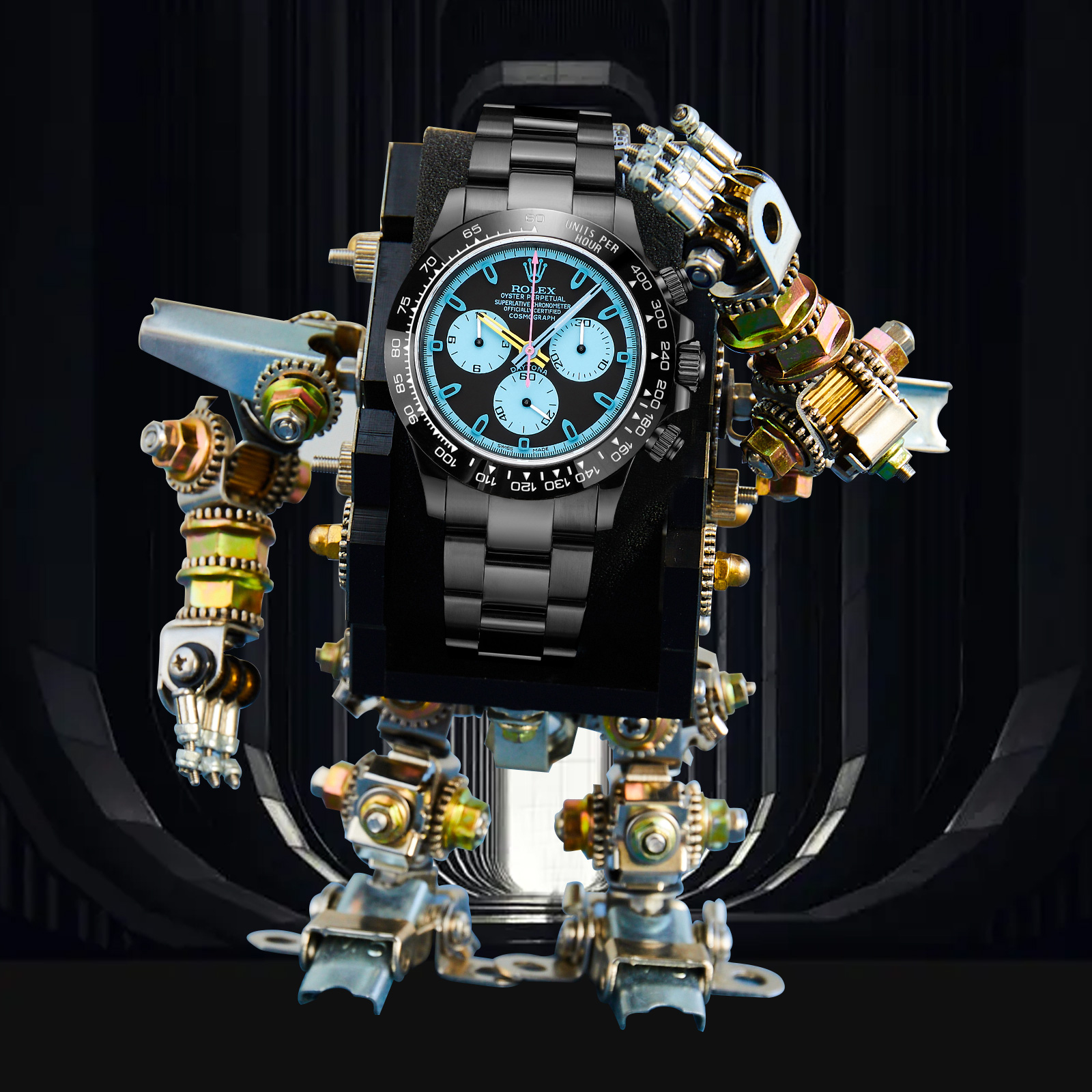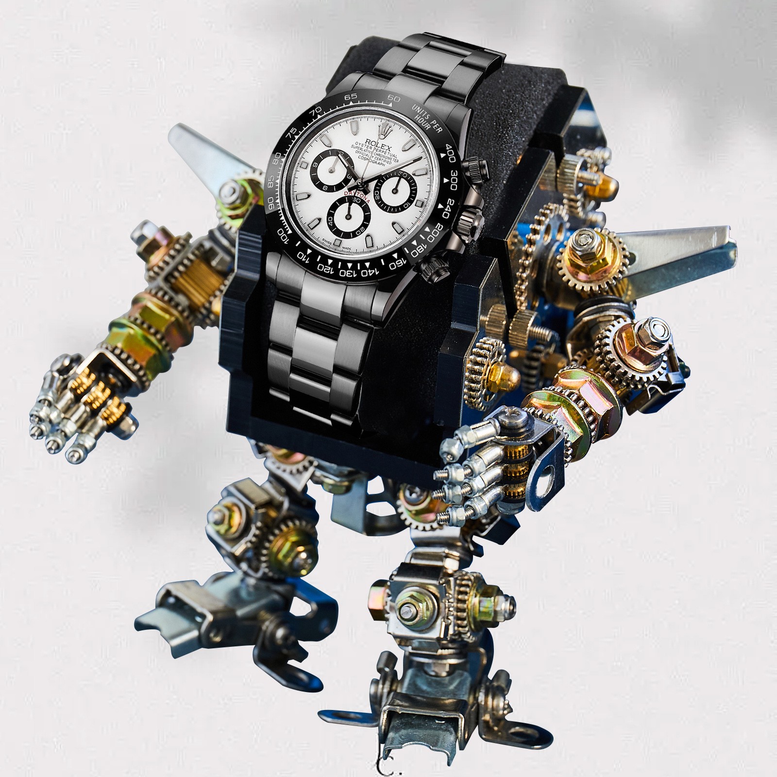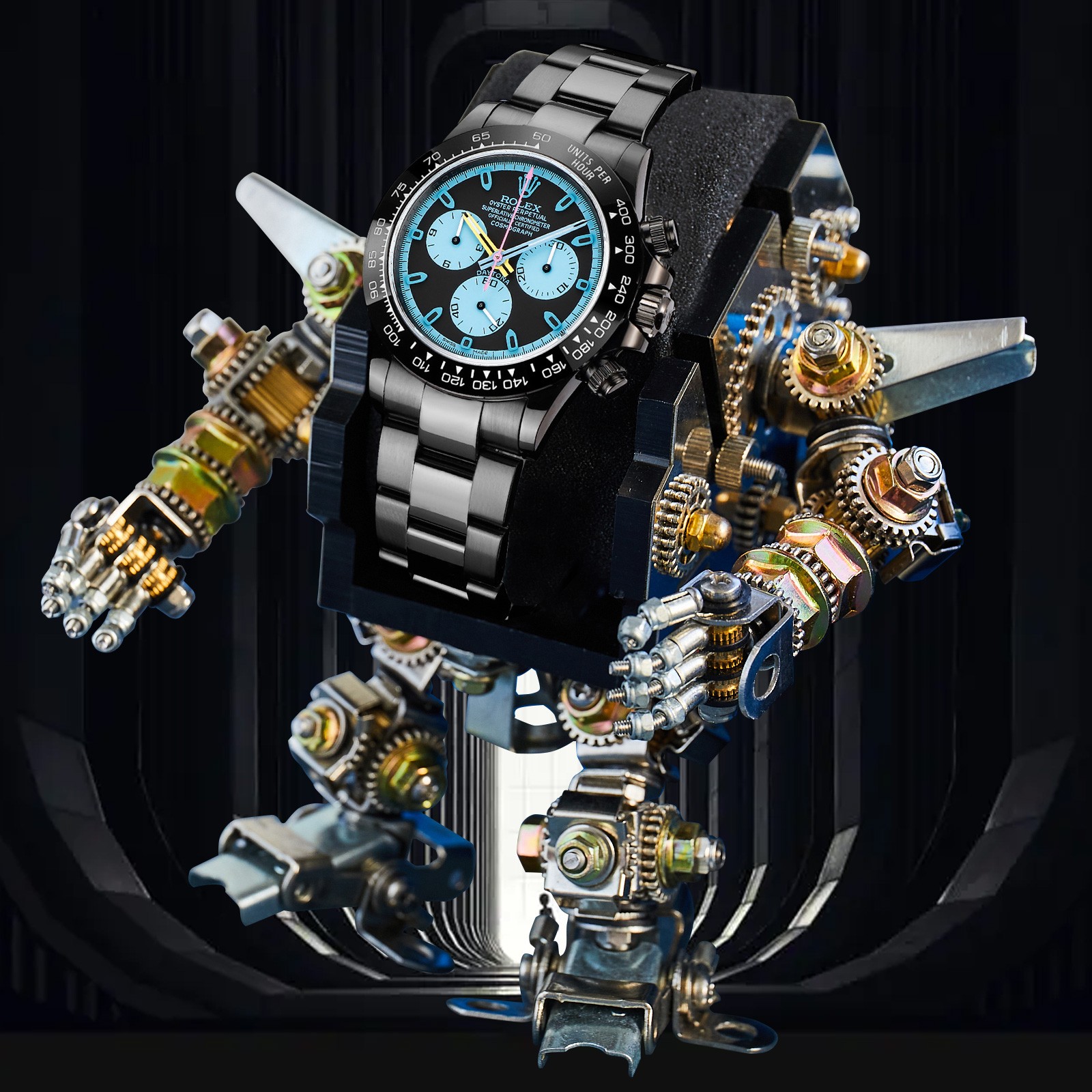 NIGO Rolex Men's Automatic Movement Modified Punk Robot Black Strap Mechanical Watch #nigo75378