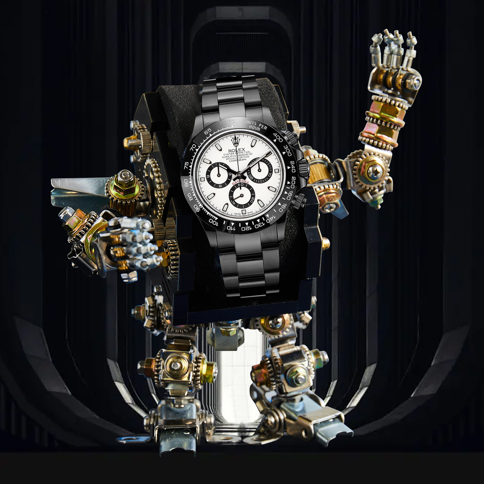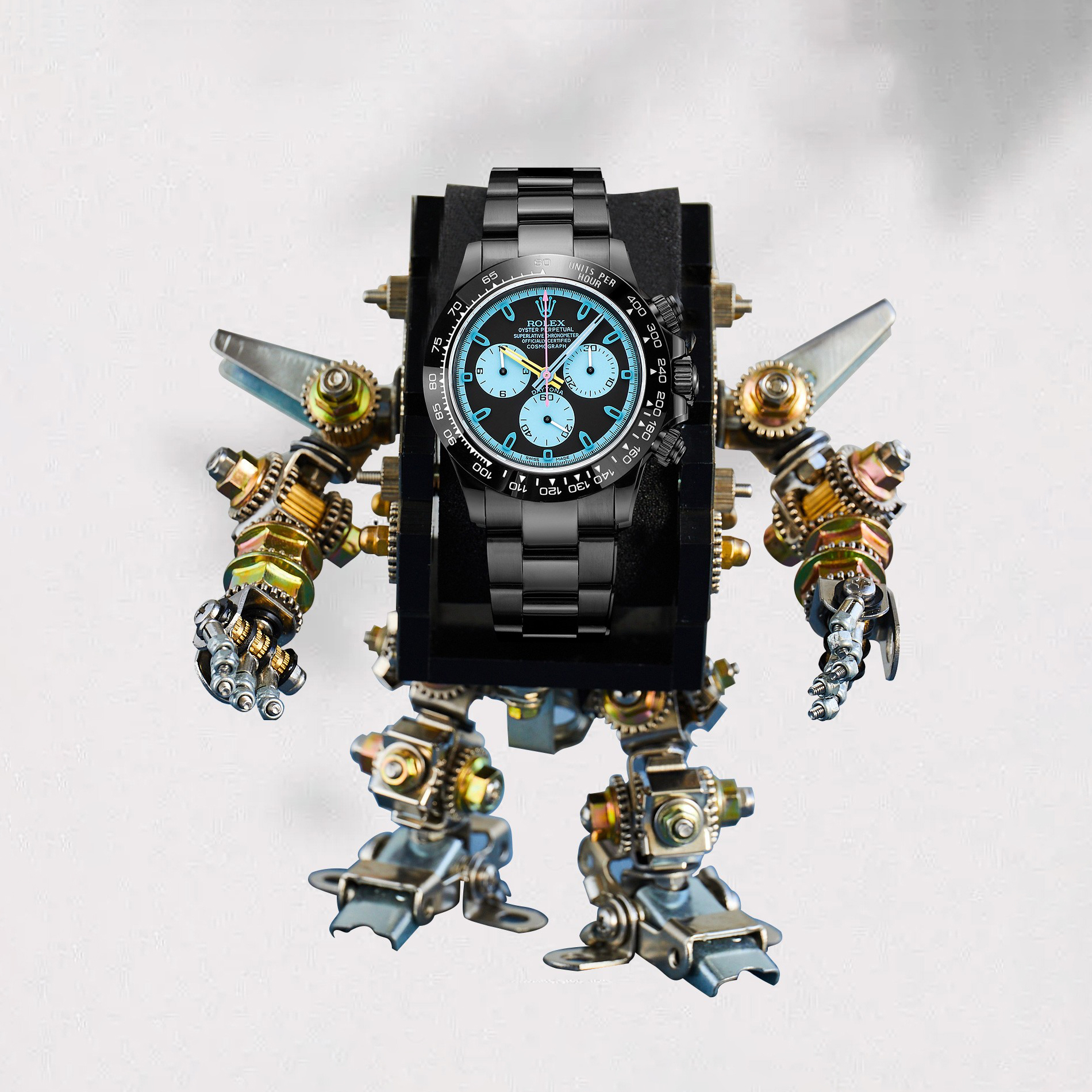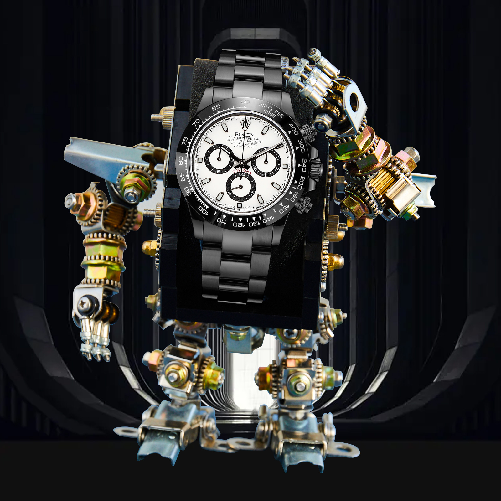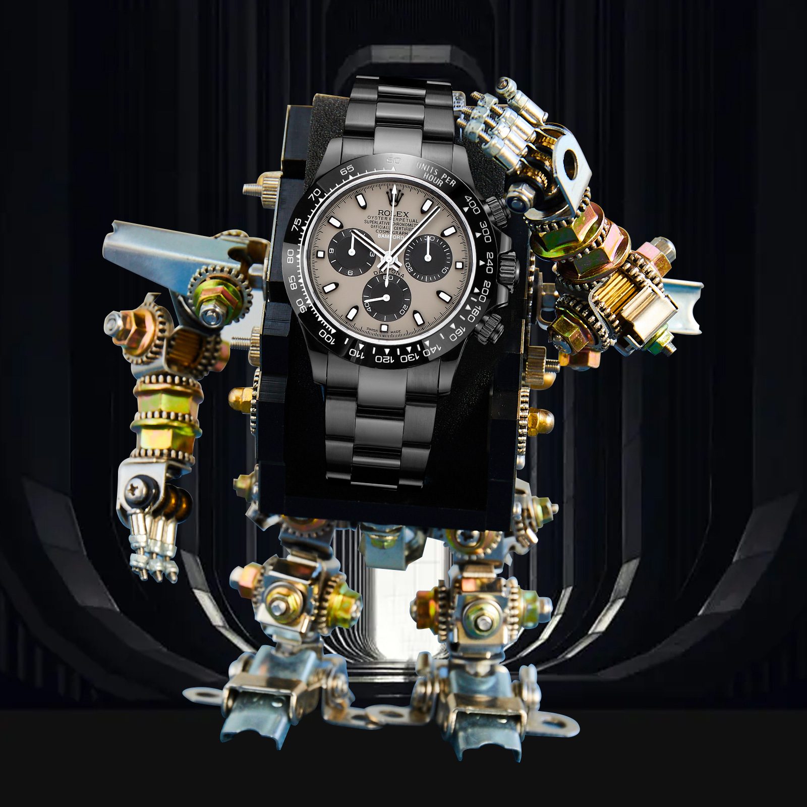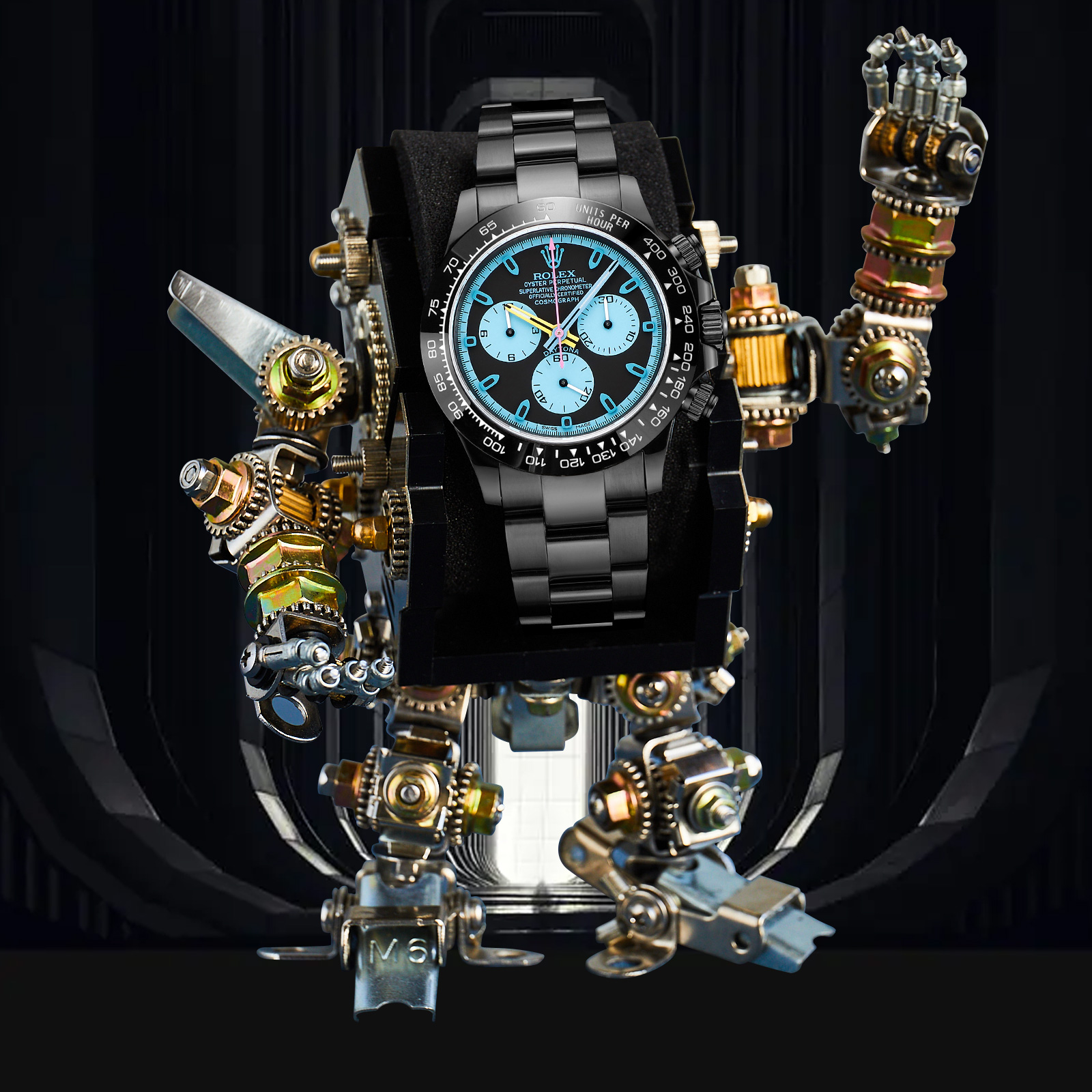 NIGO Rolex Men's Automatic Movement Modified Punk Robot Black Strap Mechanical Watch #nigo75378