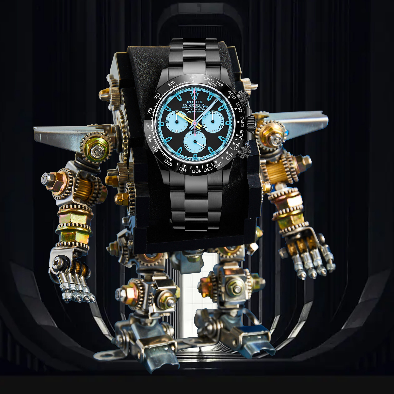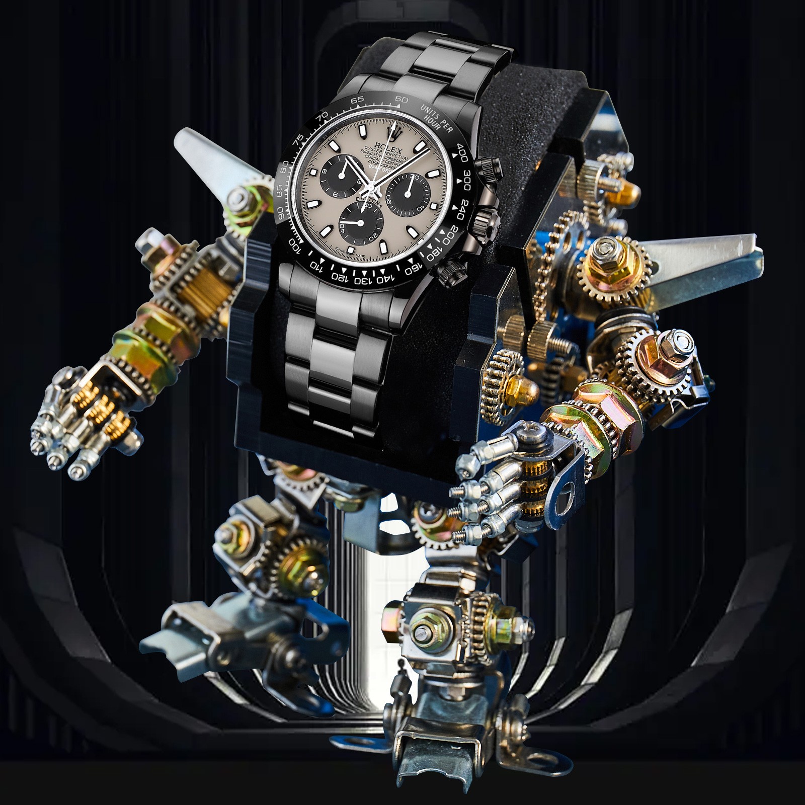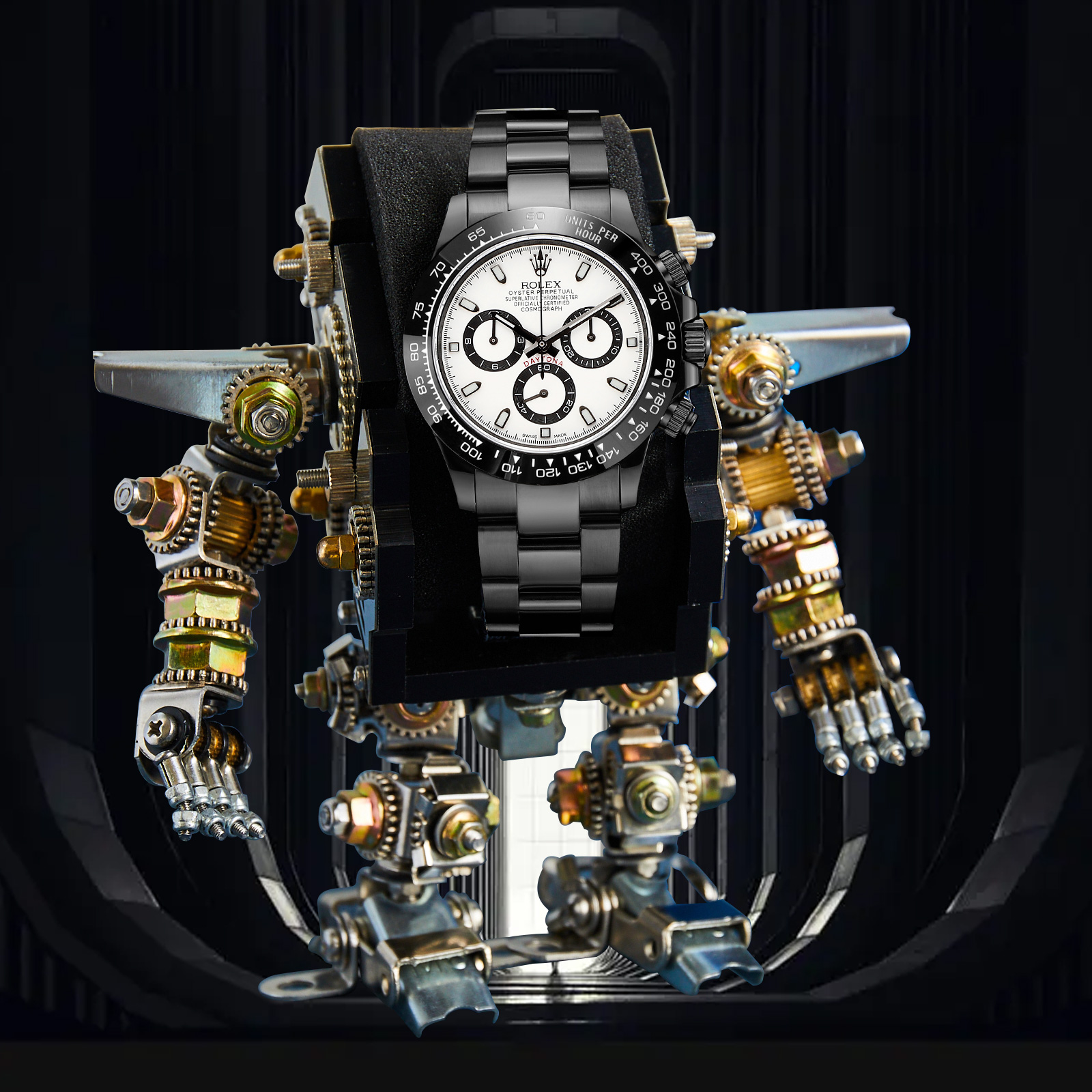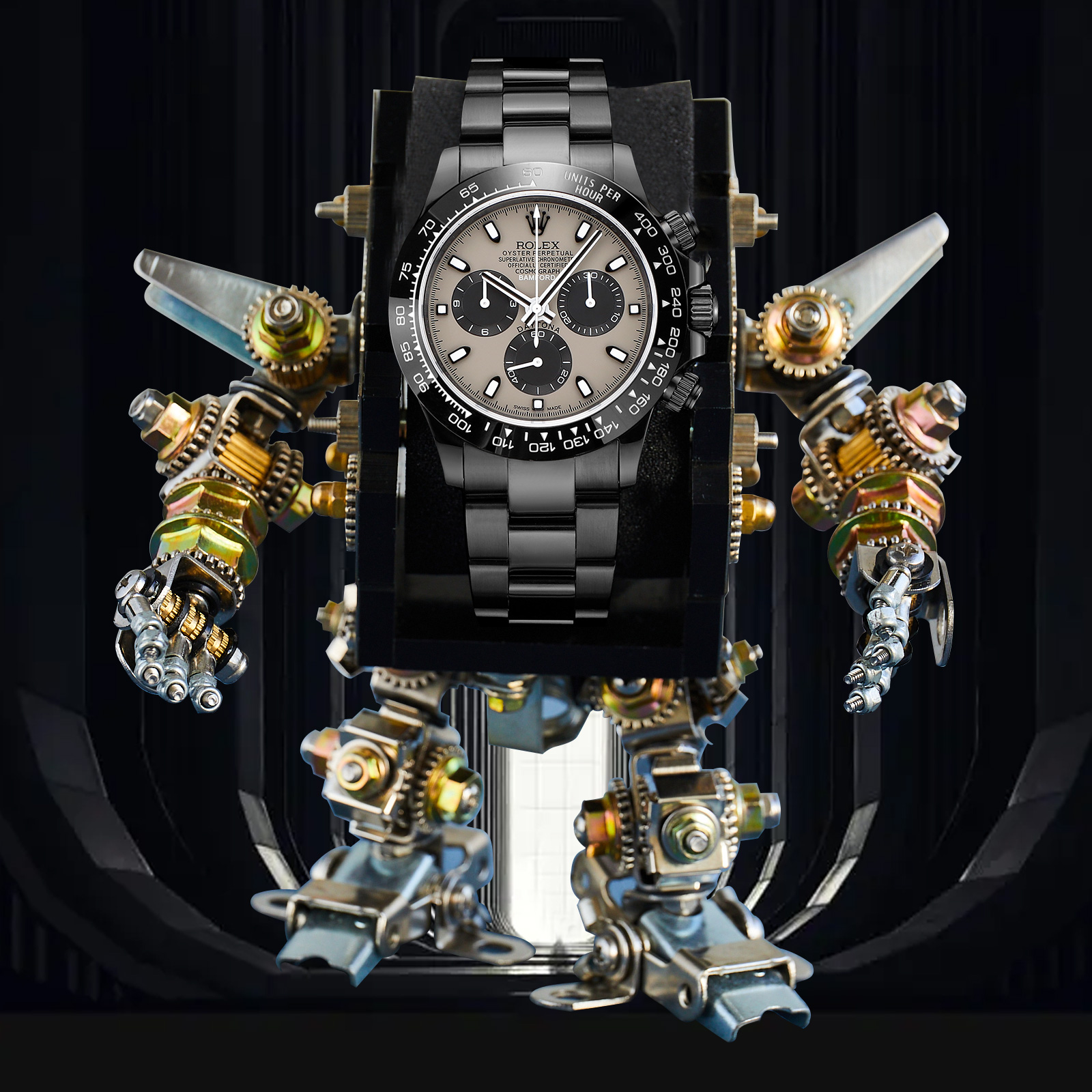 NIGO Rolex Men's Automatic Movement Modified Punk Robot Black Strap Mechanical Watch #nigo75378