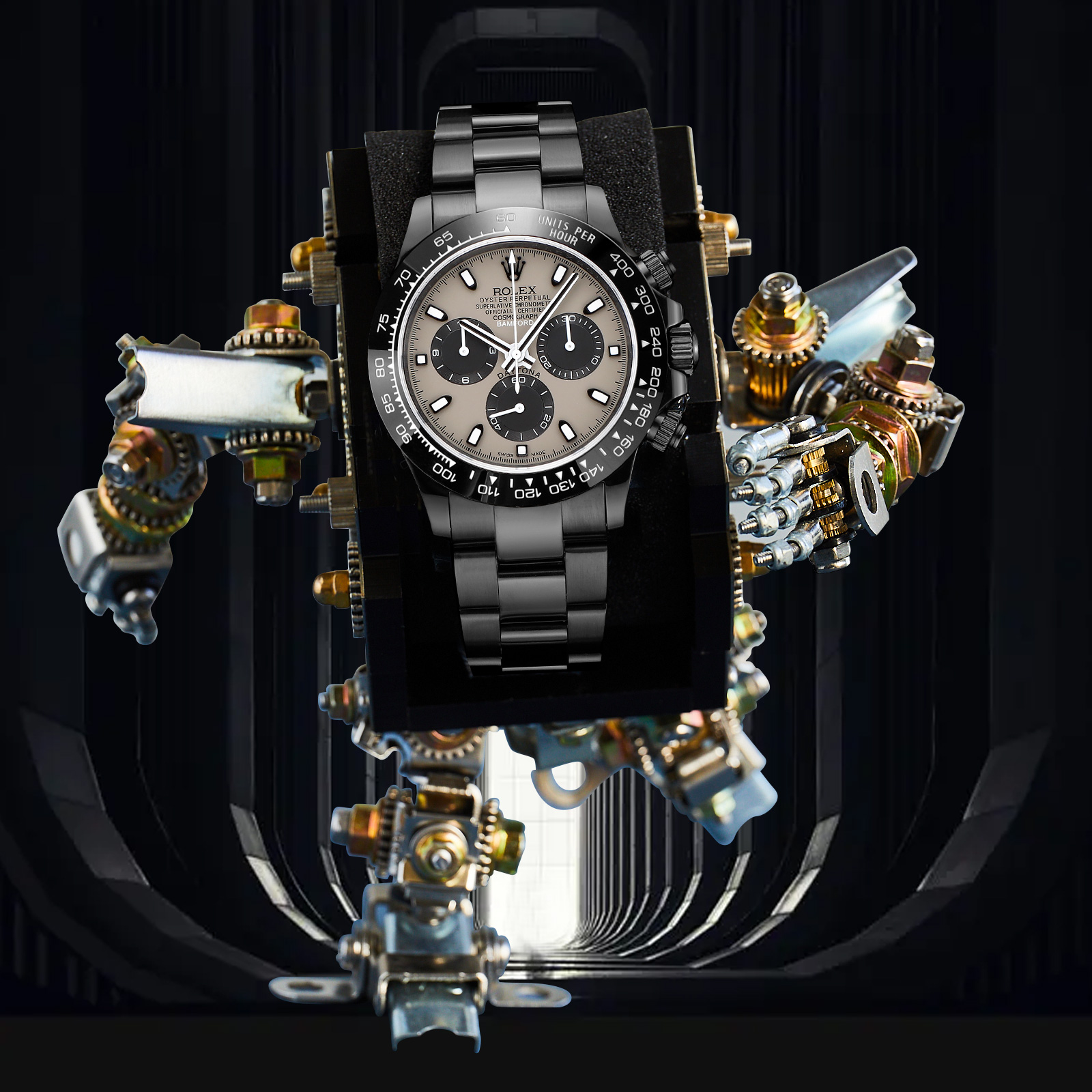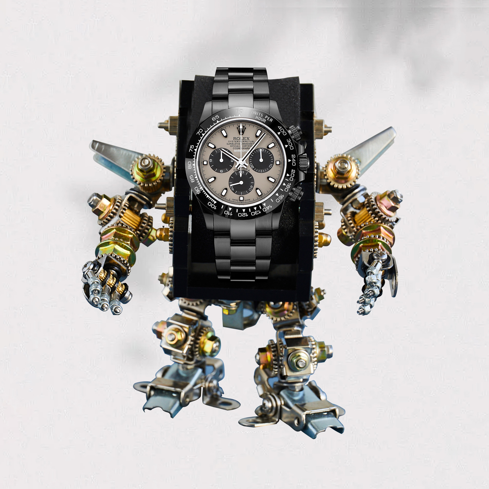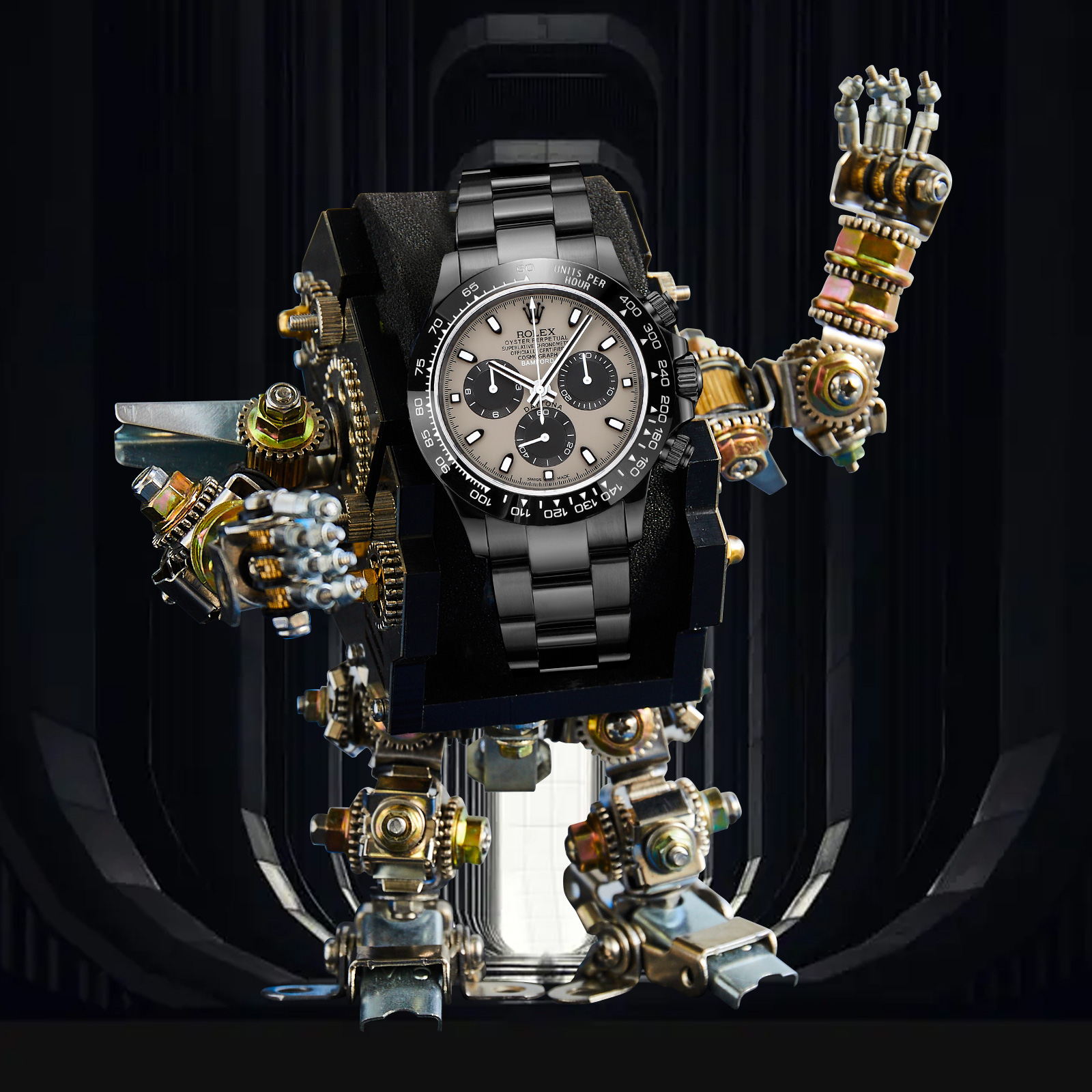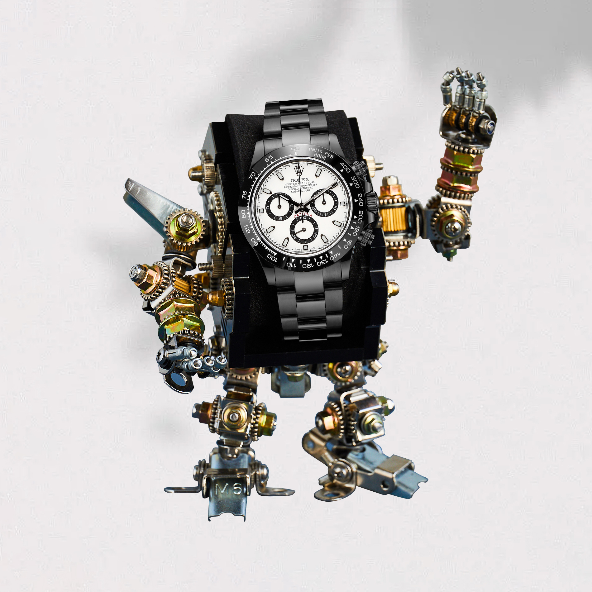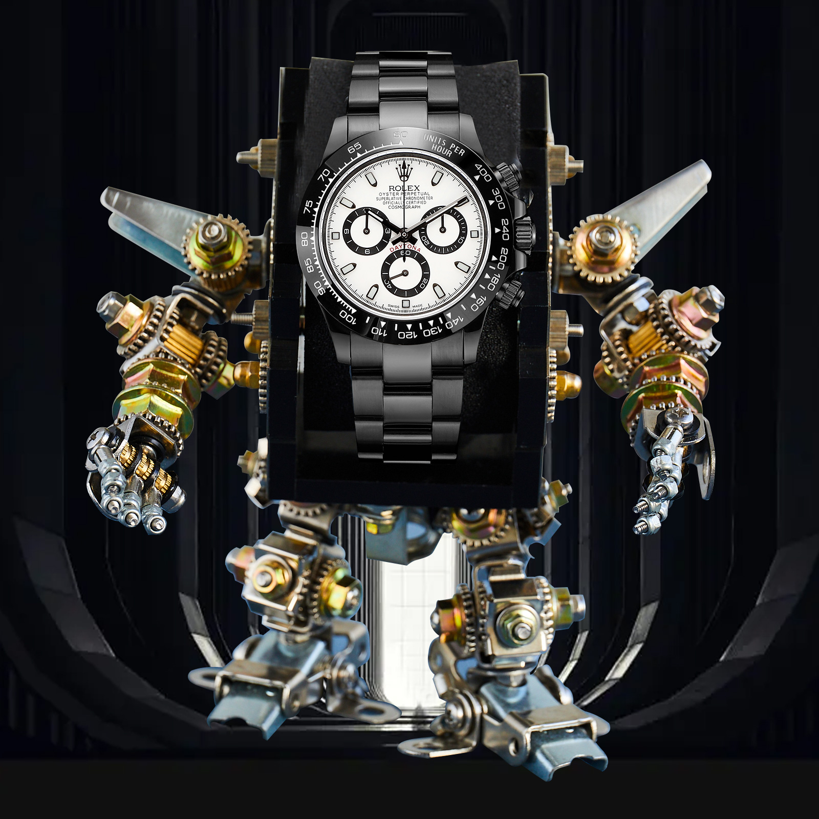 NIGO Rolex Men's Automatic Movement Modified Punk Robot Black Strap Mechanical Watch #nigo75378