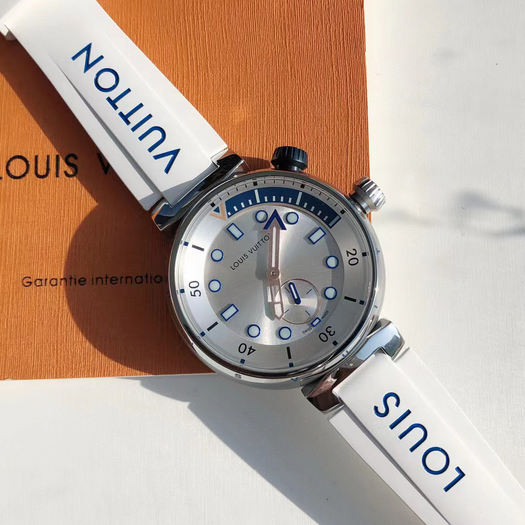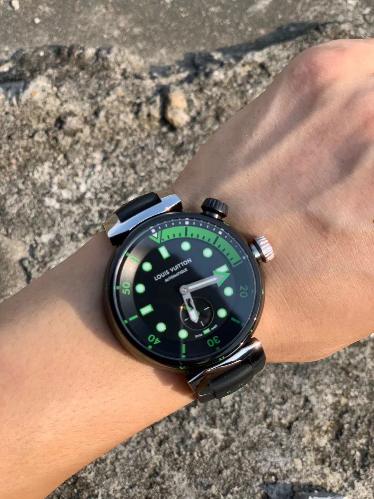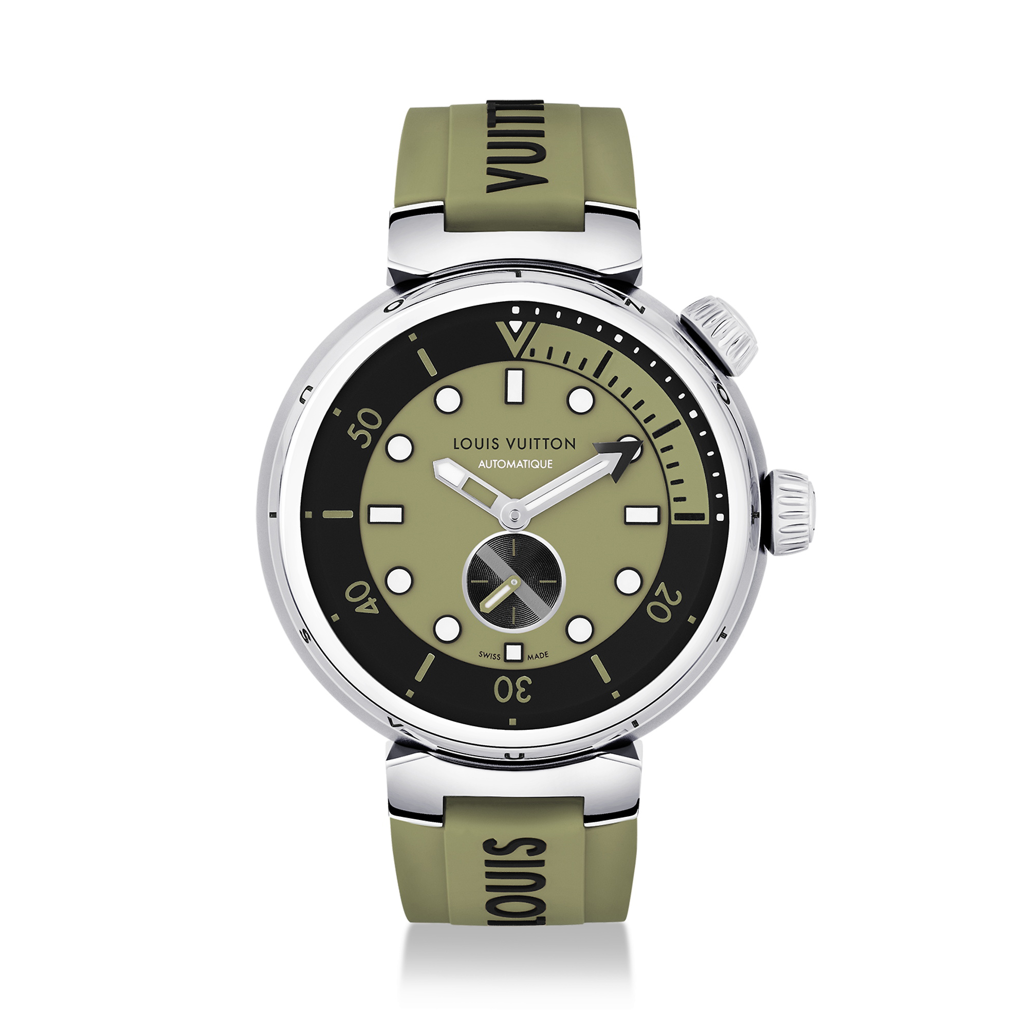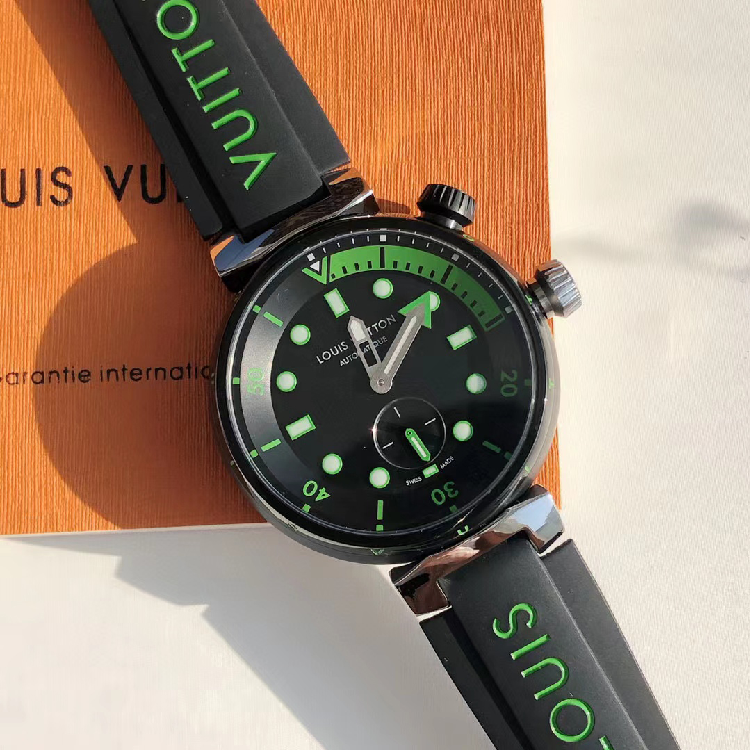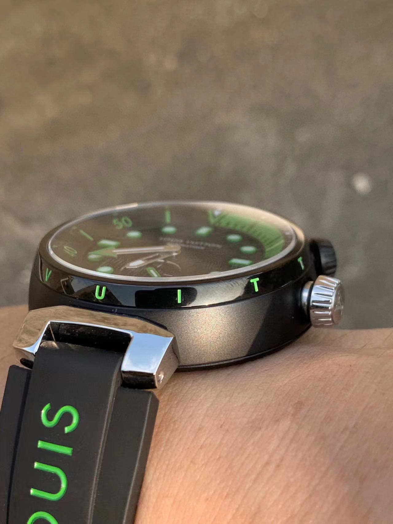 NIGO Louis Vuitton Men's TAMBOUR STREET DIVER Steel Dial Rubber Strap Automatic Mechanical Watch 44 mm #nigo99382