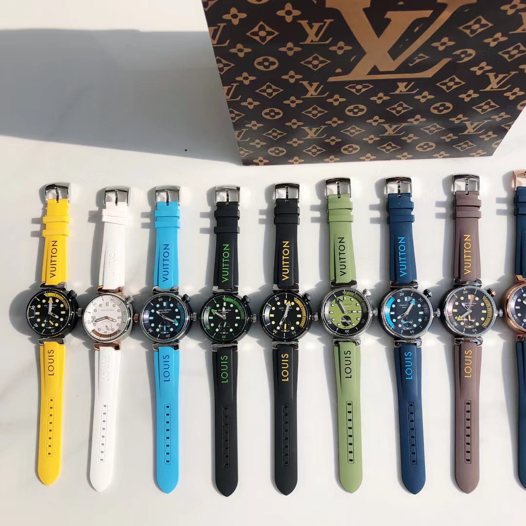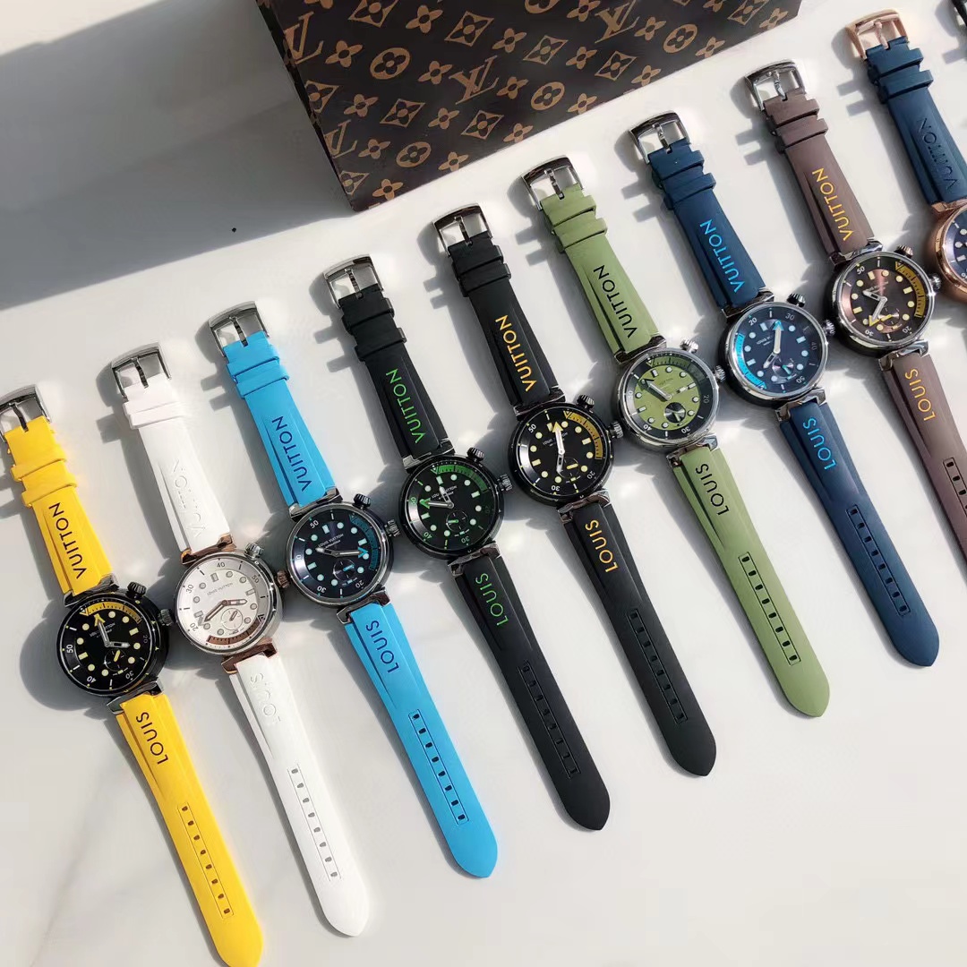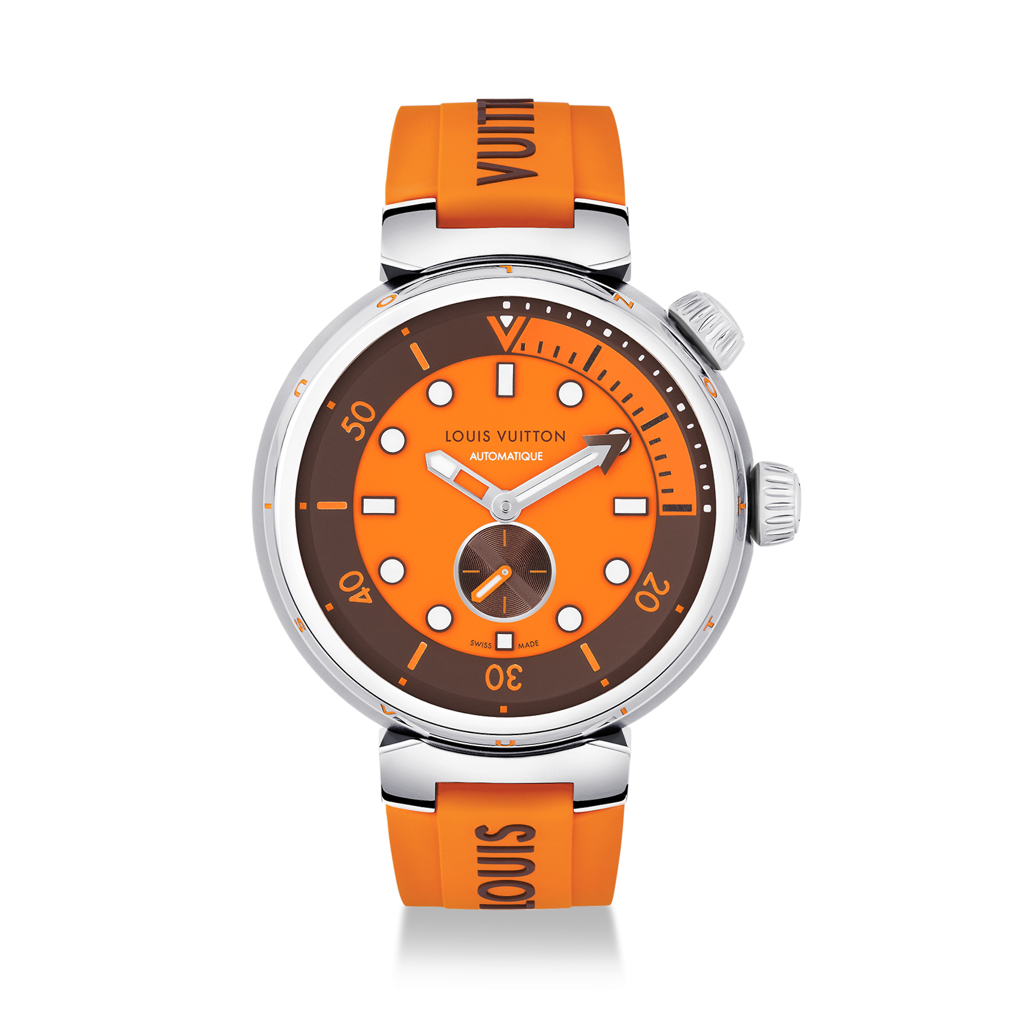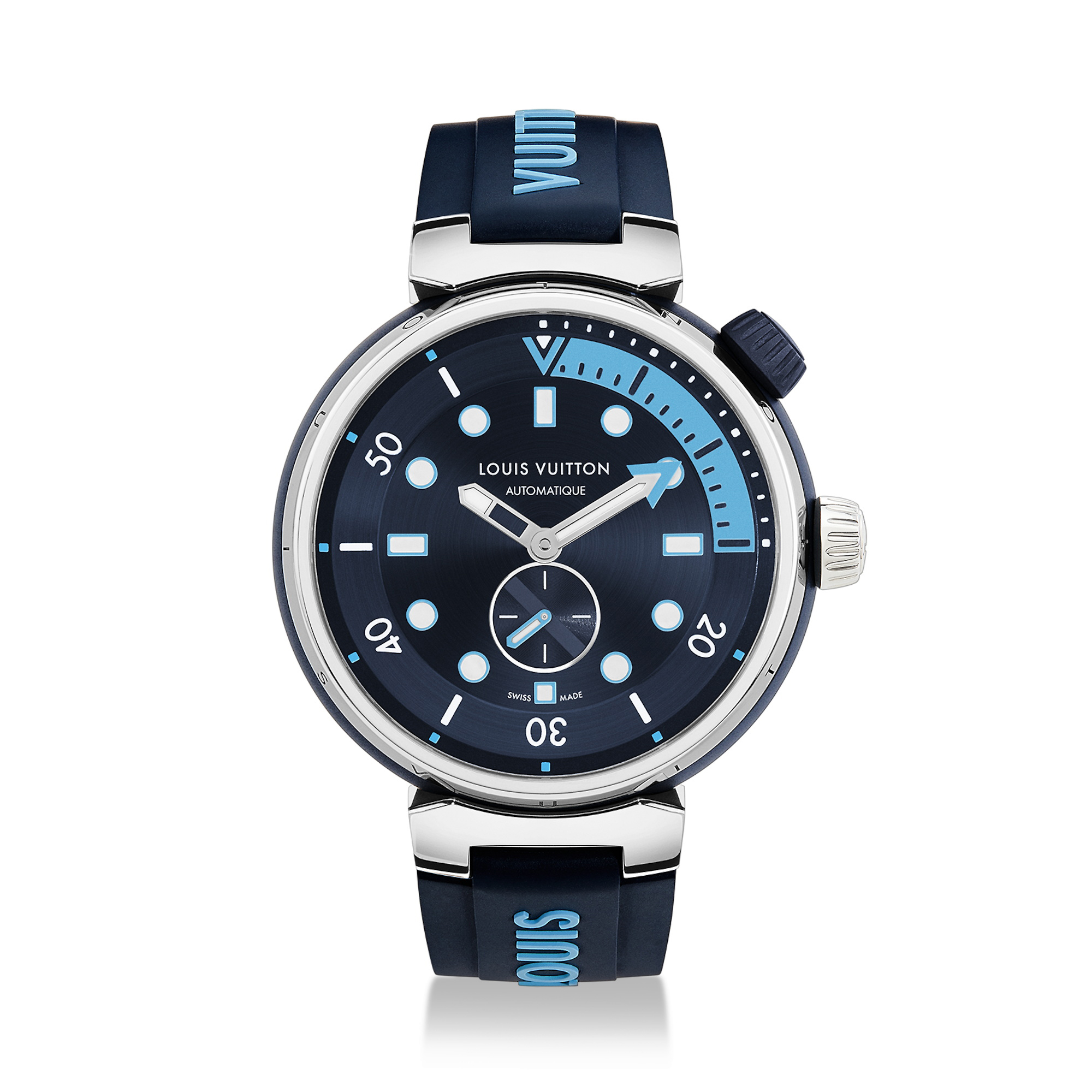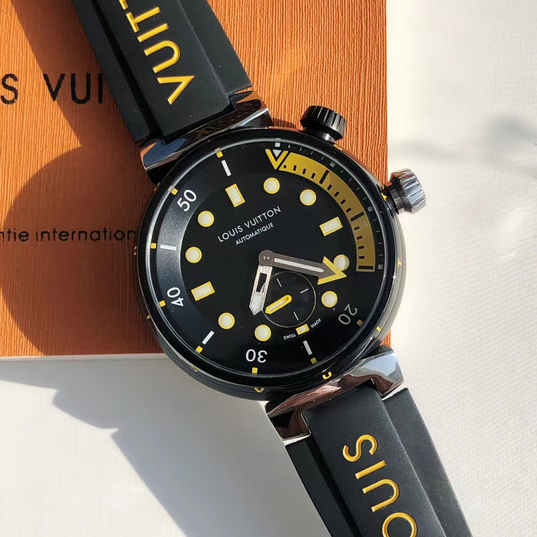 NIGO Louis Vuitton Men's TAMBOUR STREET DIVER Steel Dial Rubber Strap Automatic Mechanical Watch 44 mm #nigo99382