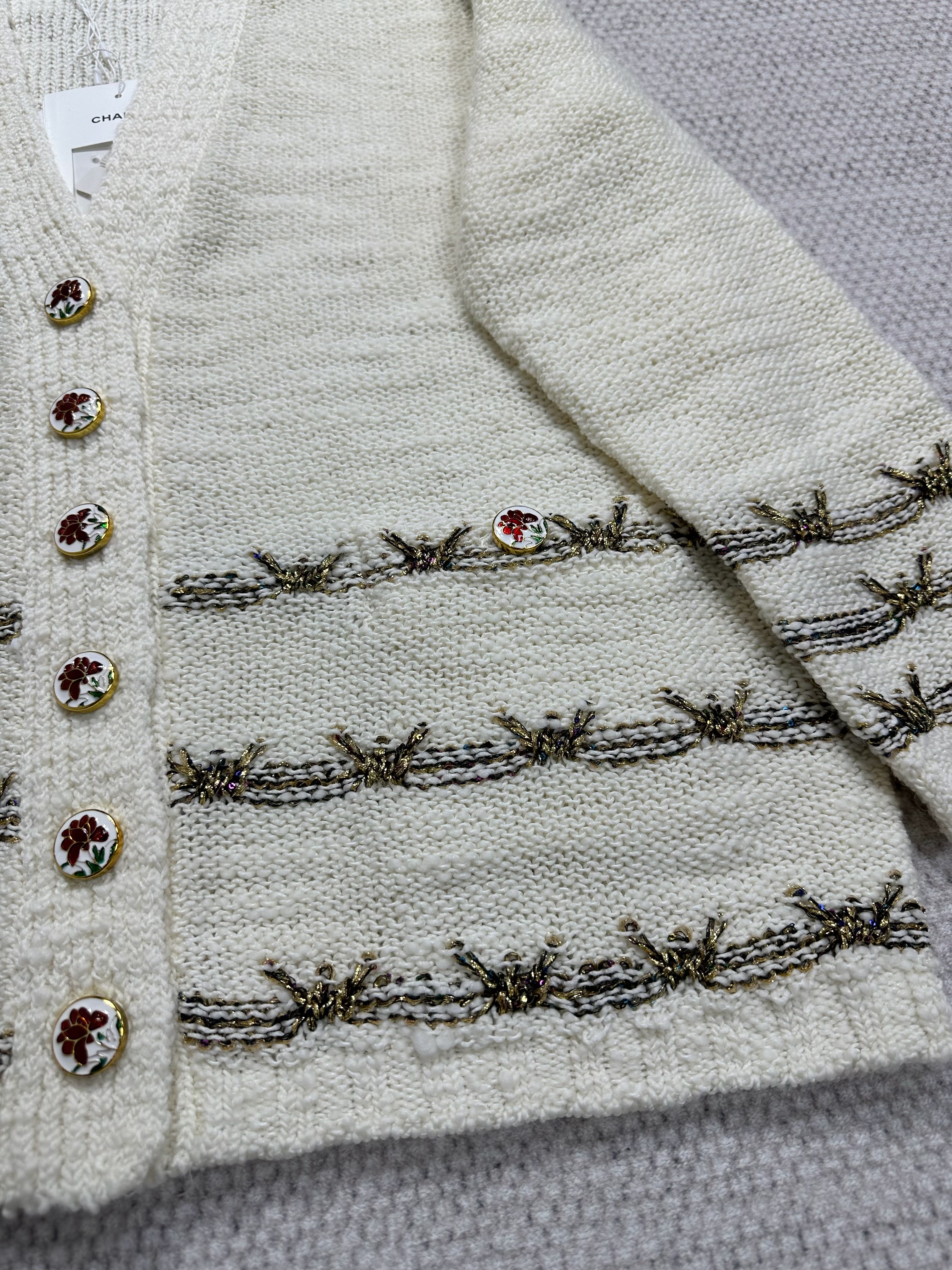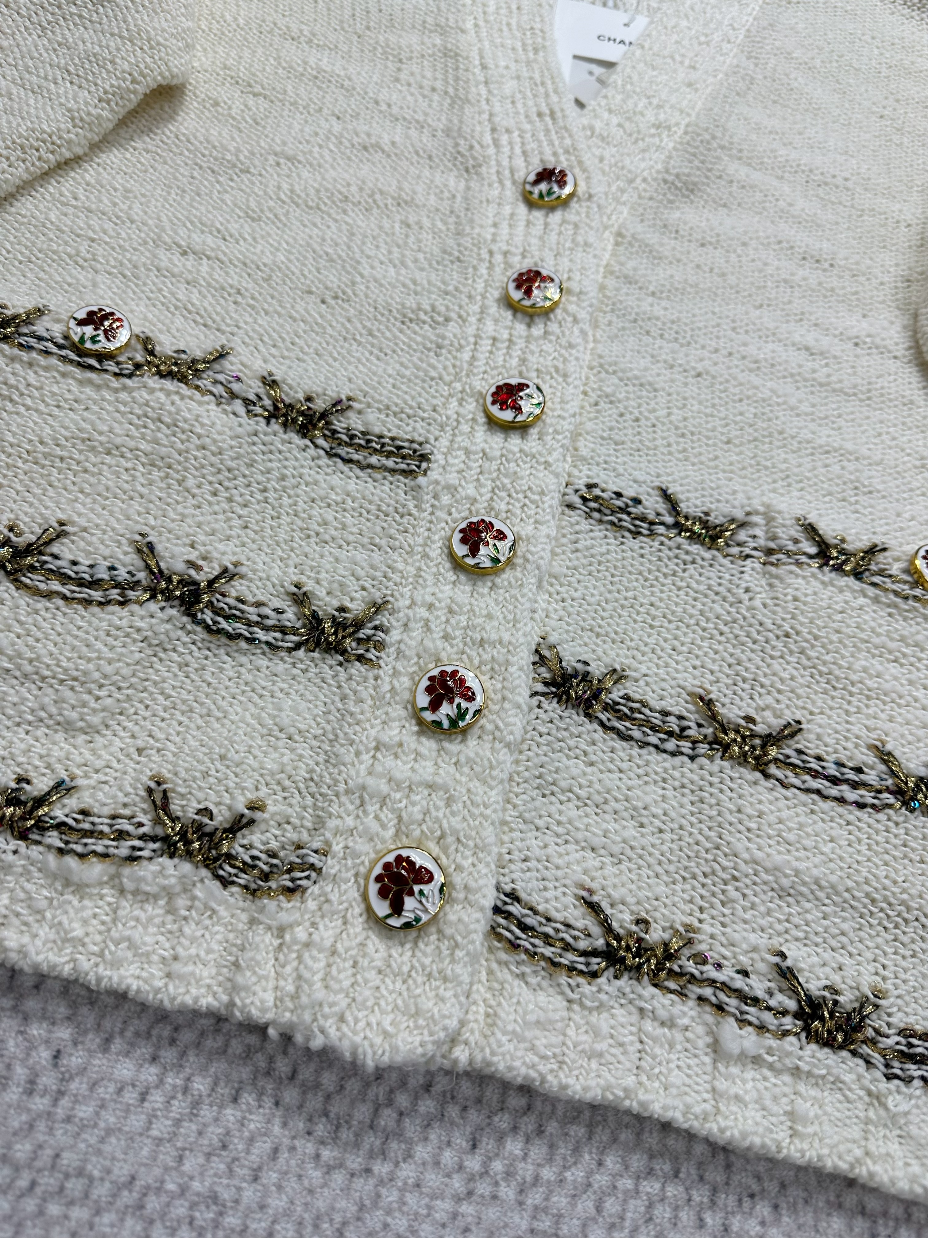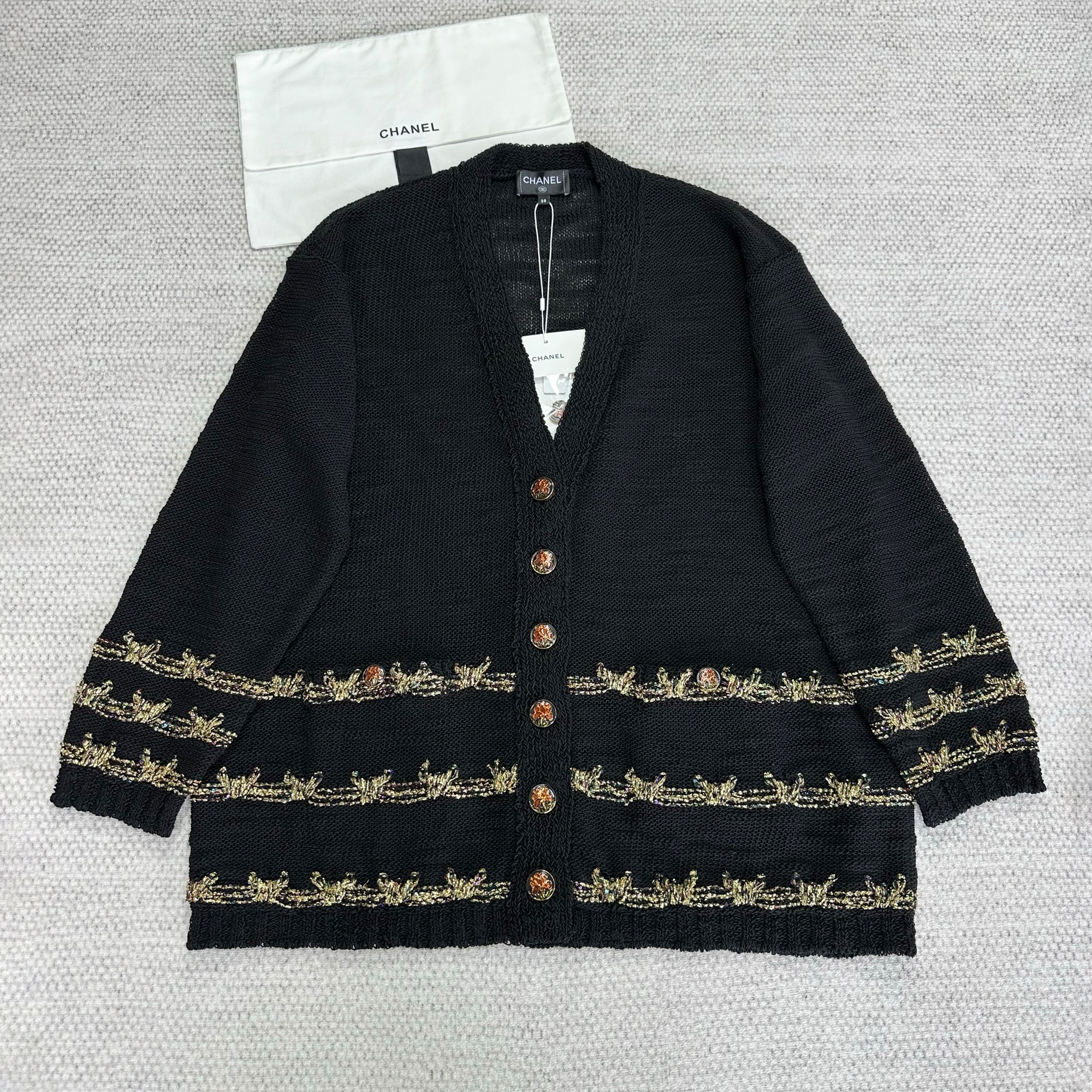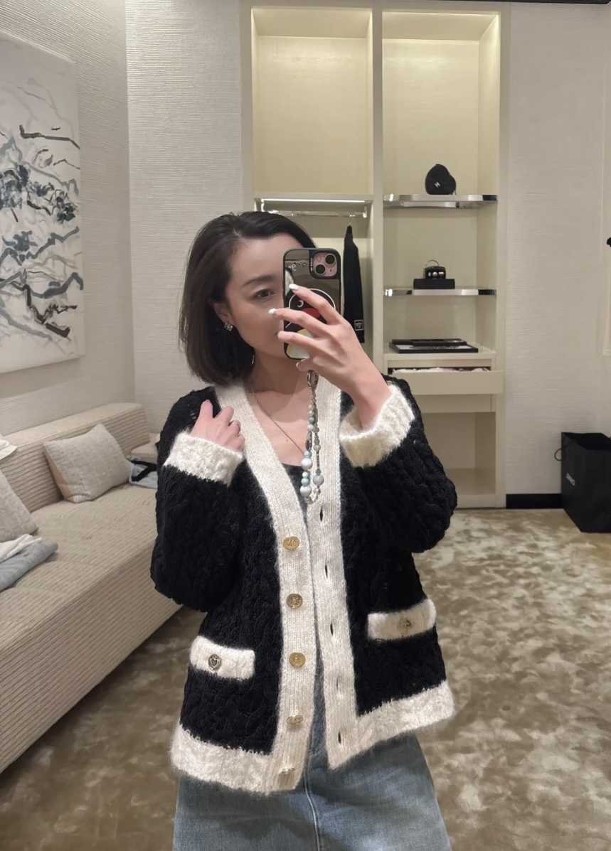 NIGO Chanel Women's Spring/Fall Vintage V-Neck Single-Breasted Gold-Thread Knit Wool-Blend Cardigan Ngvp #nigo2562