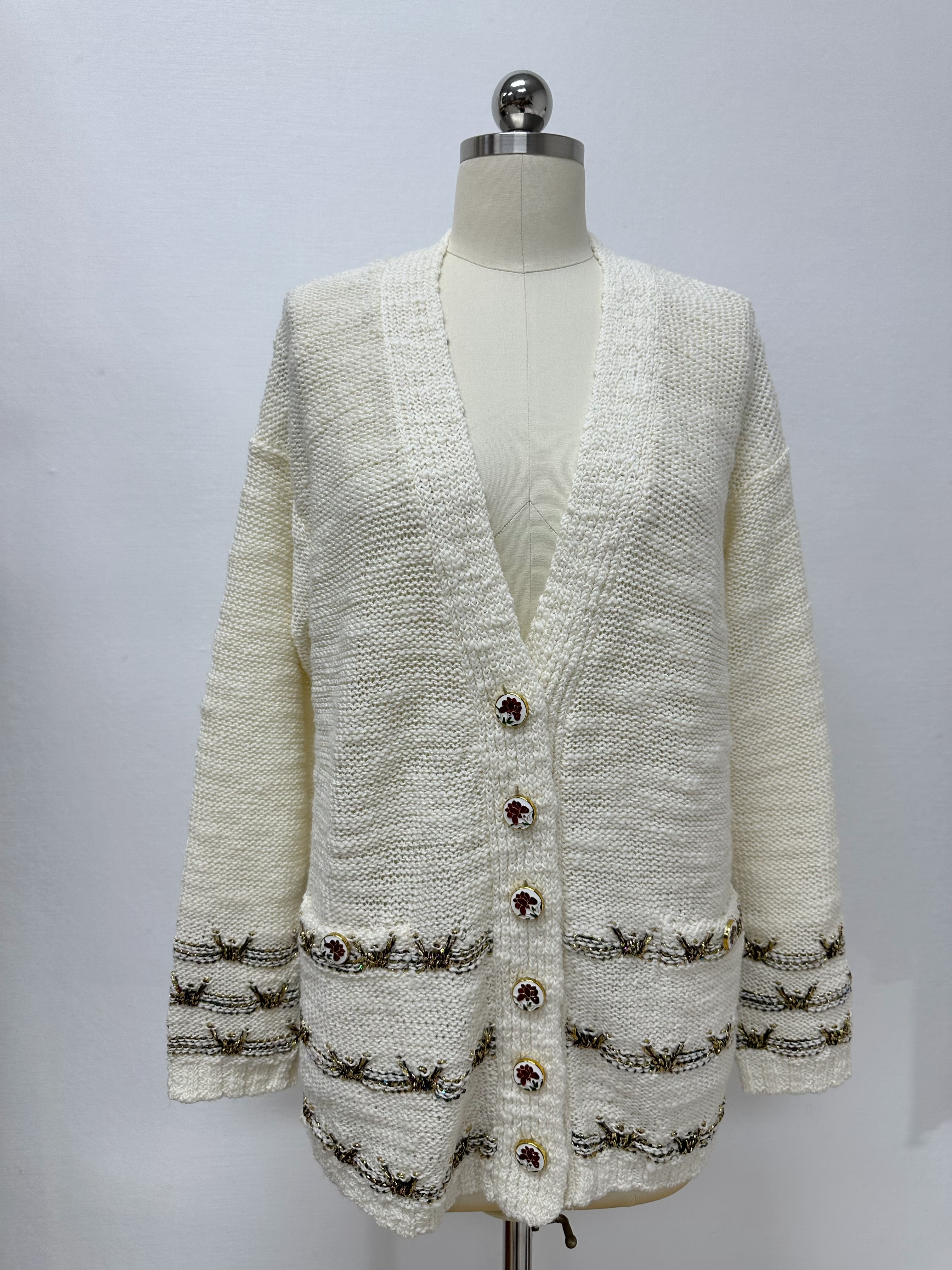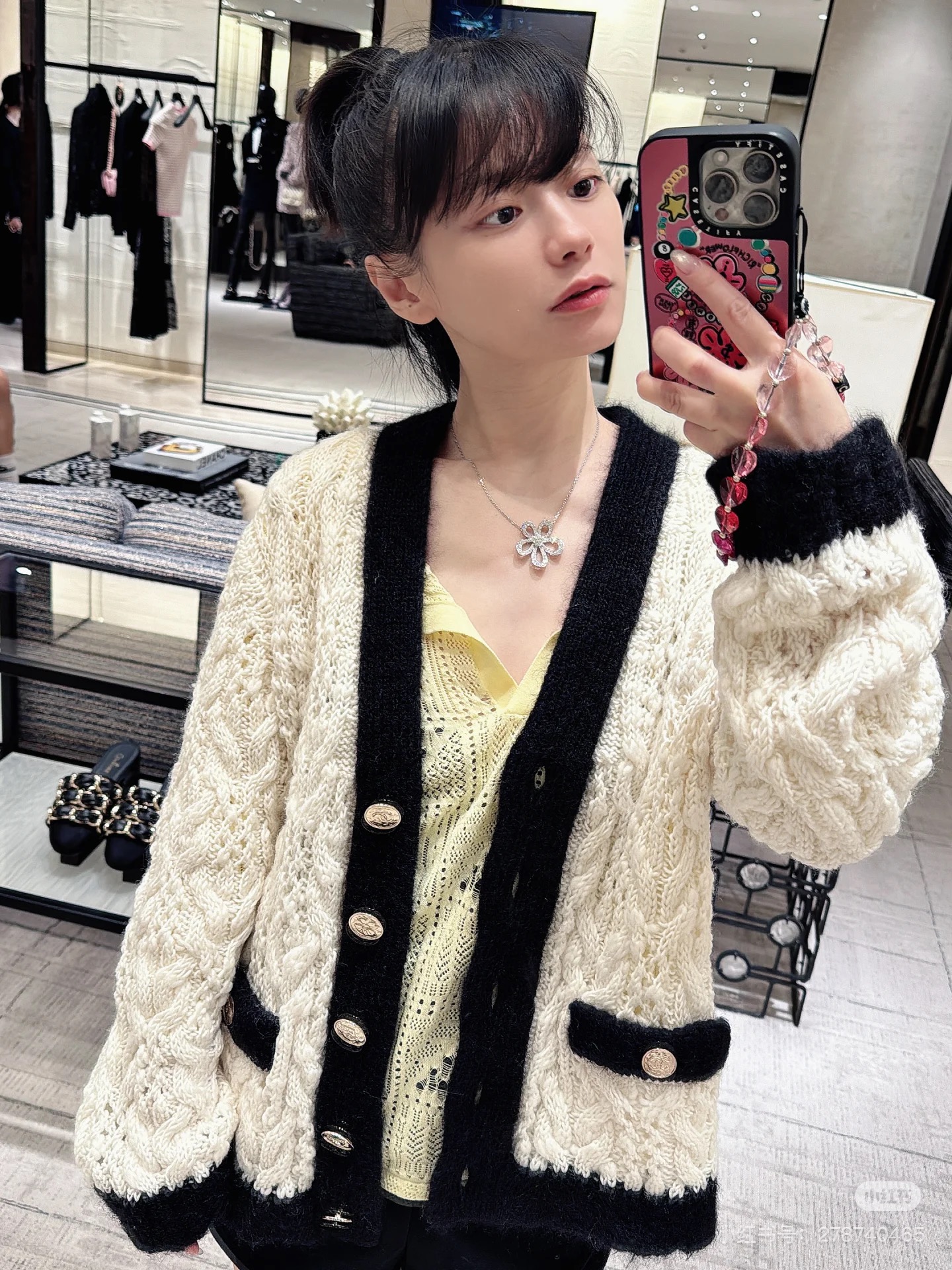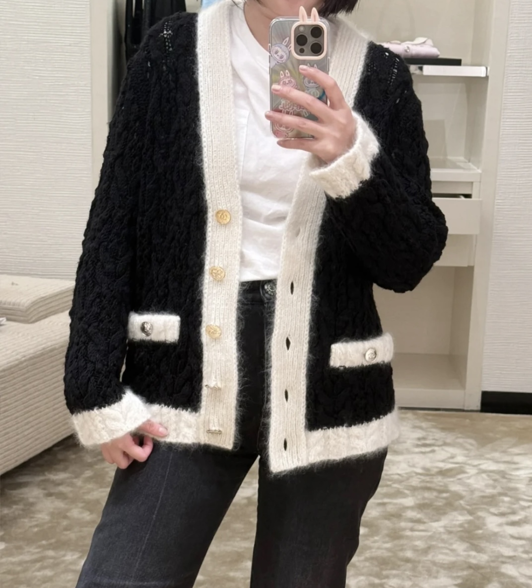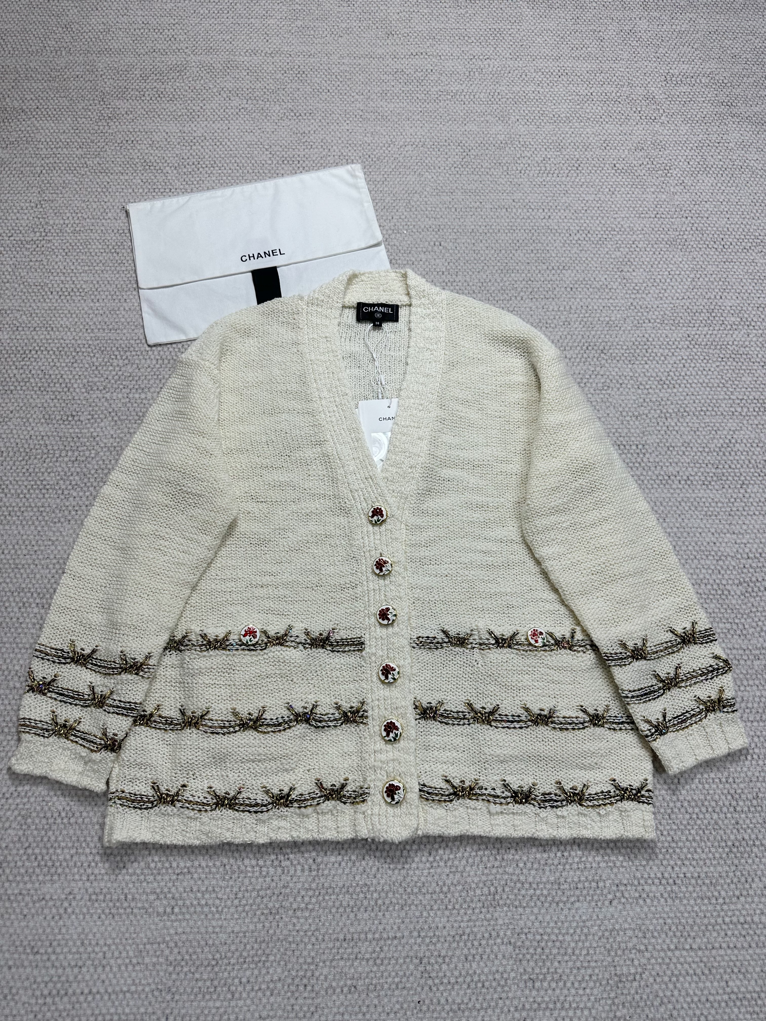 NIGO Chanel Women's Spring/Fall Vintage V-Neck Single-Breasted Gold-Thread Knit Wool-Blend Cardigan Ngvp #nigo2562