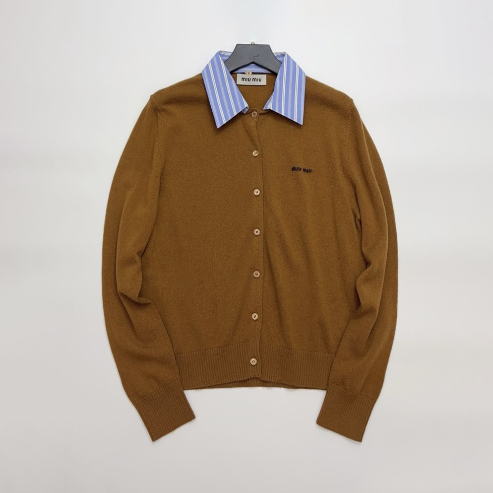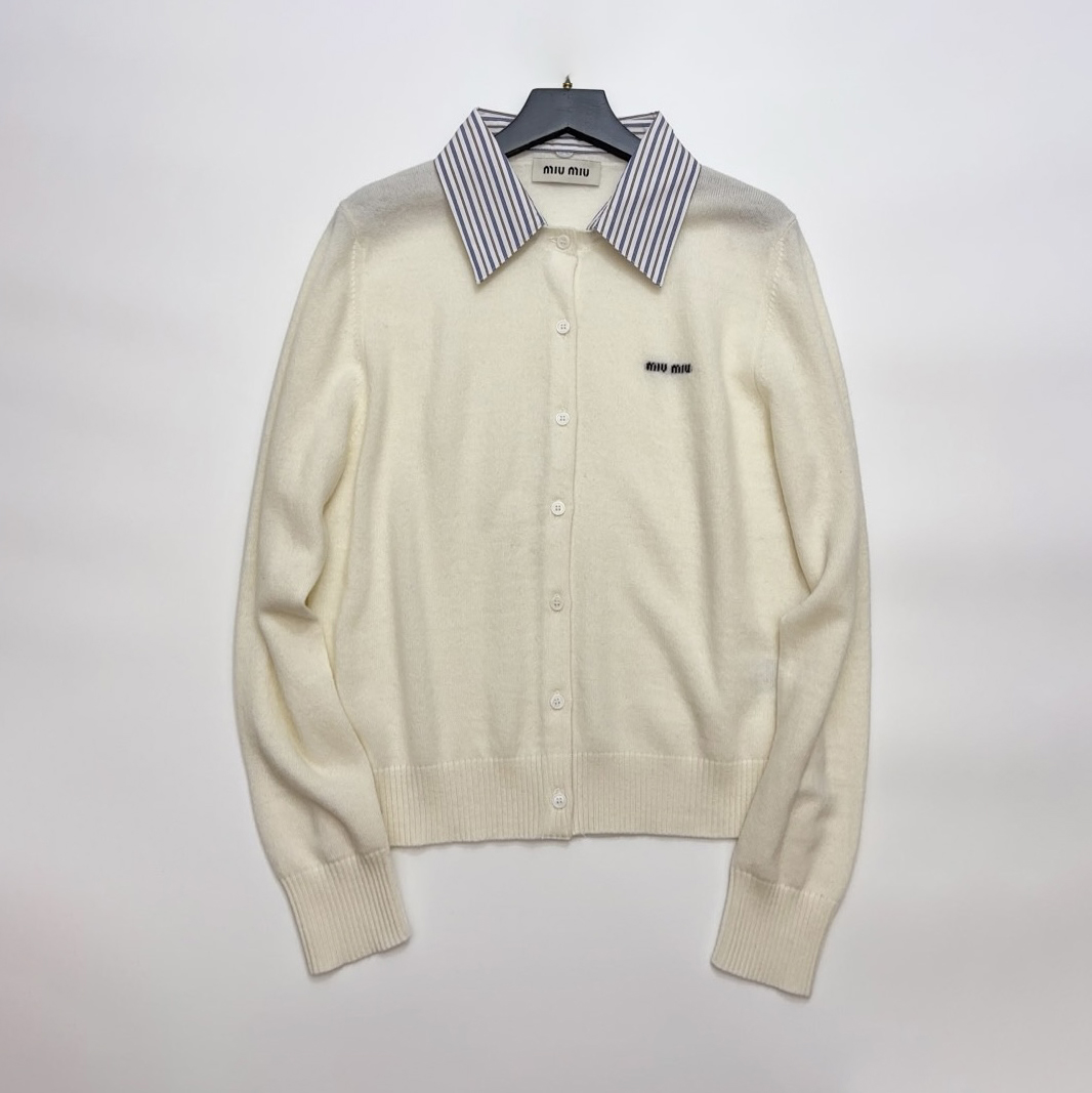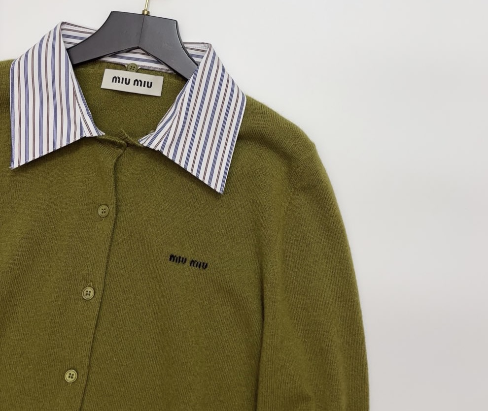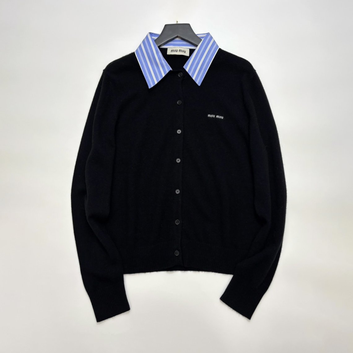 NIGO MiuMiu Women's Fall/Winter Fashionable Casual Collared Zipper Contrast-Trim Cardigan #nigo79462
