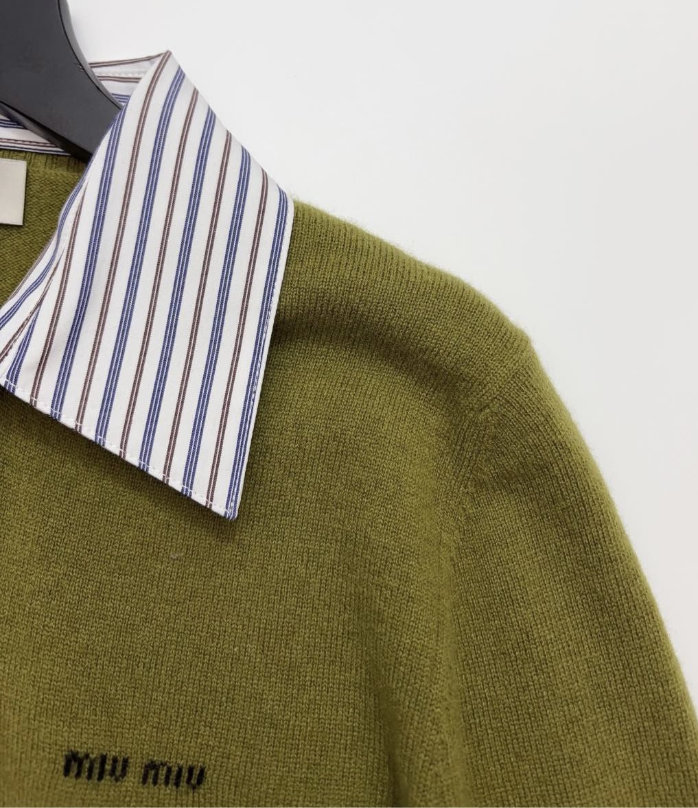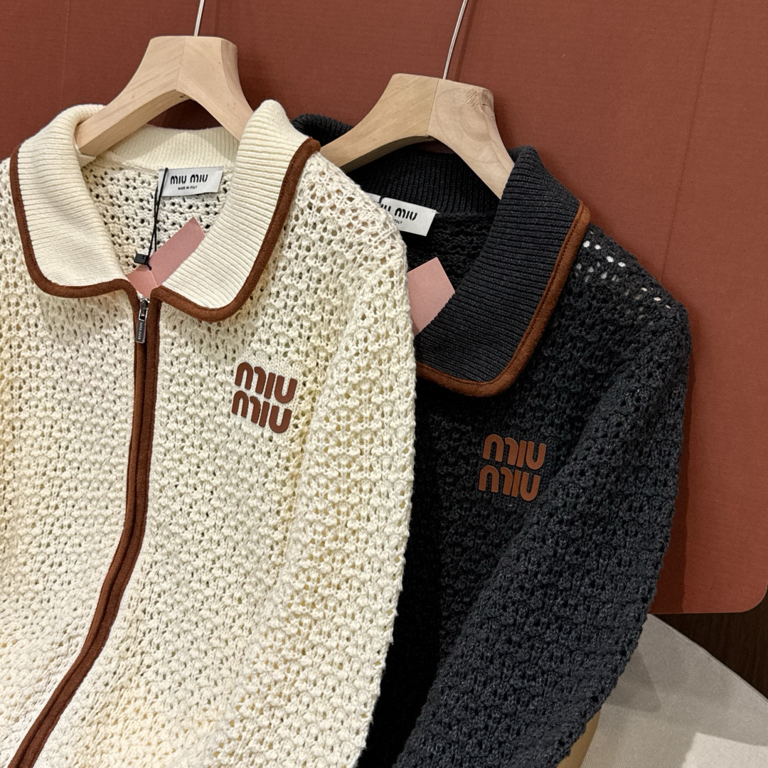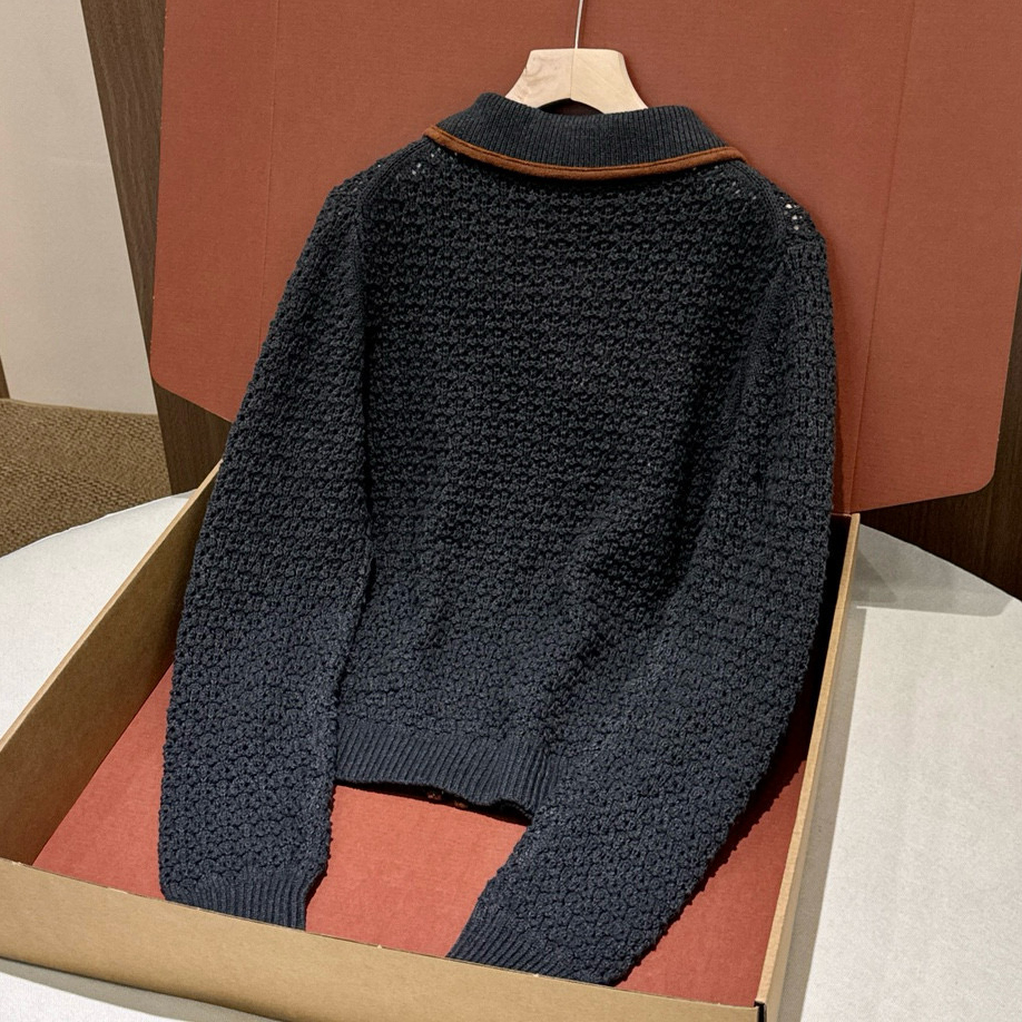 NIGO MiuMiu Women's Fall/Winter Fashionable Casual Collared Zipper Contrast-Trim Cardigan #nigo79462