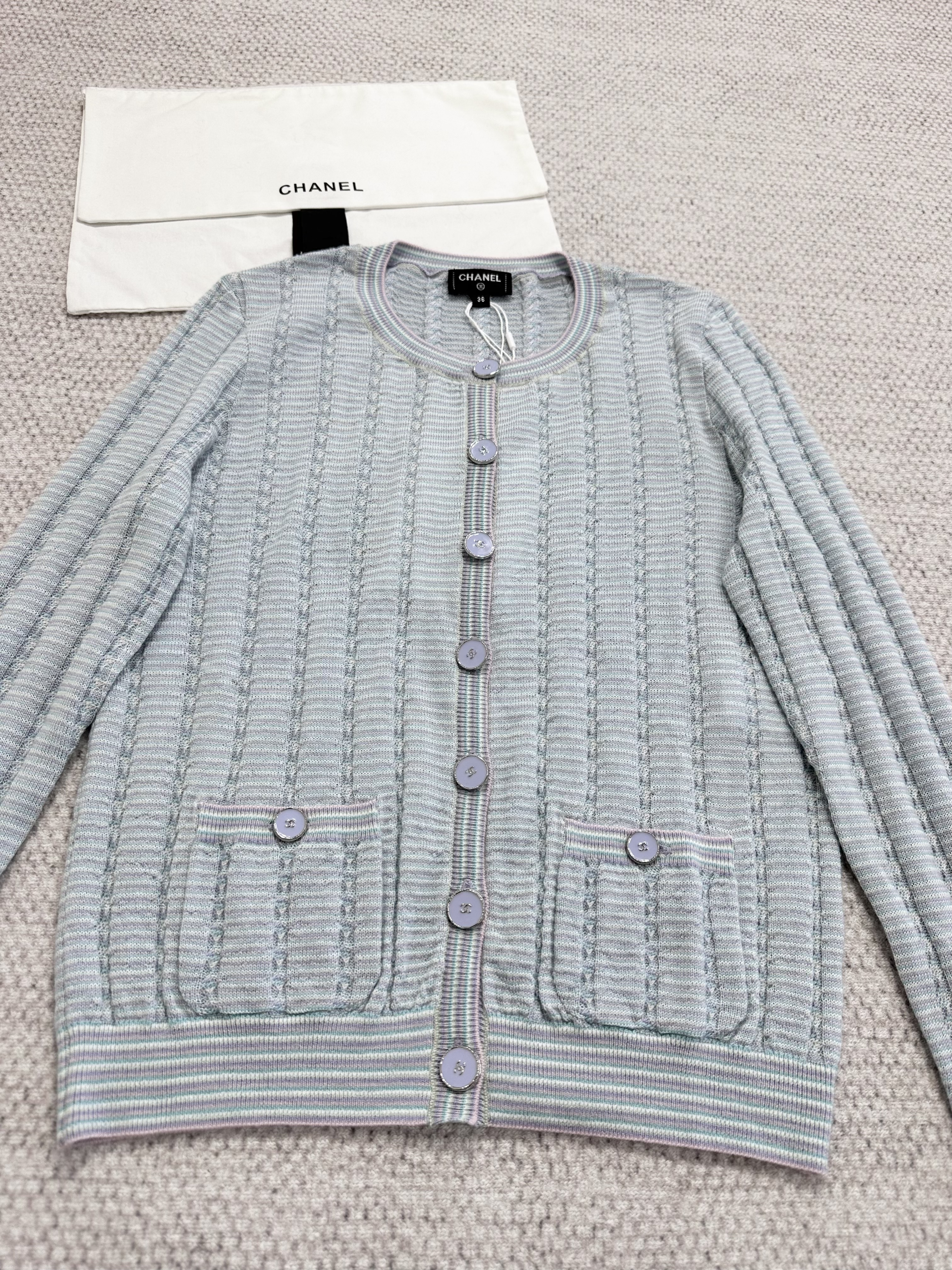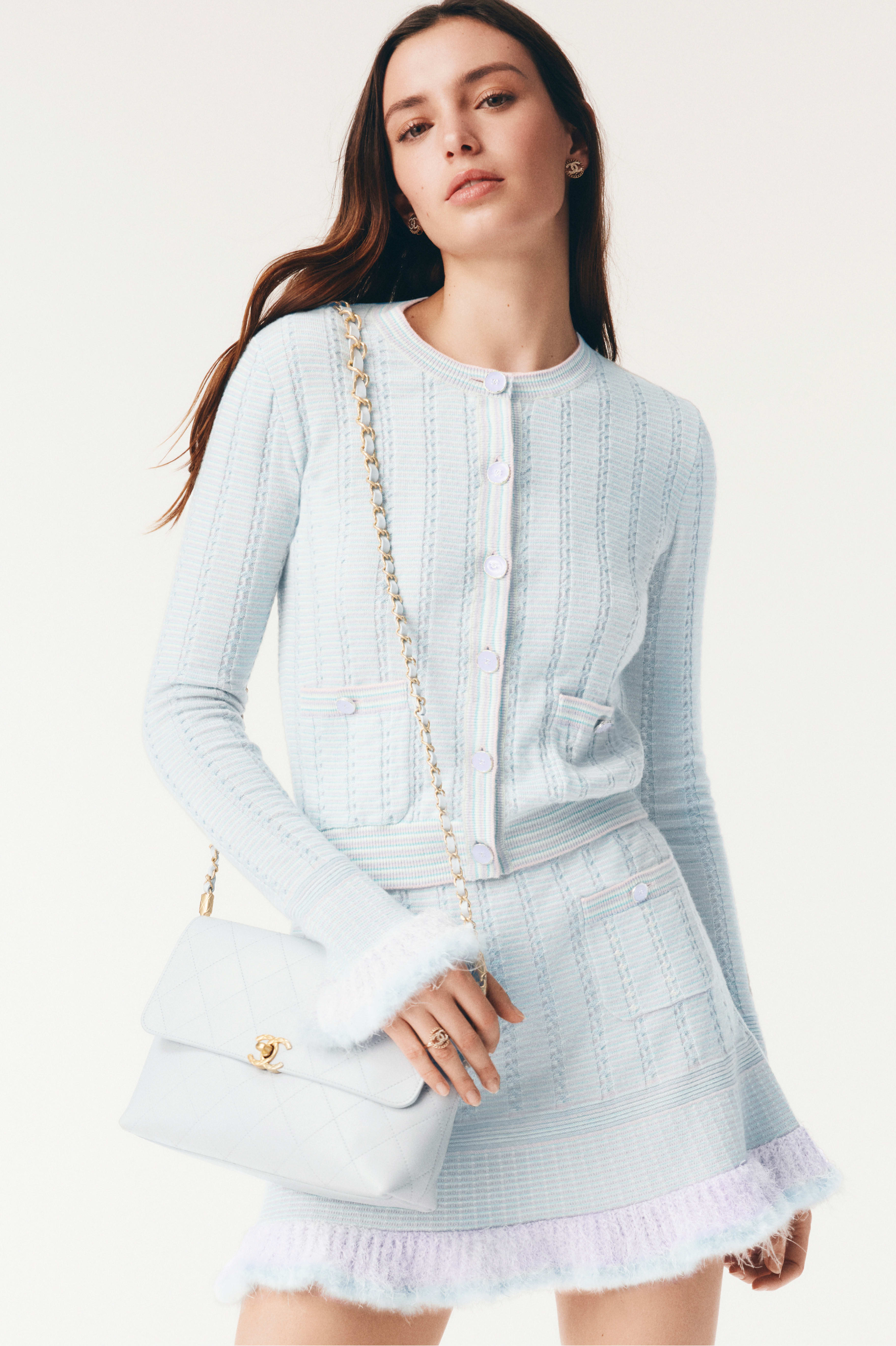 NIGO Chanel Cardigan Short Skirt Cashmere Cotton Feathers Light Blue Purple Pink #nigo334186