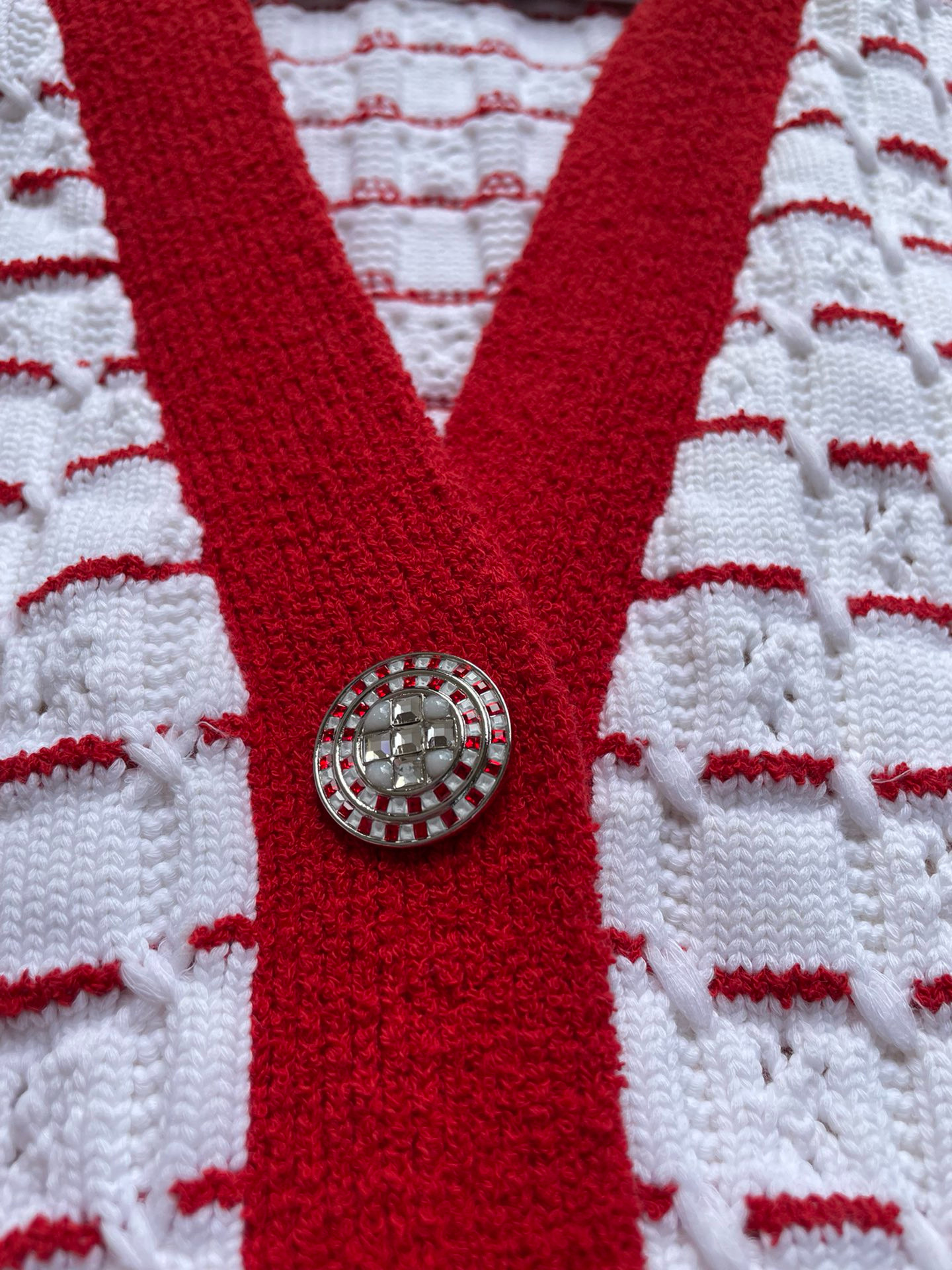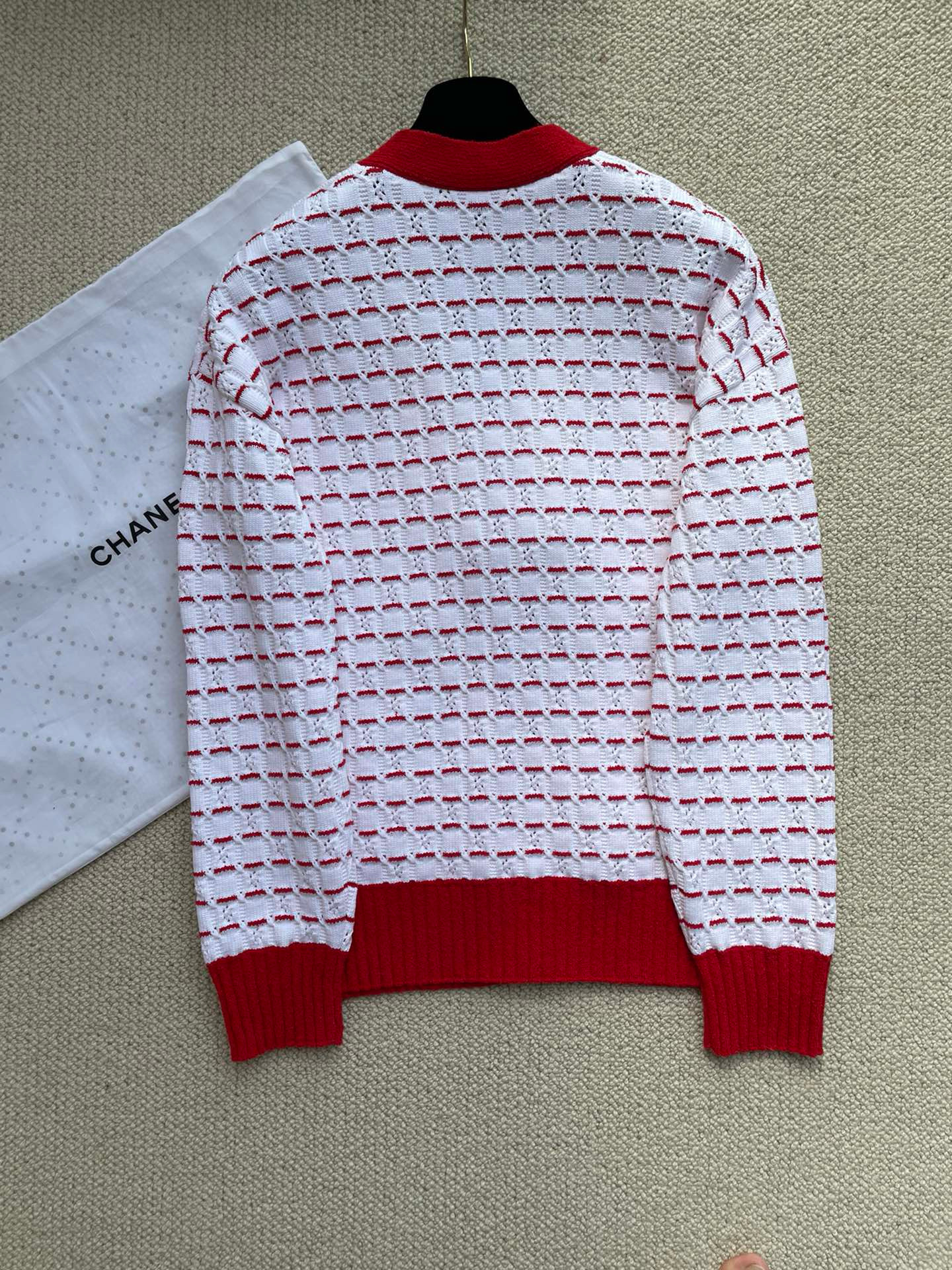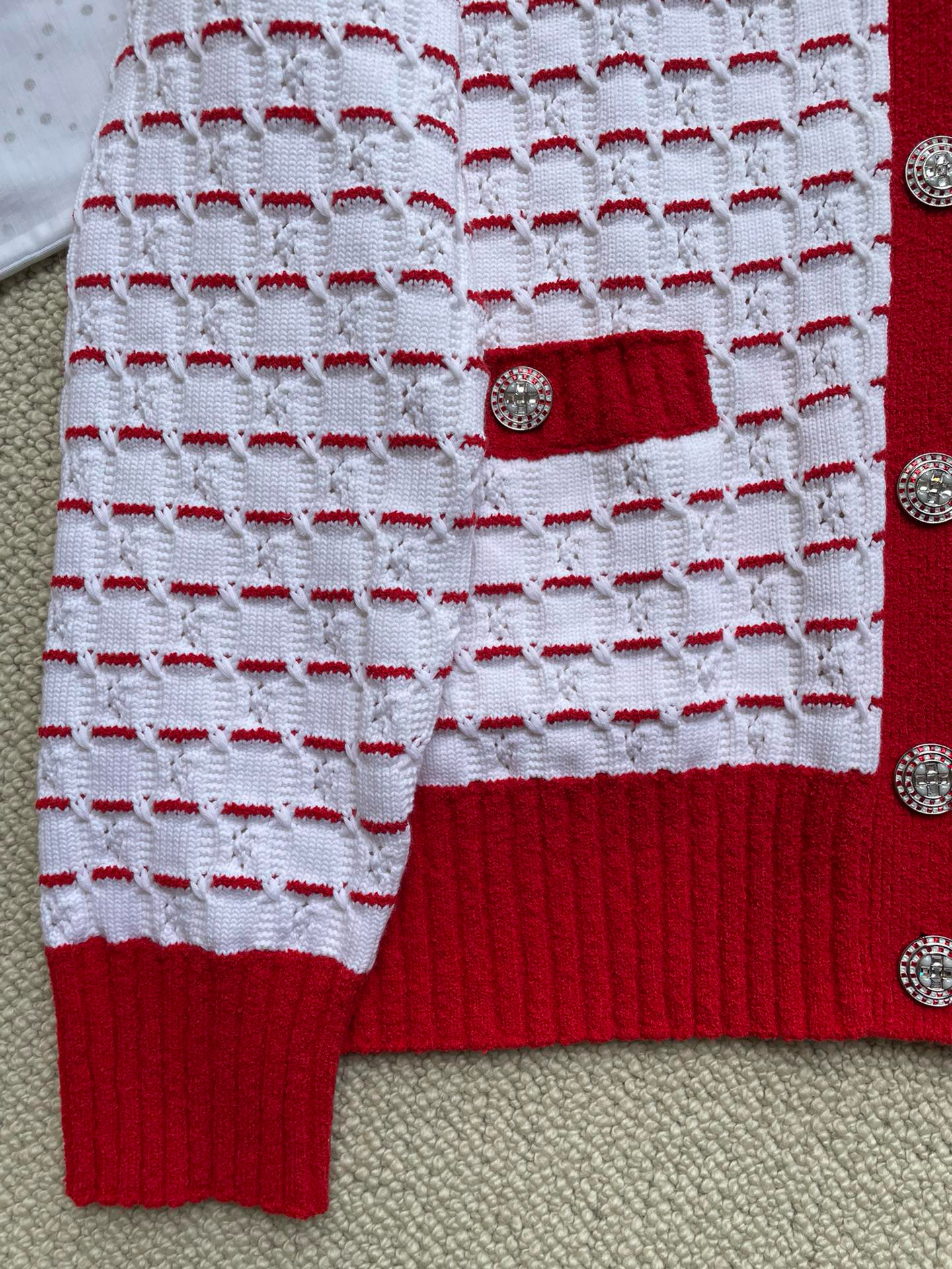 NIGO Chanel Women's Fall And Winter Red Striped V-neck Single-breasted Knitted Cardigan Elegant And Exquisite Fashion Casual Knitted Cardigan Jacket Ngvp #nigo2646