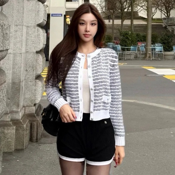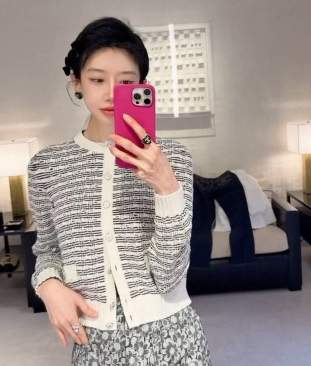 NIGO Chanel Women's Fall/Winter Fashion Casual Crew Neck Single Button Pure Cotton Yarn Long Sleeve Diamond Pattern Cardigan #nigo78937