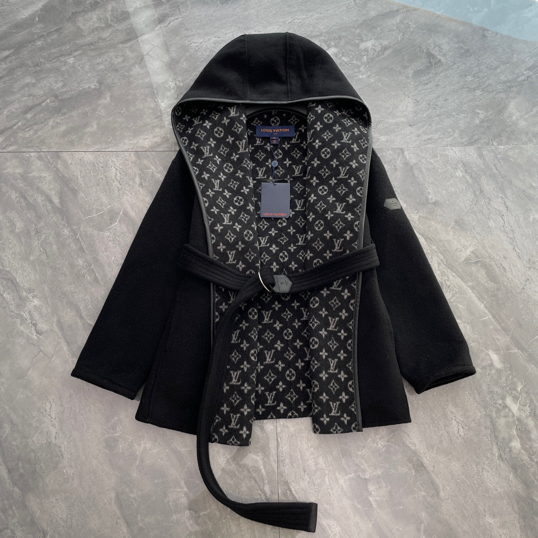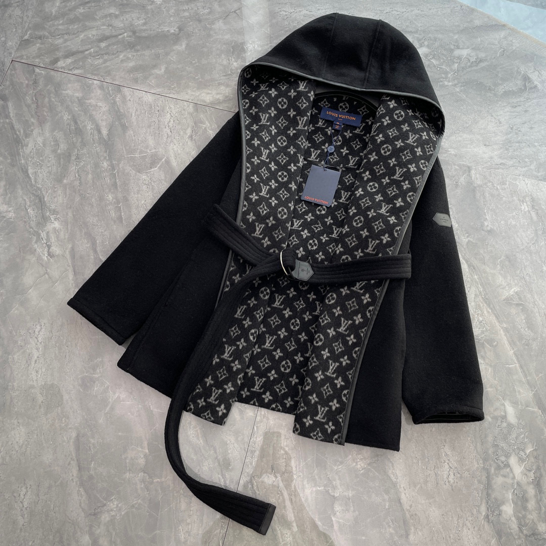 Louis Vuitton Wool Wrap Hooded Coat Jacket #nigo96576