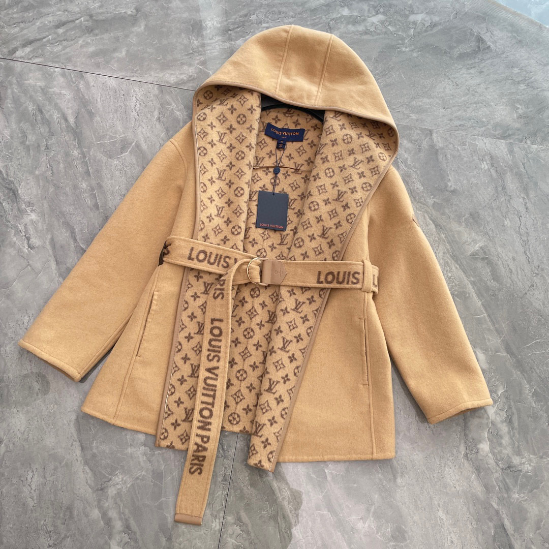Louis Vuitton Wool Wrap Hooded Coat Jacket #nigo96578