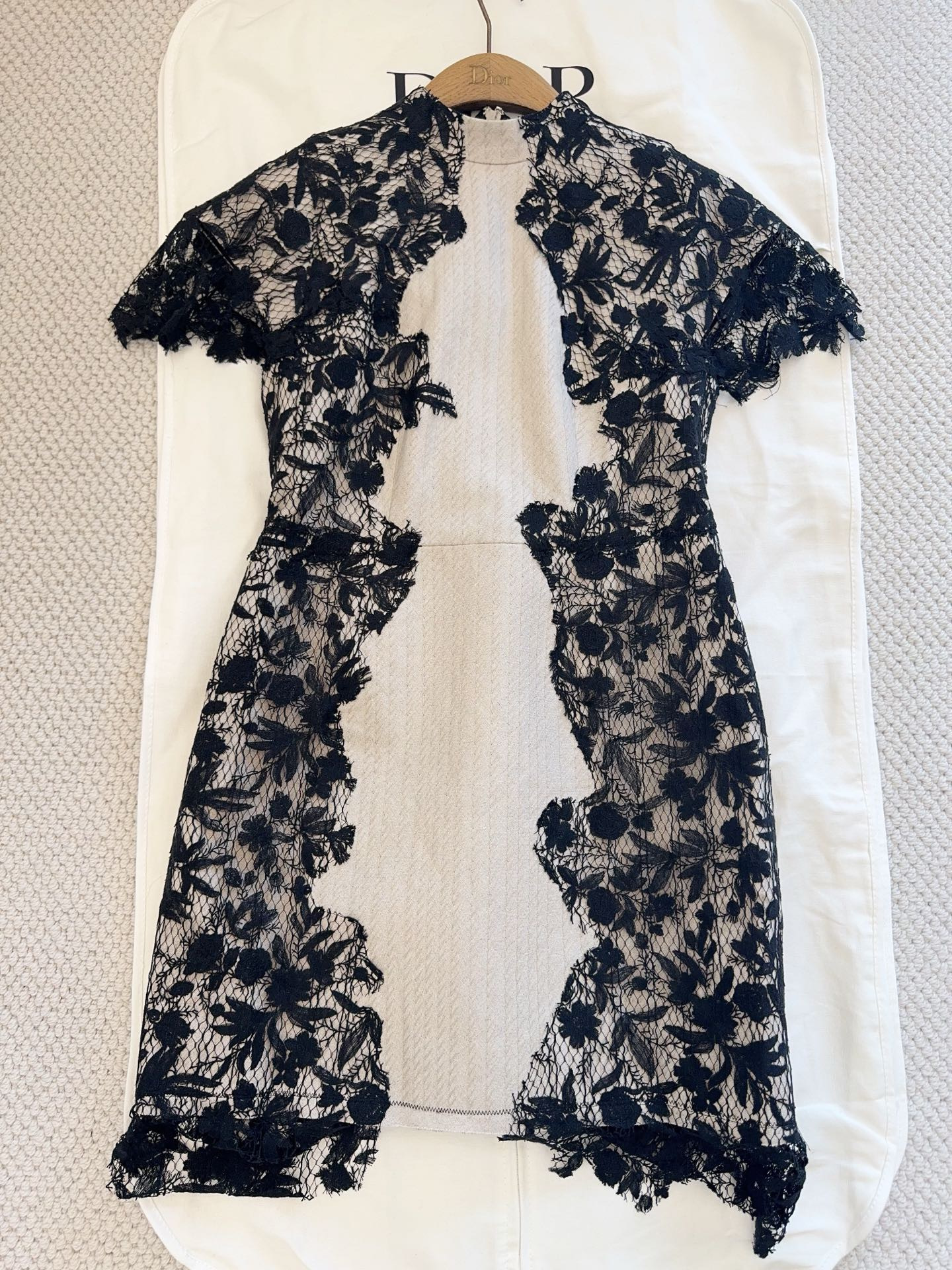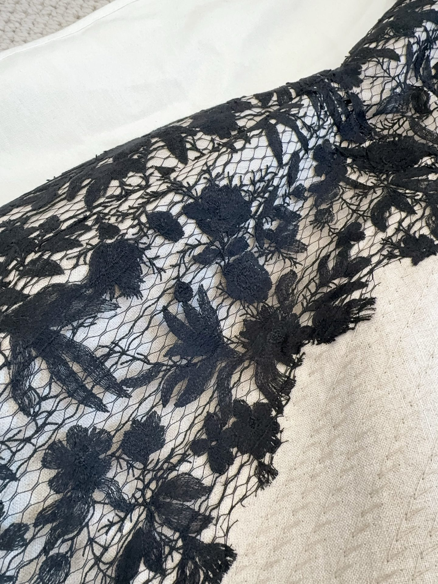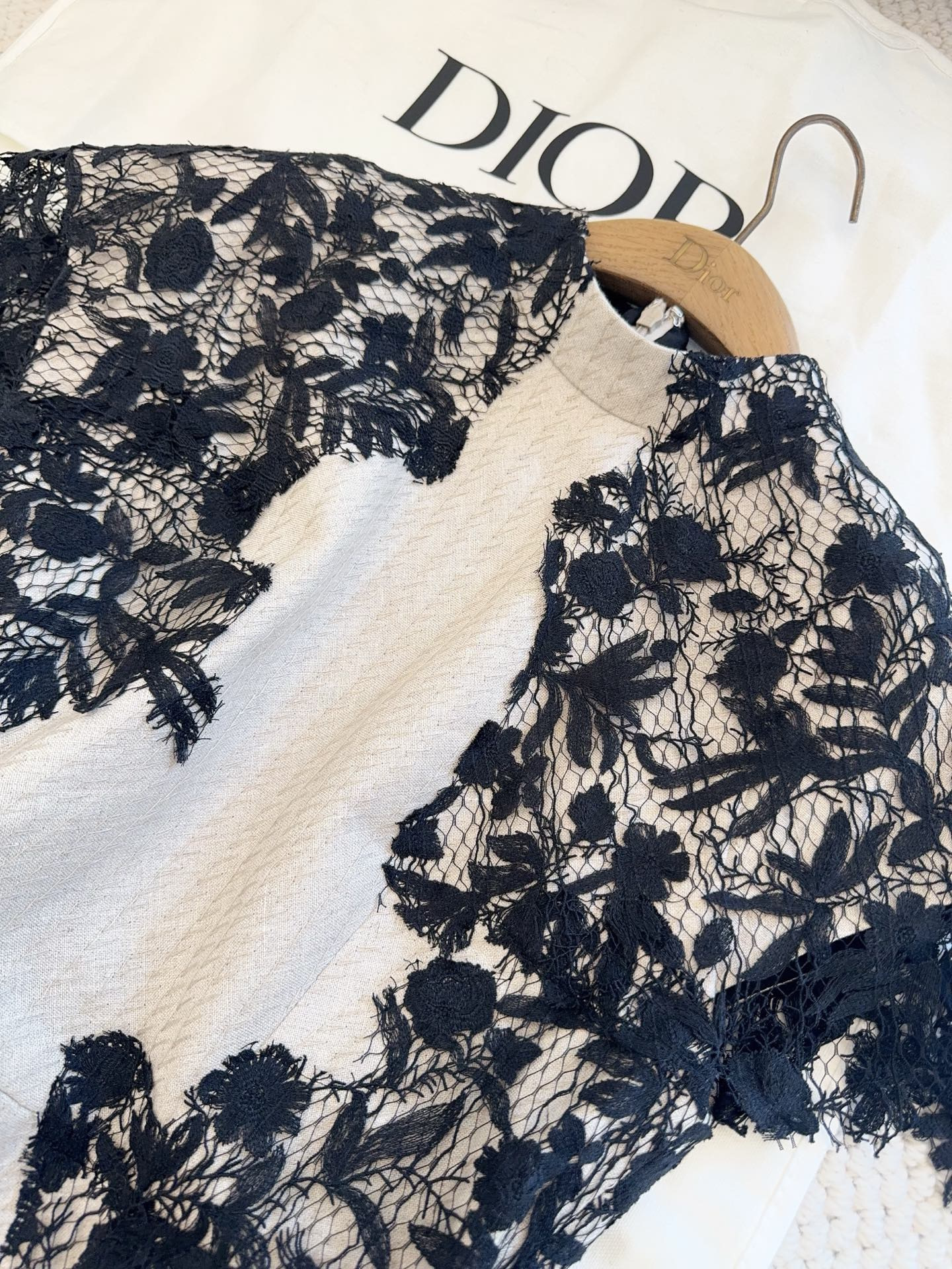 NIGO Dior Short Flared Dress Beige Horsehair-Effect Linen Blend and Black Lace #nigo333525