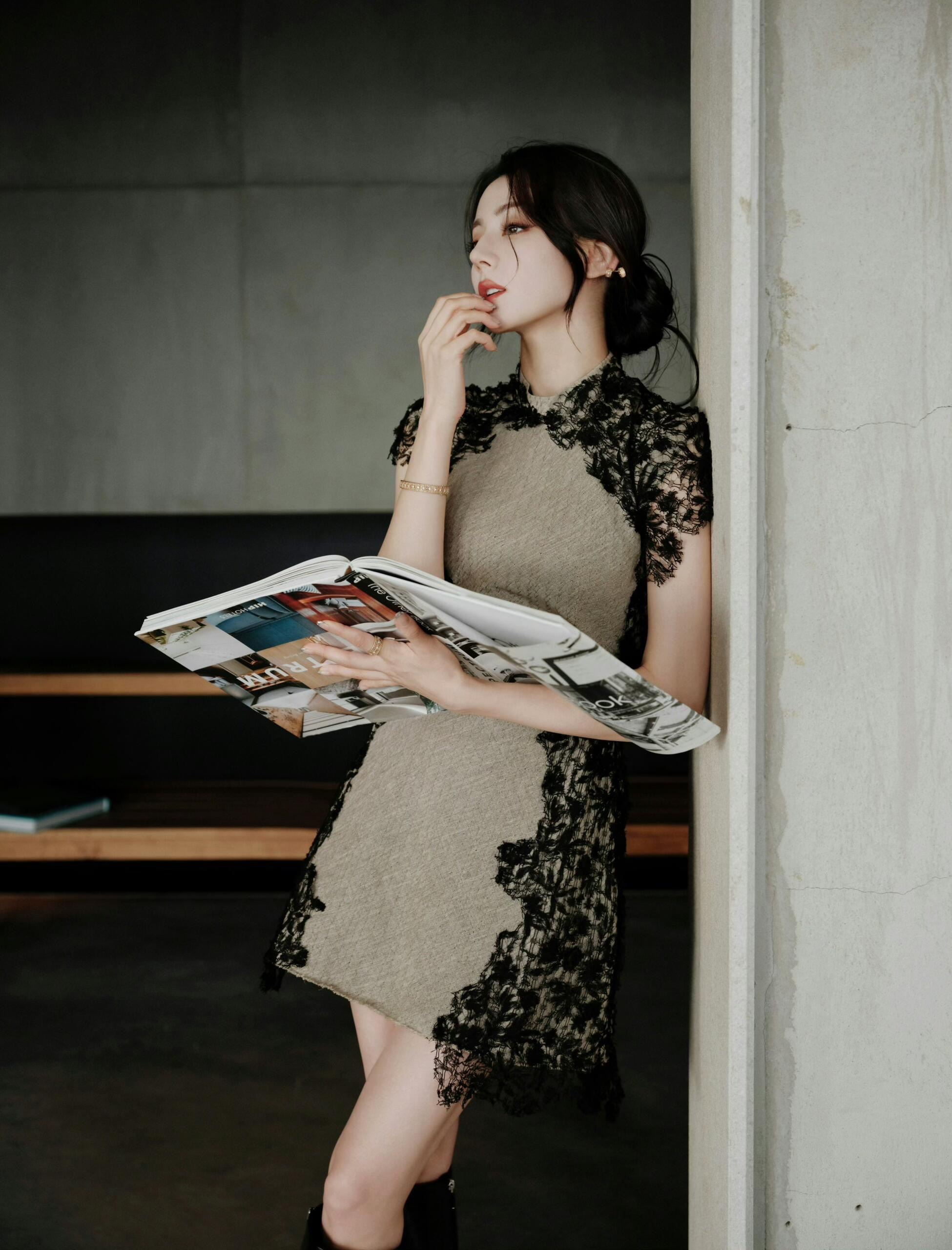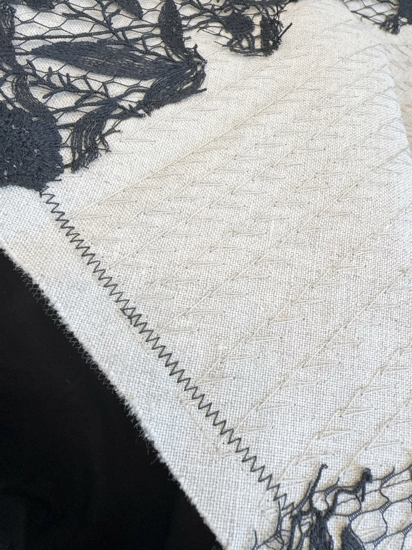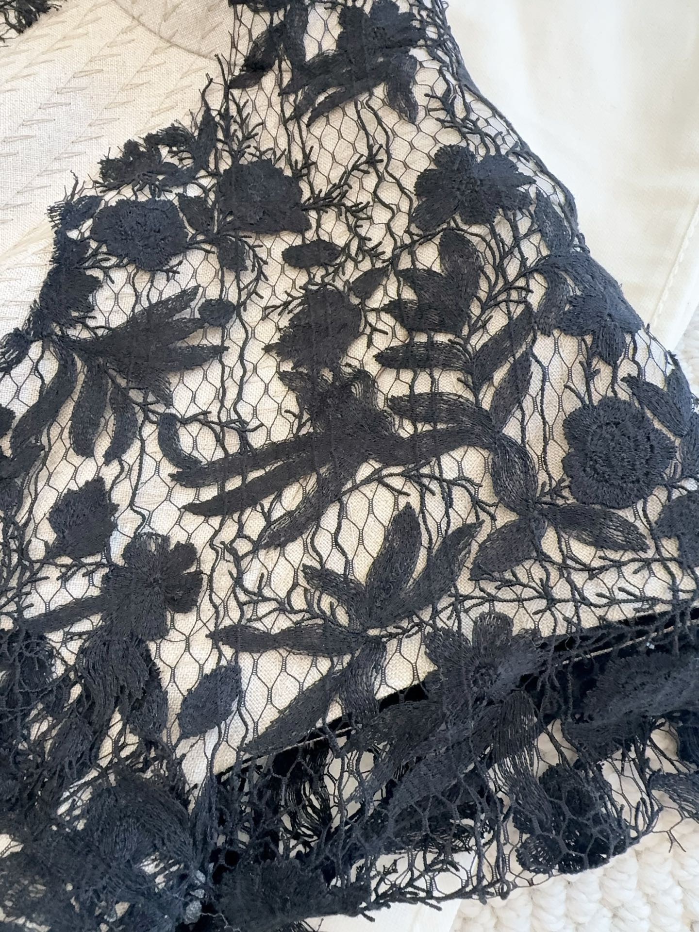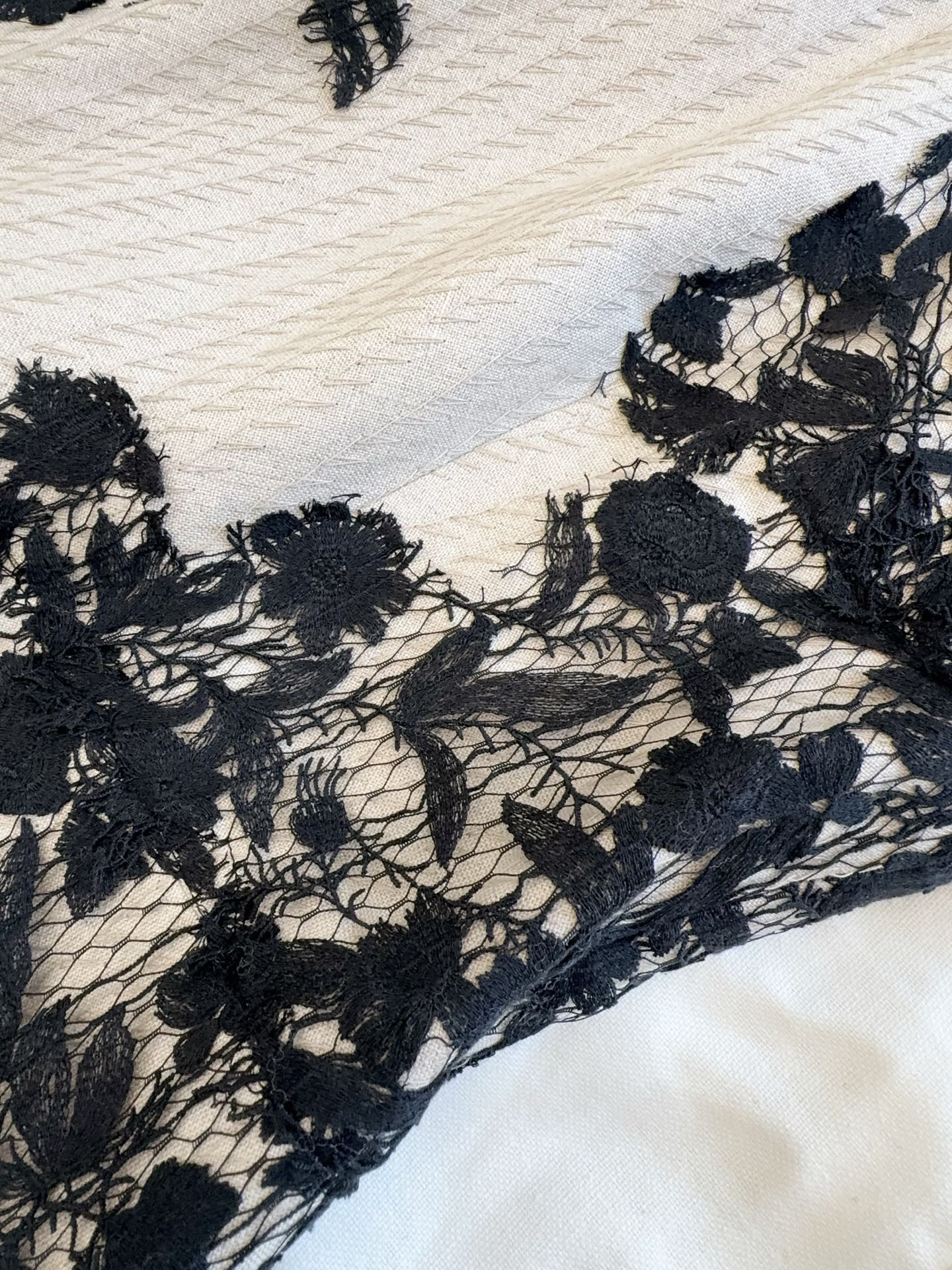 NIGO Dior Short Flared Dress Beige Horsehair-Effect Linen Blend and Black Lace #nigo333525