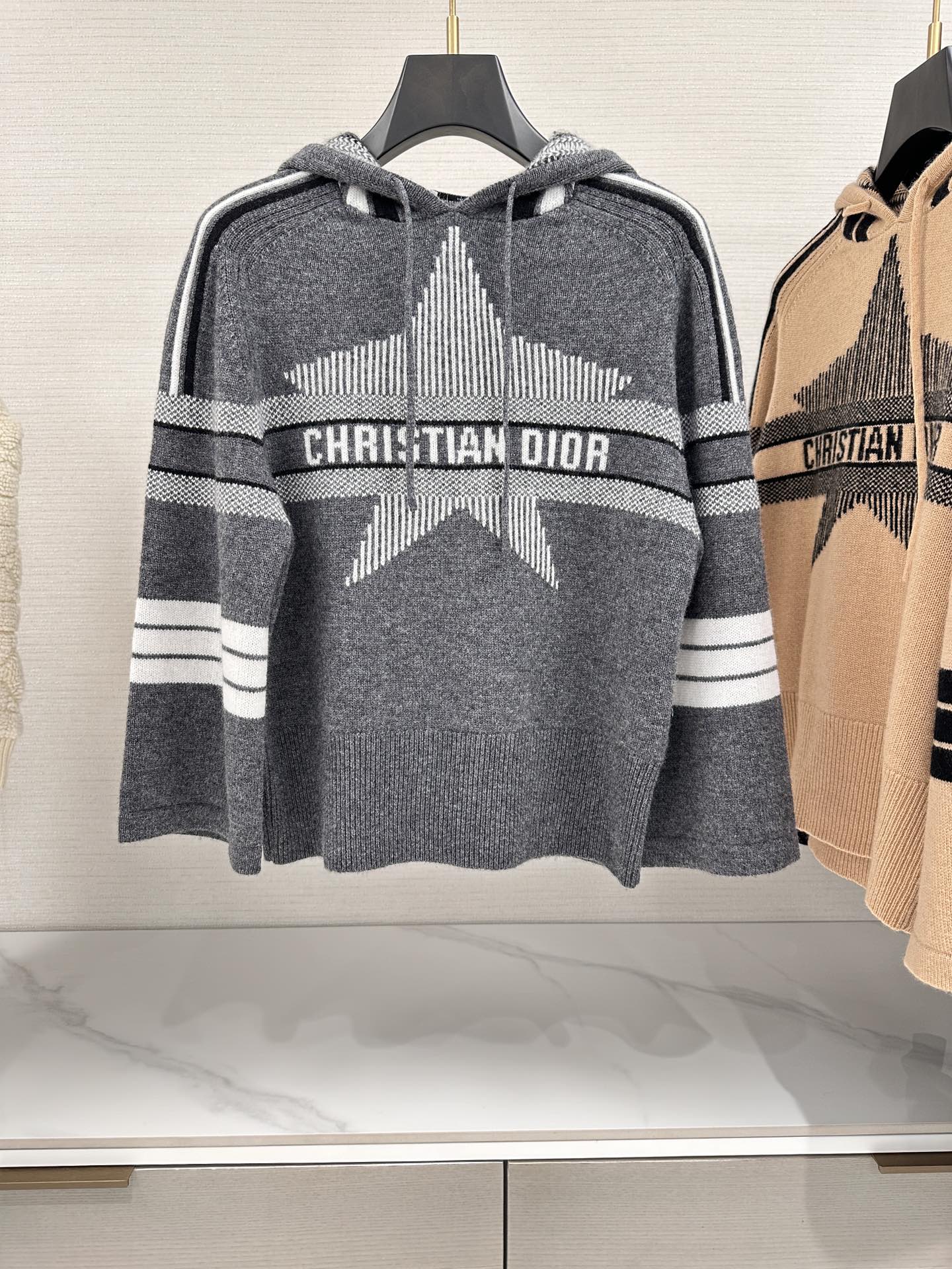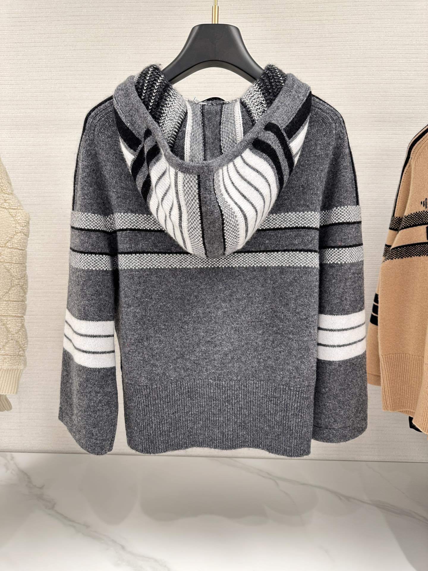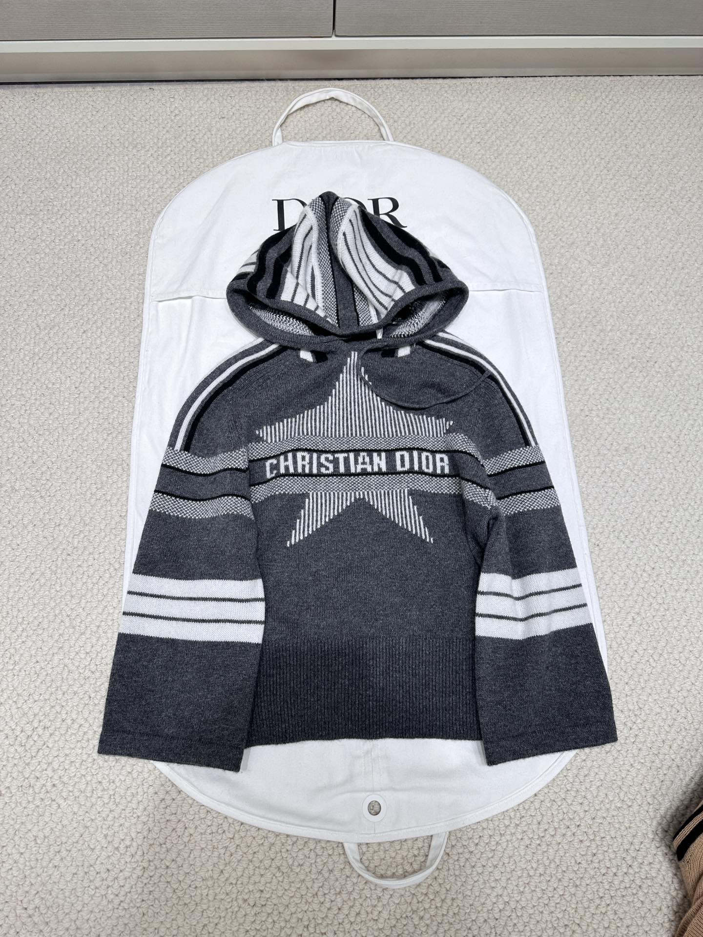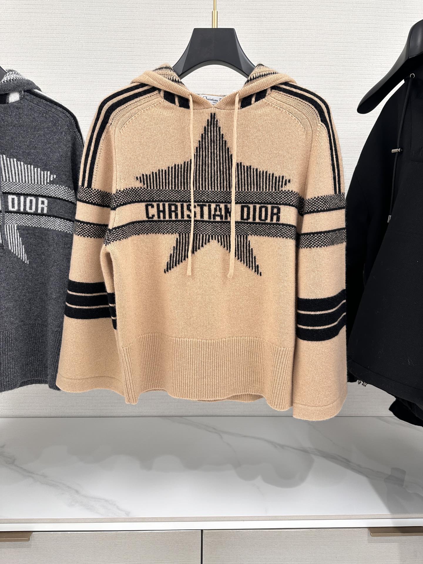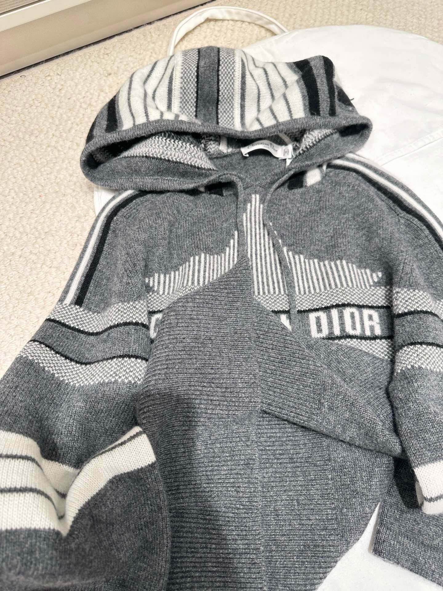 NIGO Dior Women's Spring and Autumn Letter Printed Drawstring Hooded Seven Sleeve Cashmere Sweater #nigo73847
