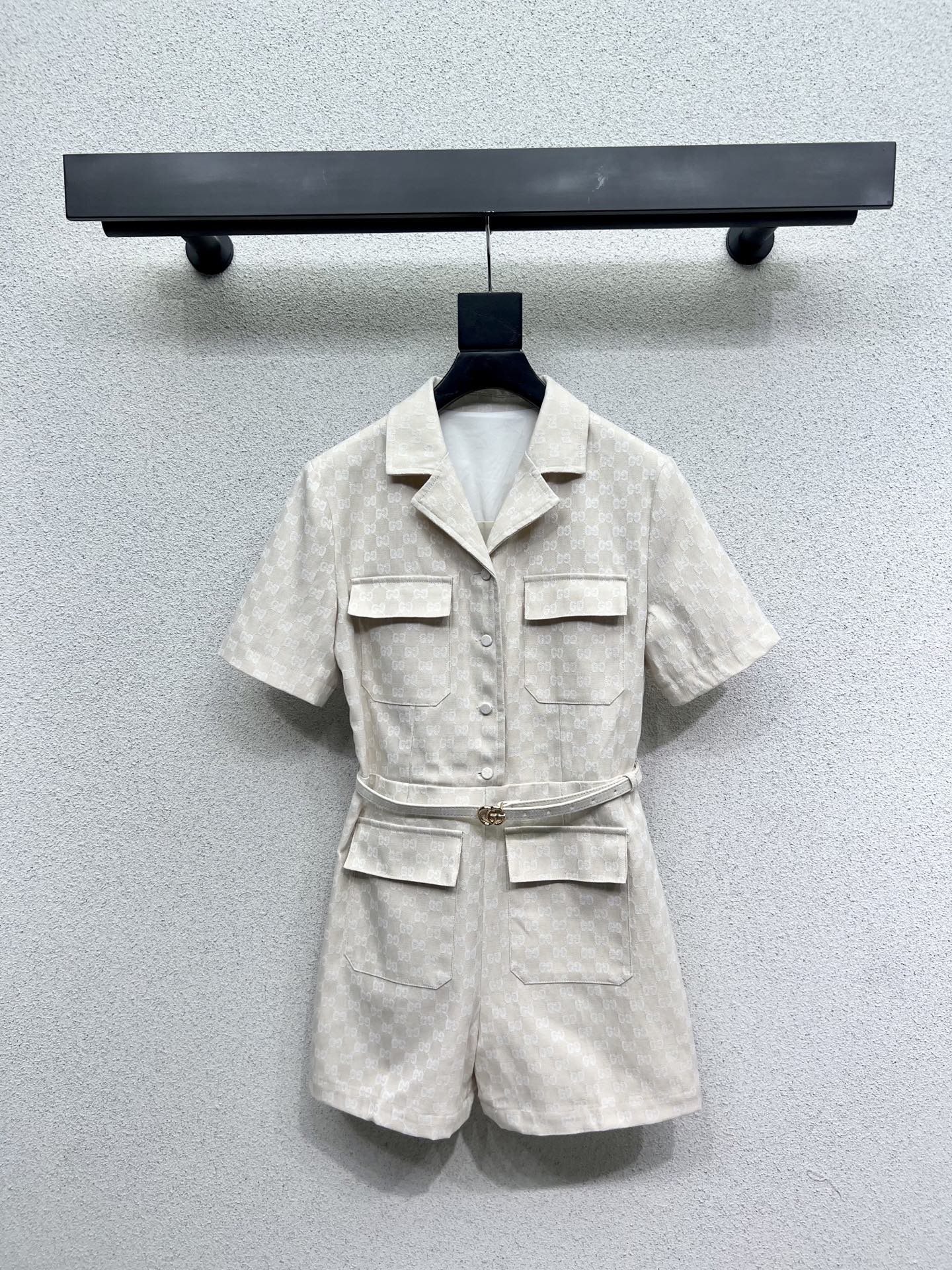 NIGO Gucci Women's Spring/Summer Monogram Printed Solid Colour Short Sleeve Single Breasted Jumpsuit #nigo76664