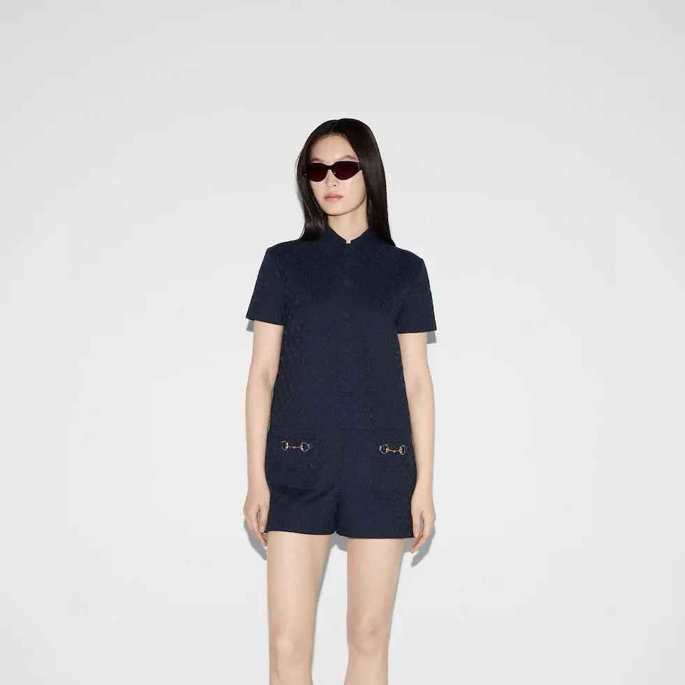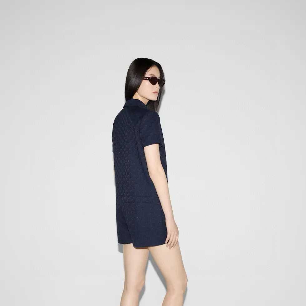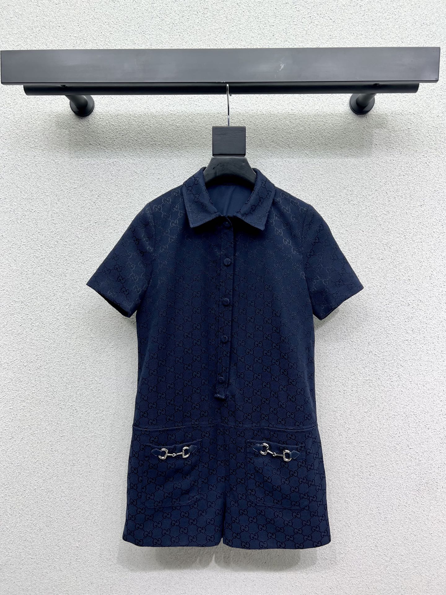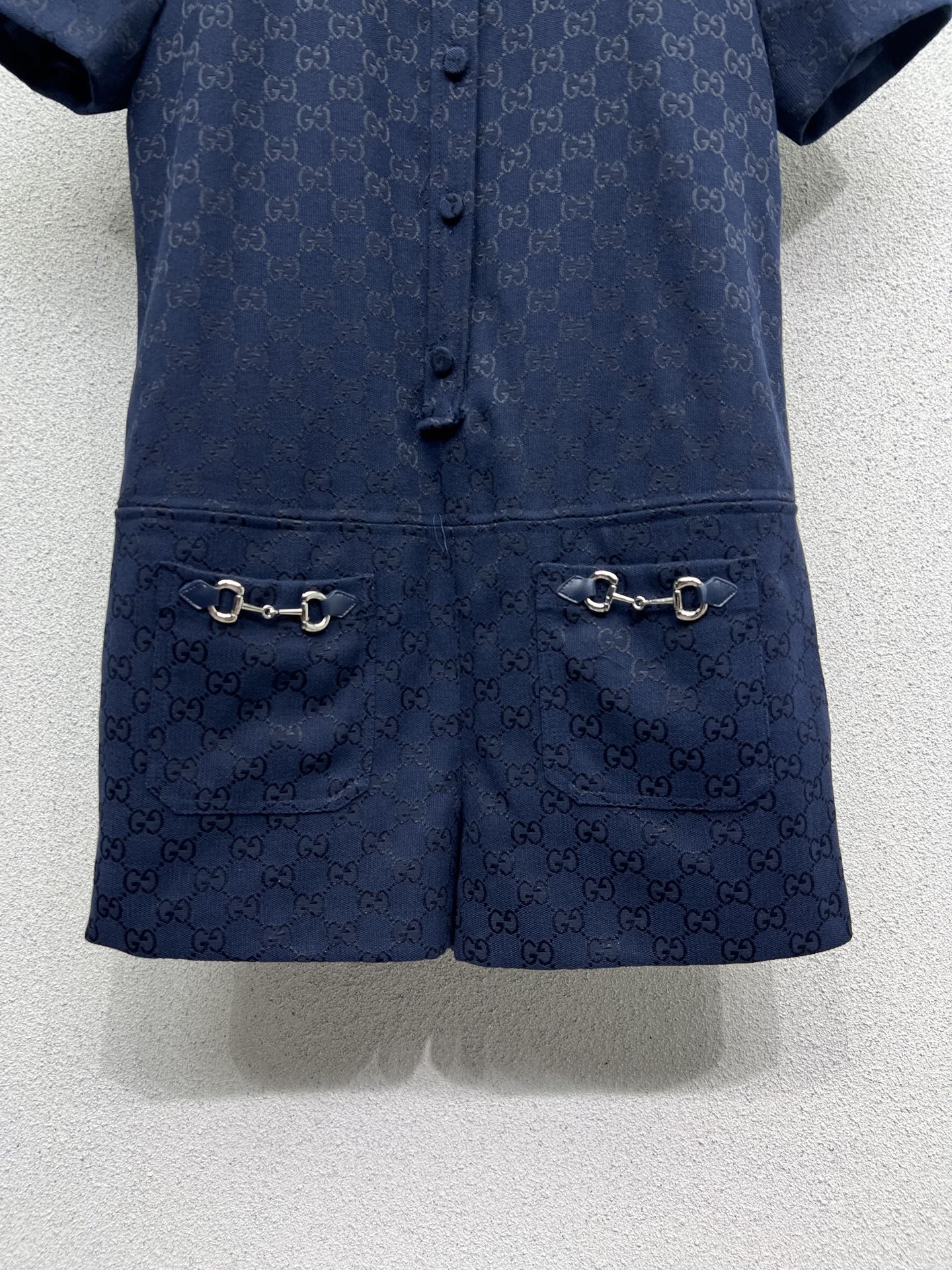 NIGO Gucci Women's Spring/Summer Monogram Printed Solid Colour Short Sleeve Single Breasted Jumpsuit #nigo76664