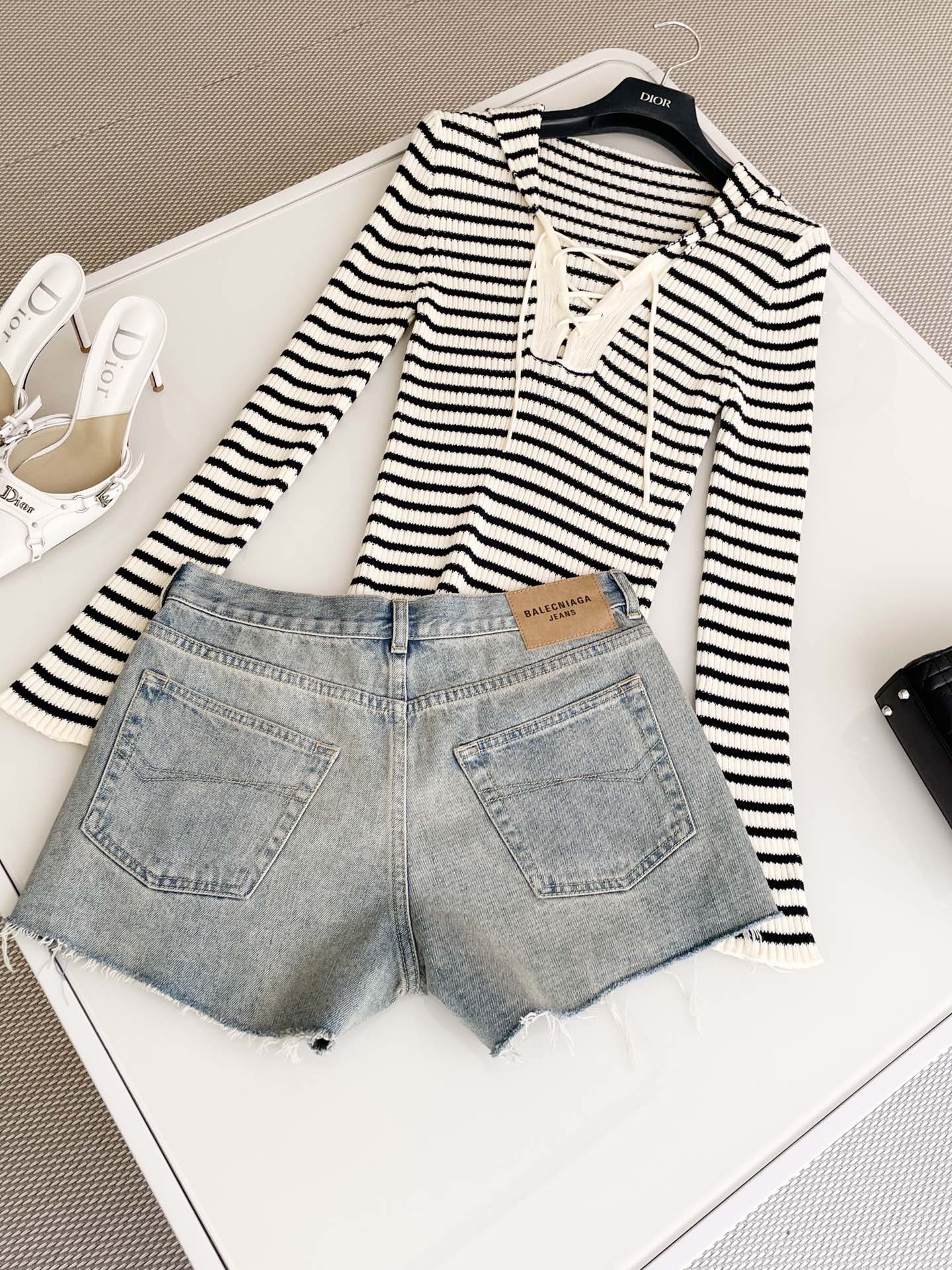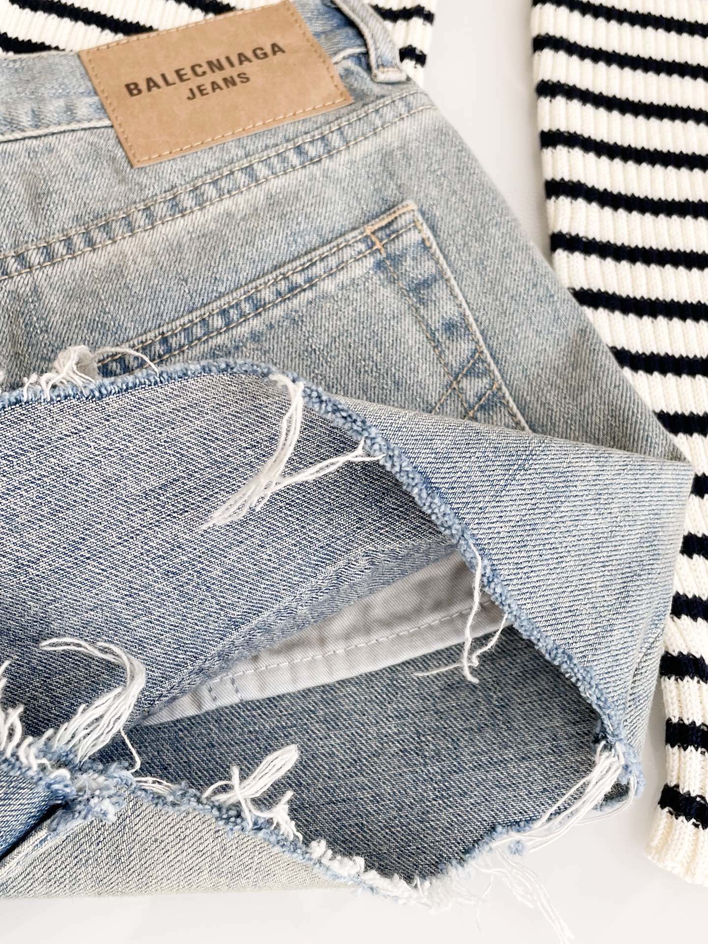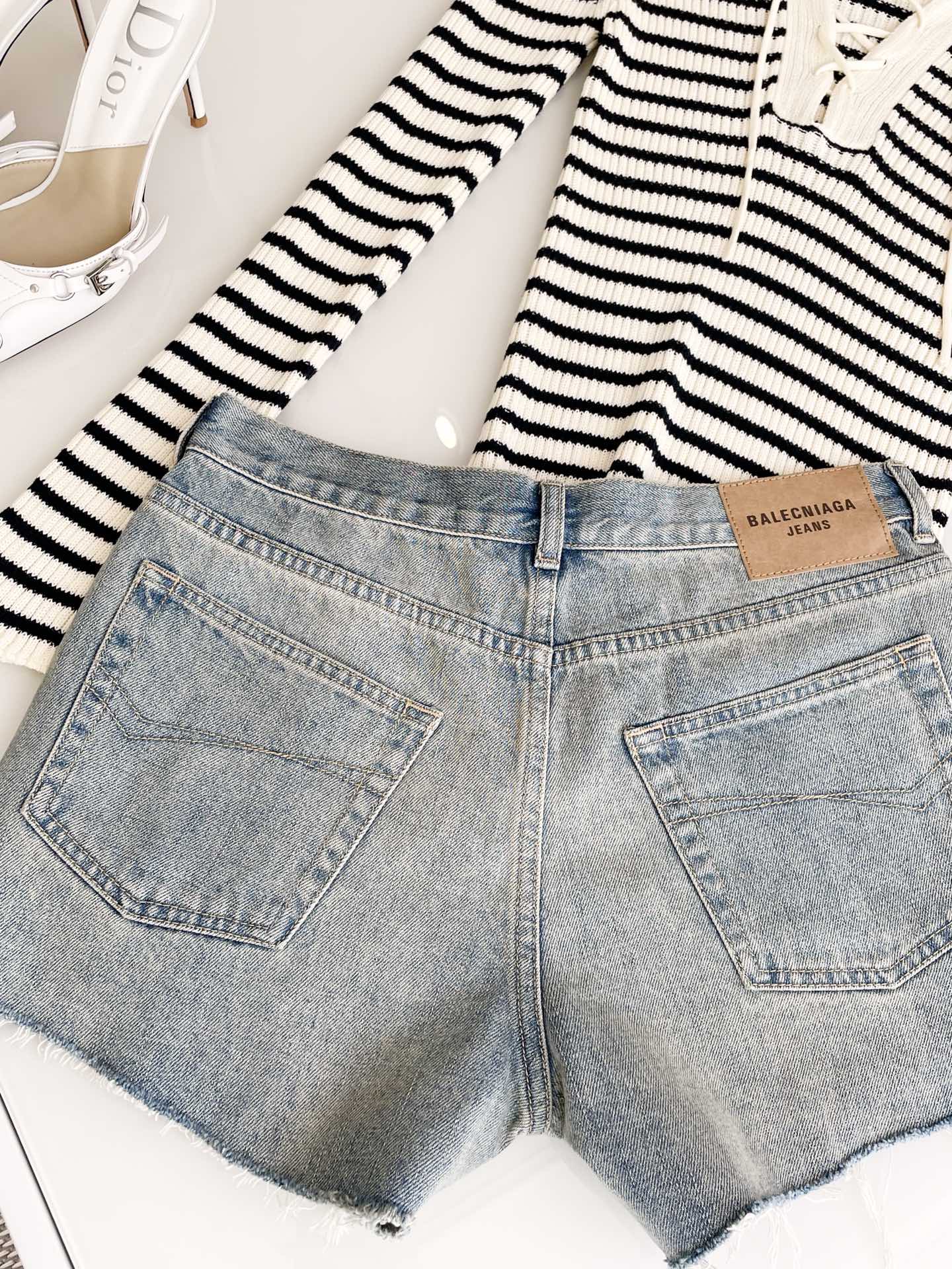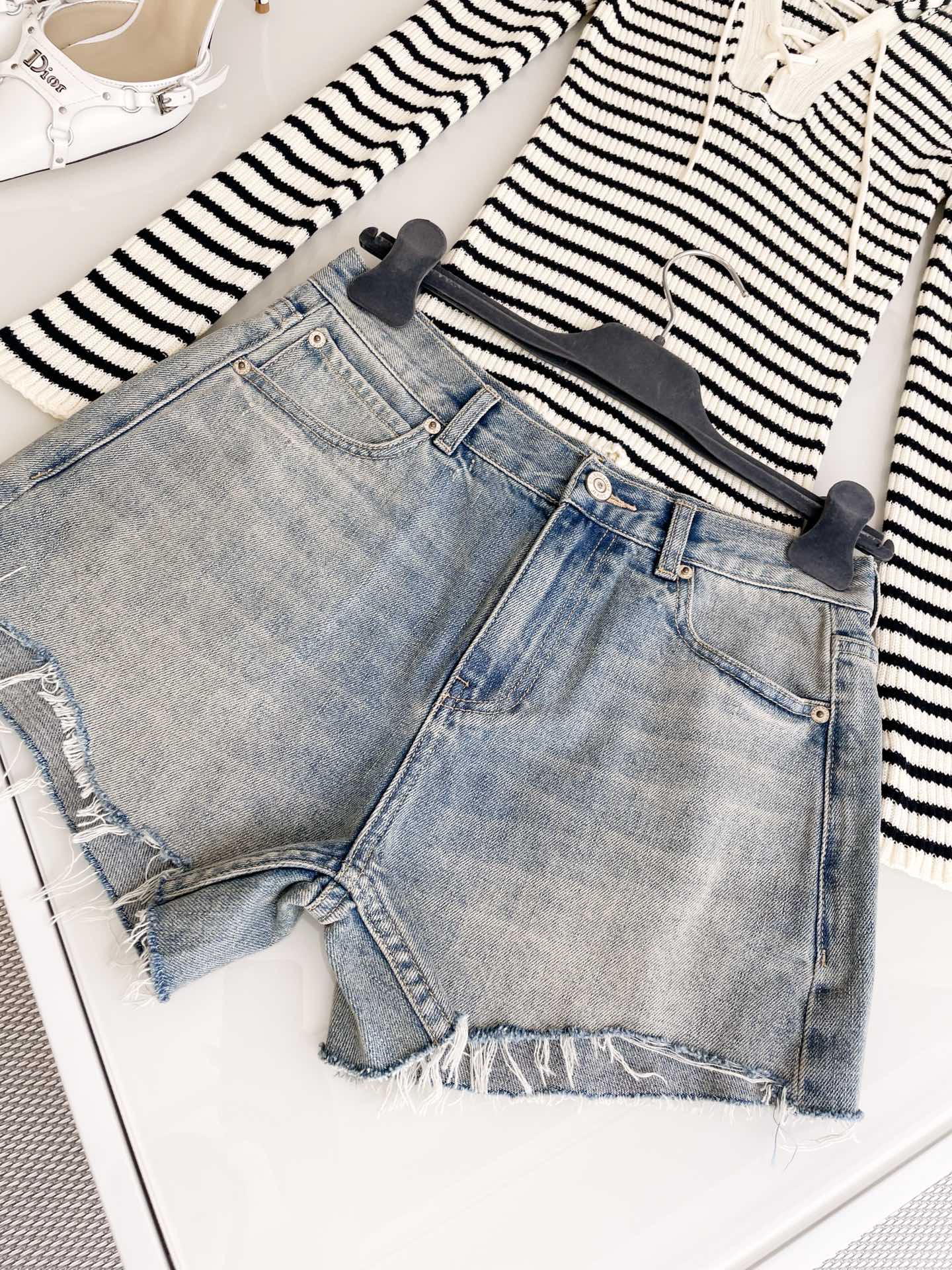 NIGO Balenciaga Women's Summer Washed Raw Edge Distressed High Street Blue Mid Waist Denim Mini Shorts Ngvp #nigo8826