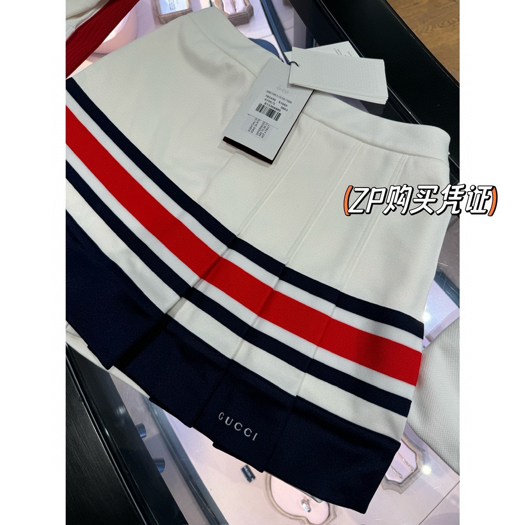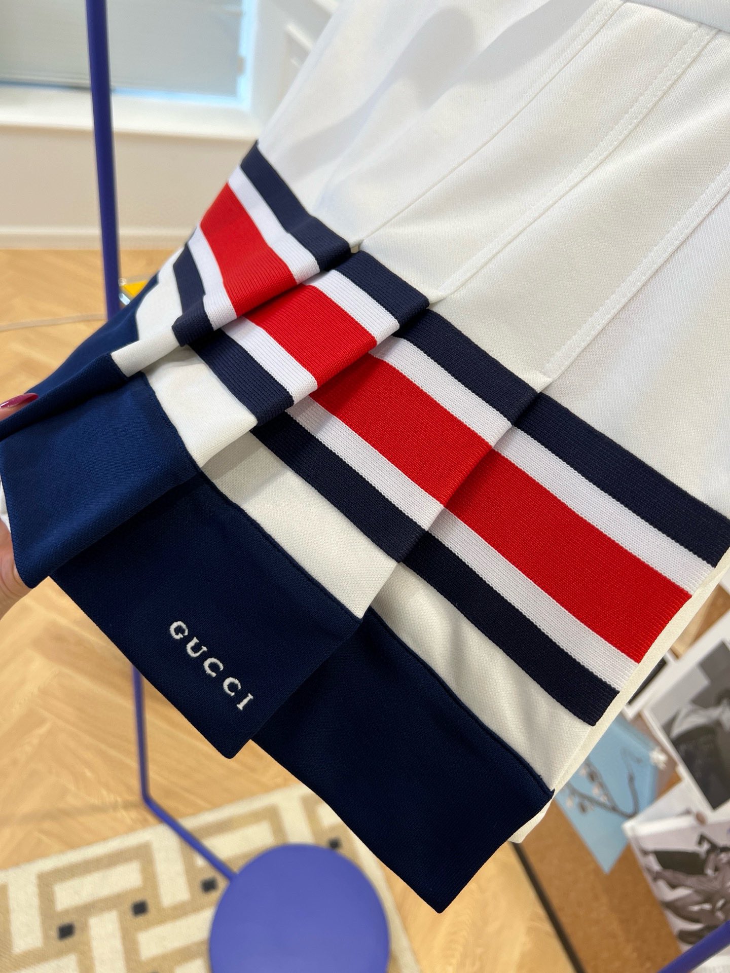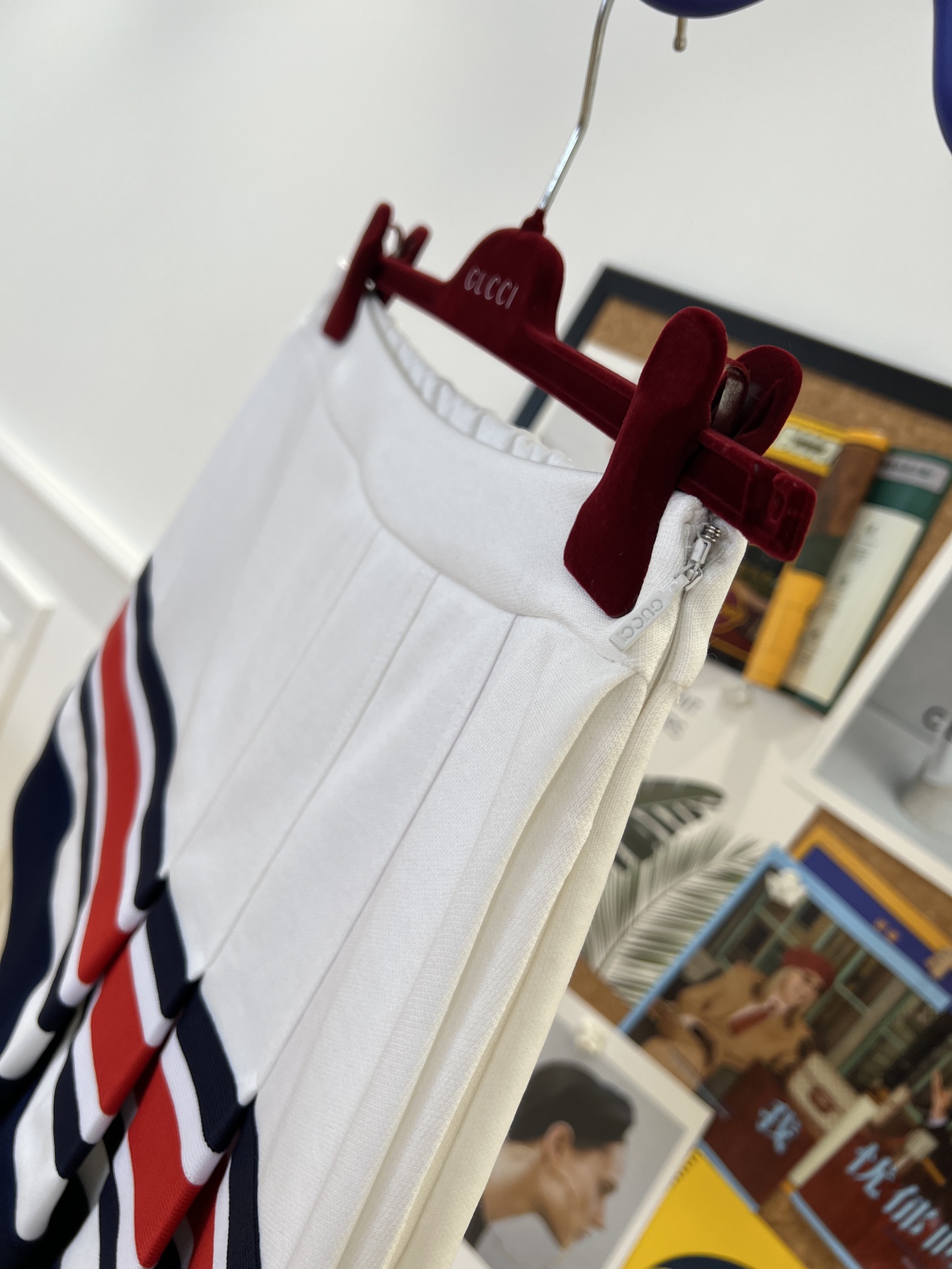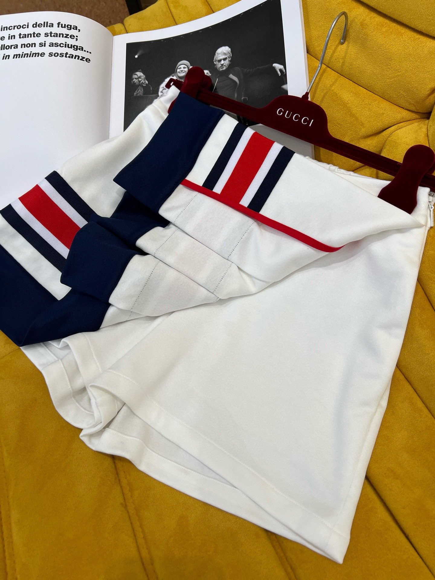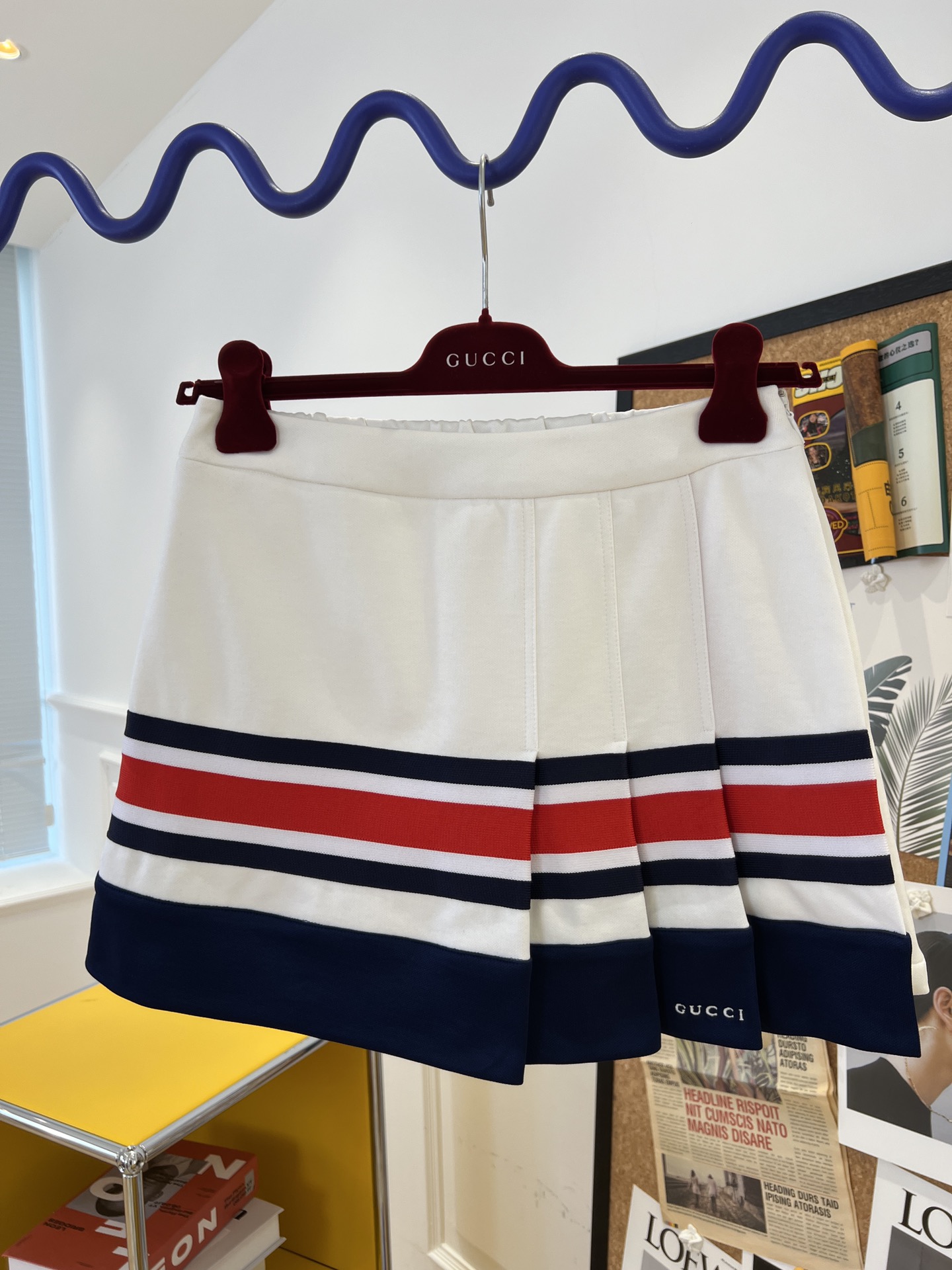 NIGO Gucci Women's Spring And Summer Fashion Casual Logo Embroidery Red And Blue Stripes College Style Zipper Pleated Skirt Pants Shorts #nigo71374