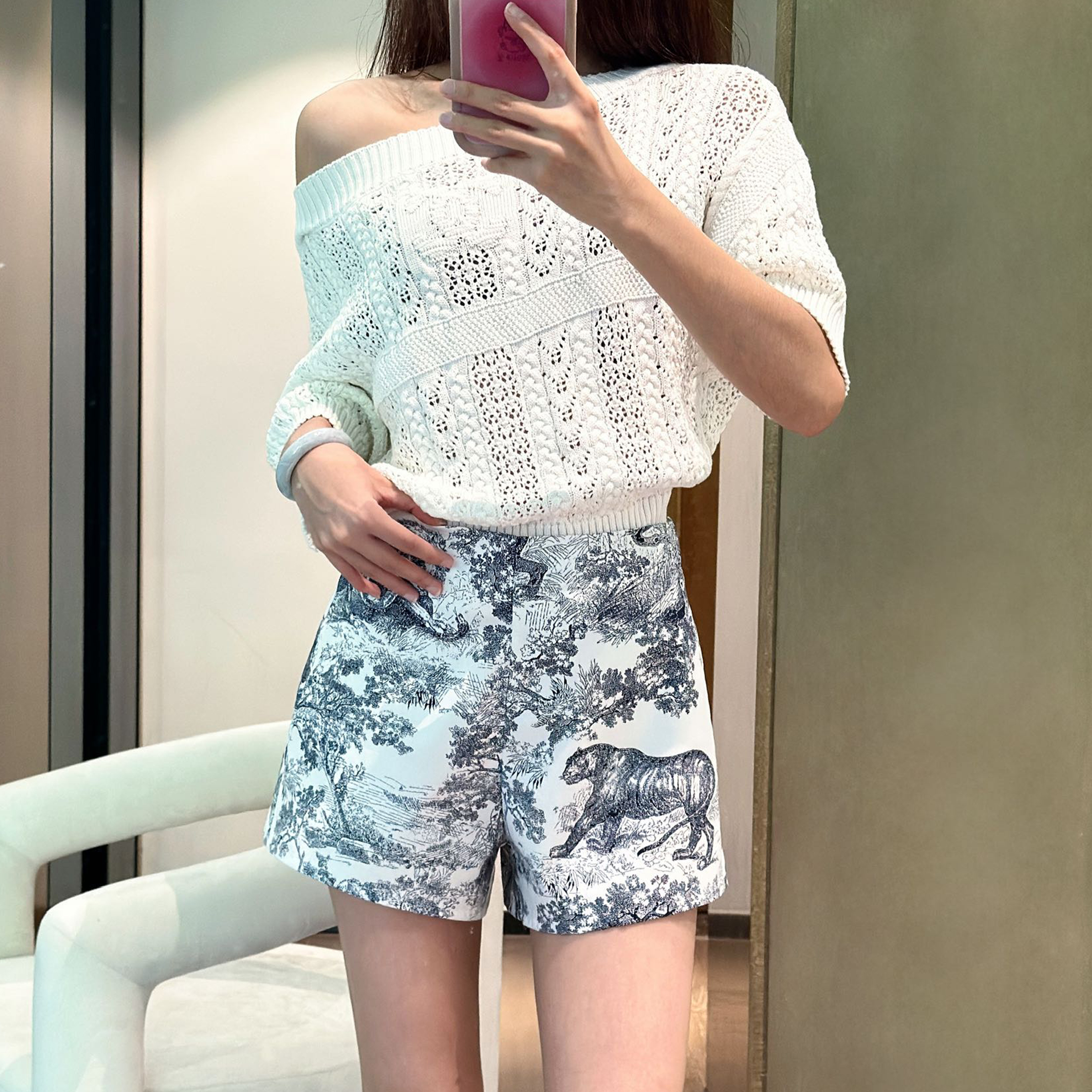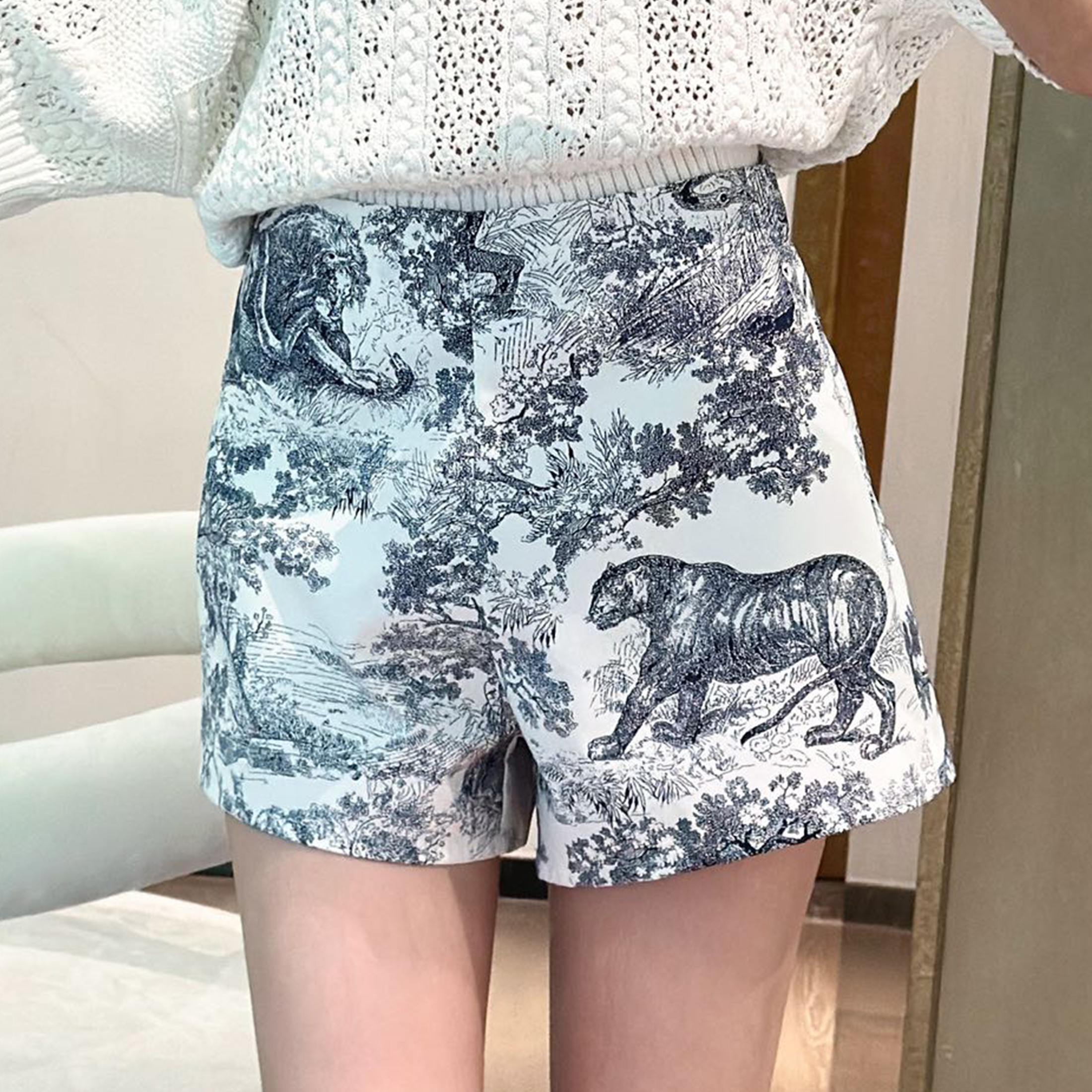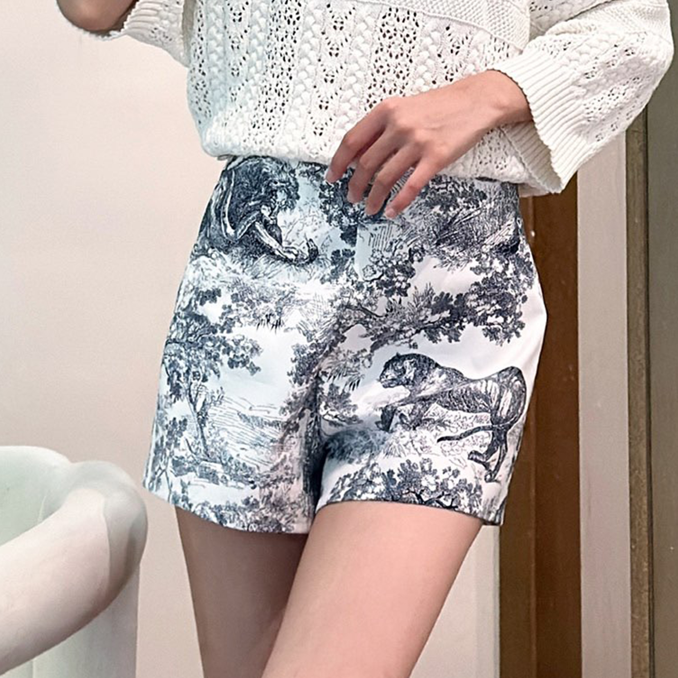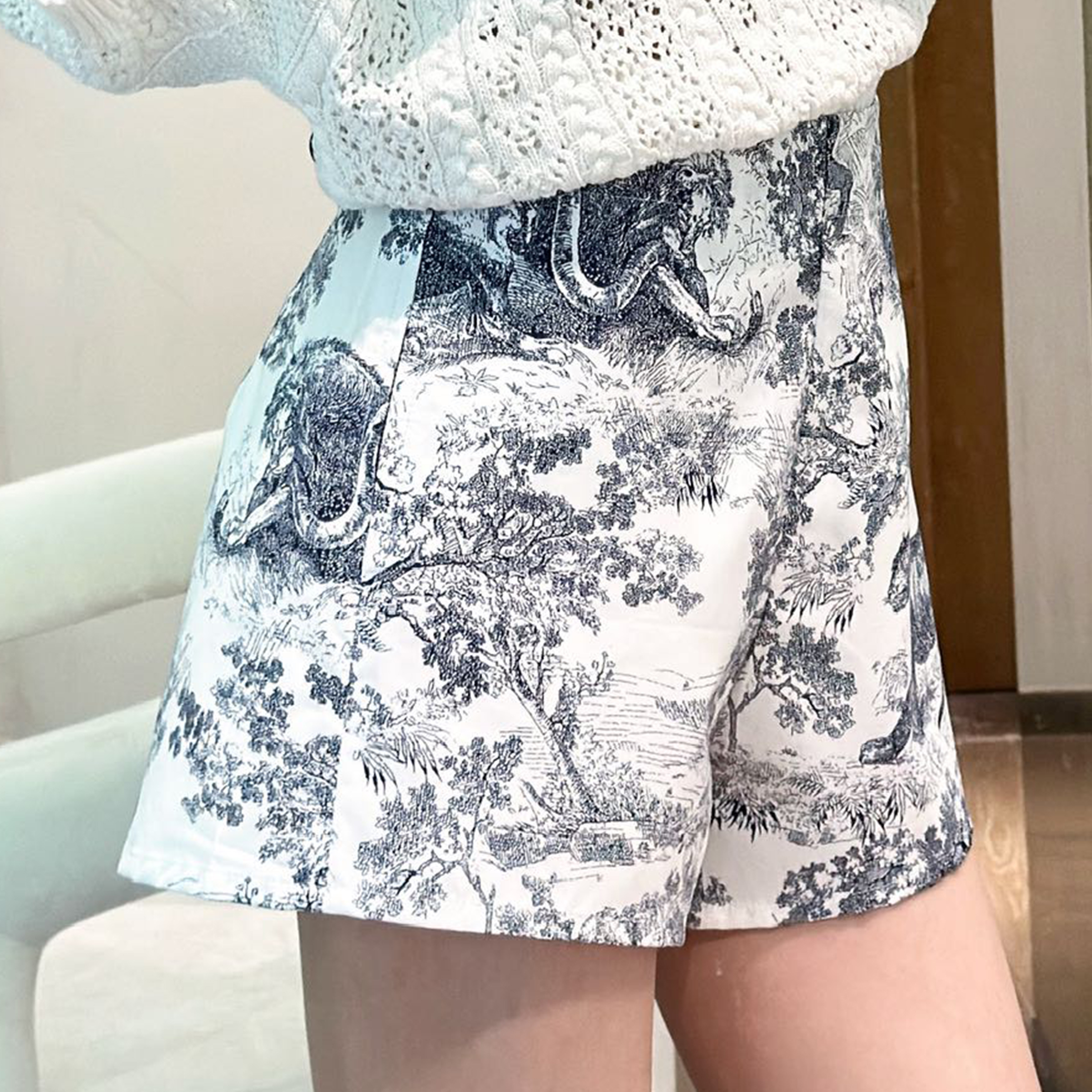 NIGO Dior Women's Summer Colorblocking Cotton Pattern Print Button Dioriviera Mid Waist Fitted Shorts Ngvp #nigo8685