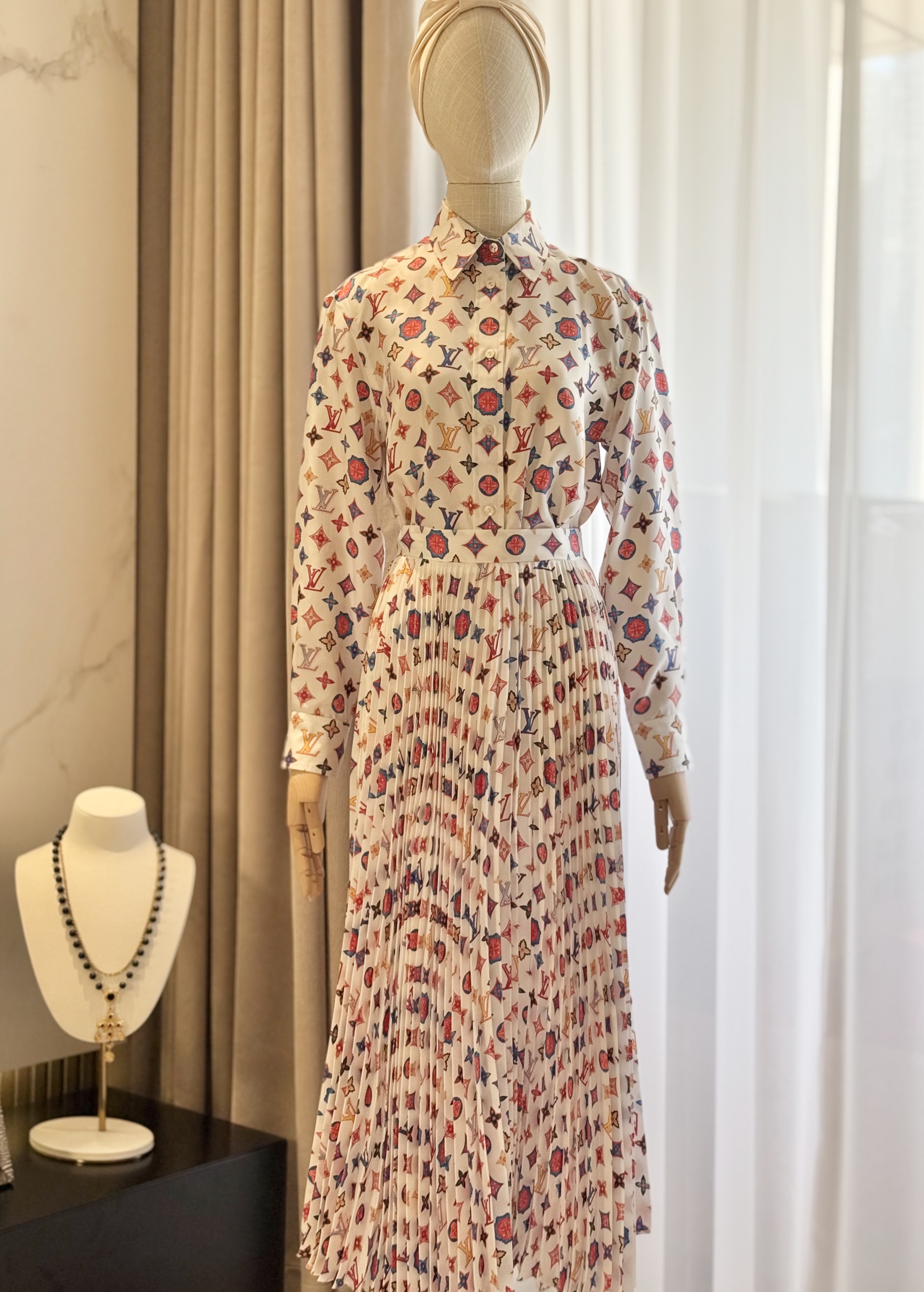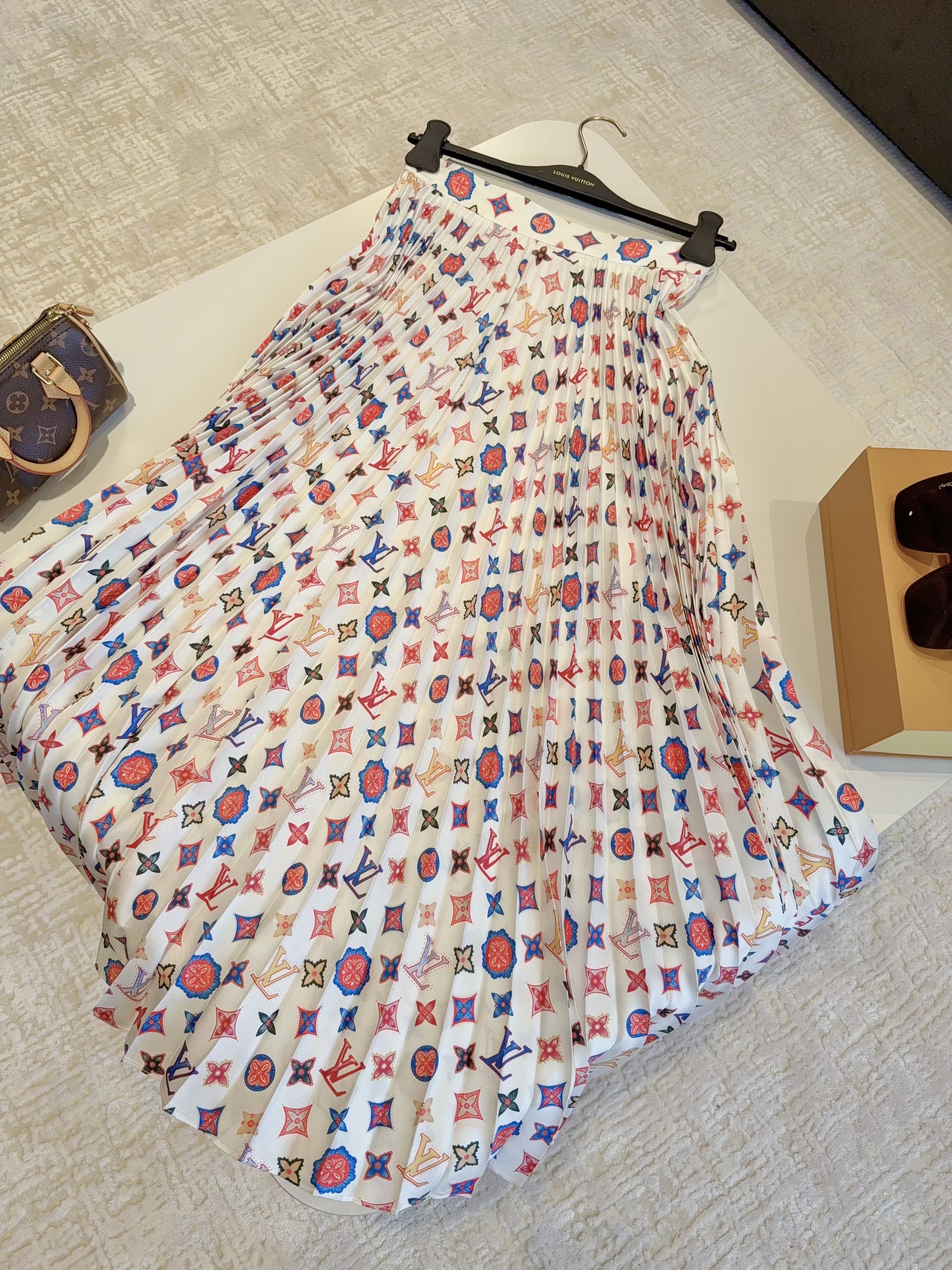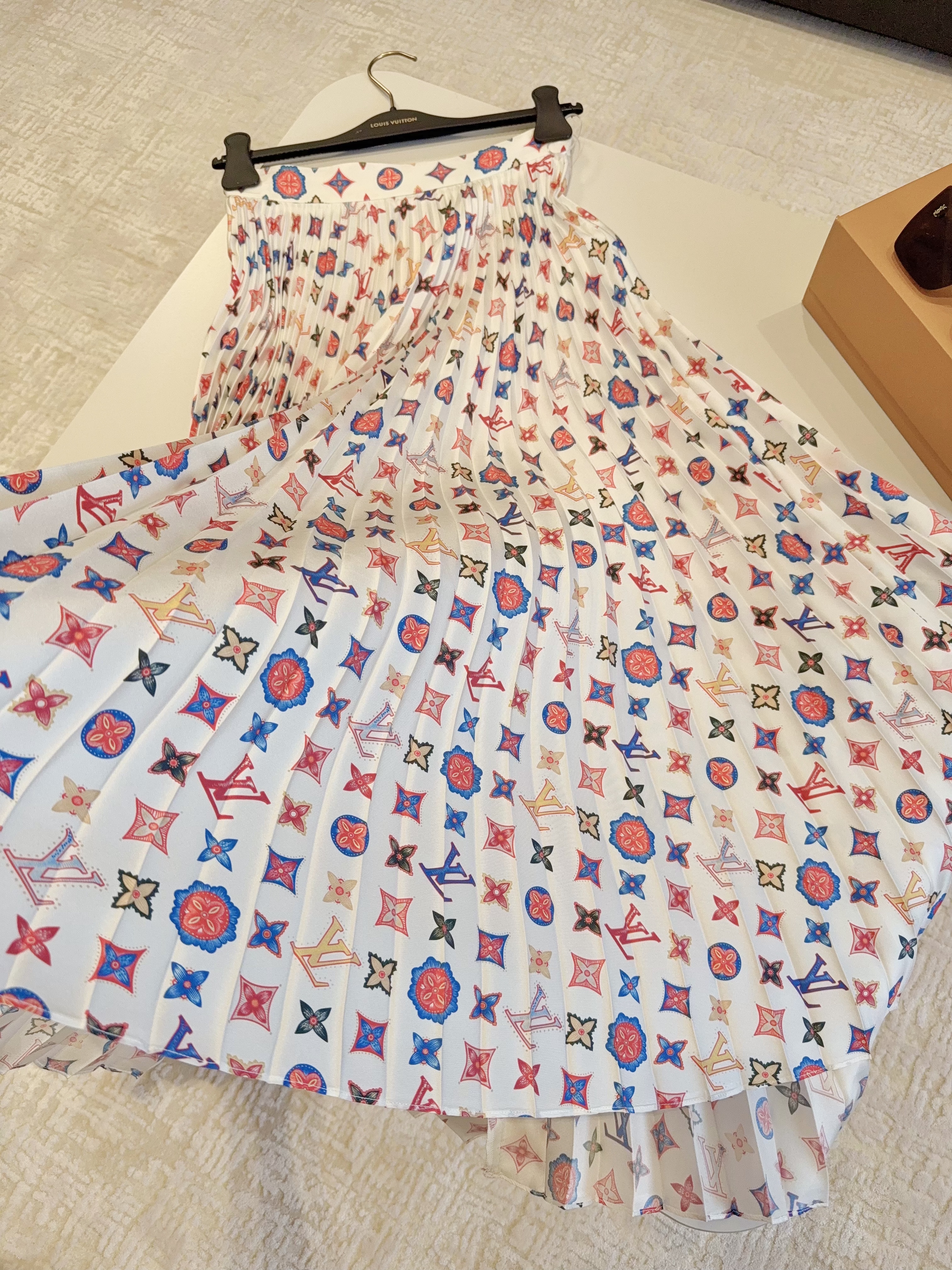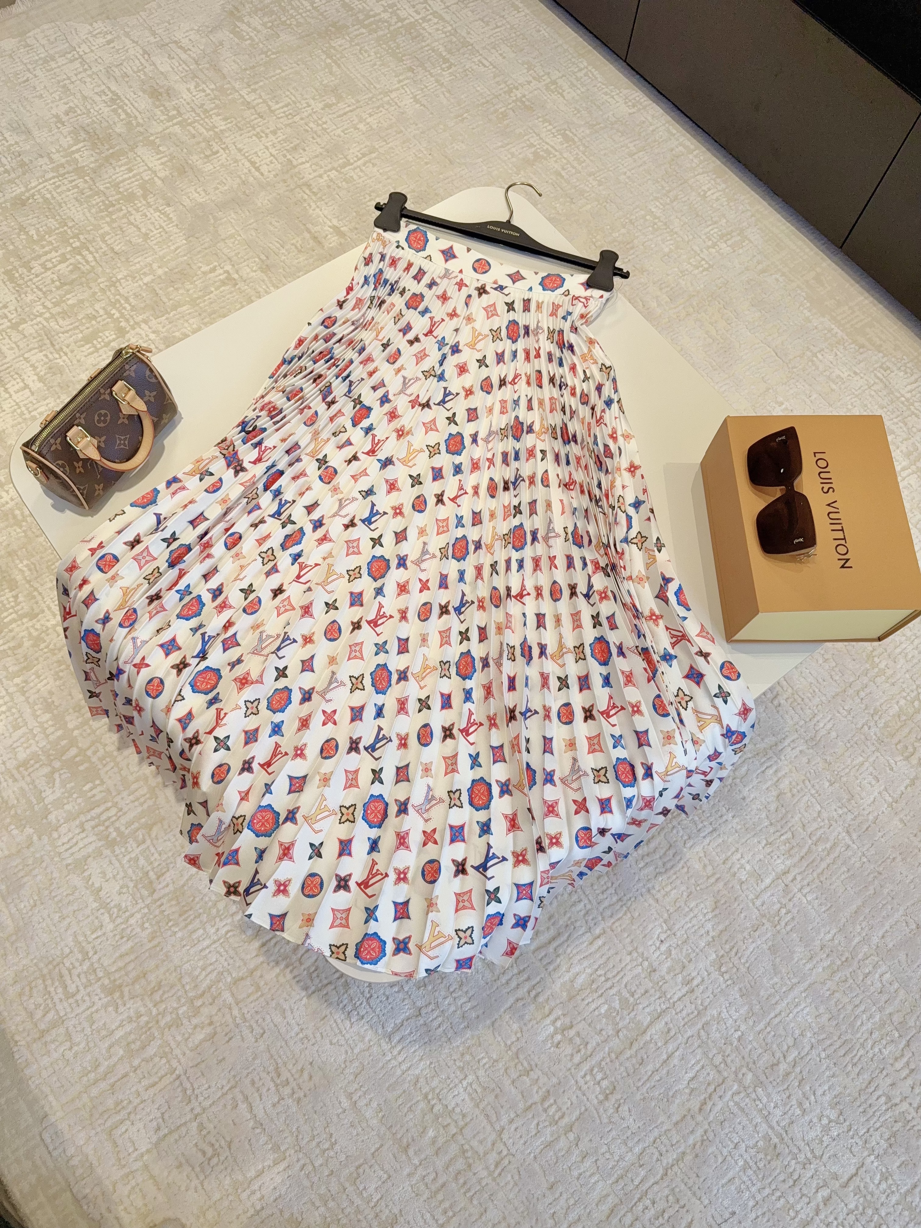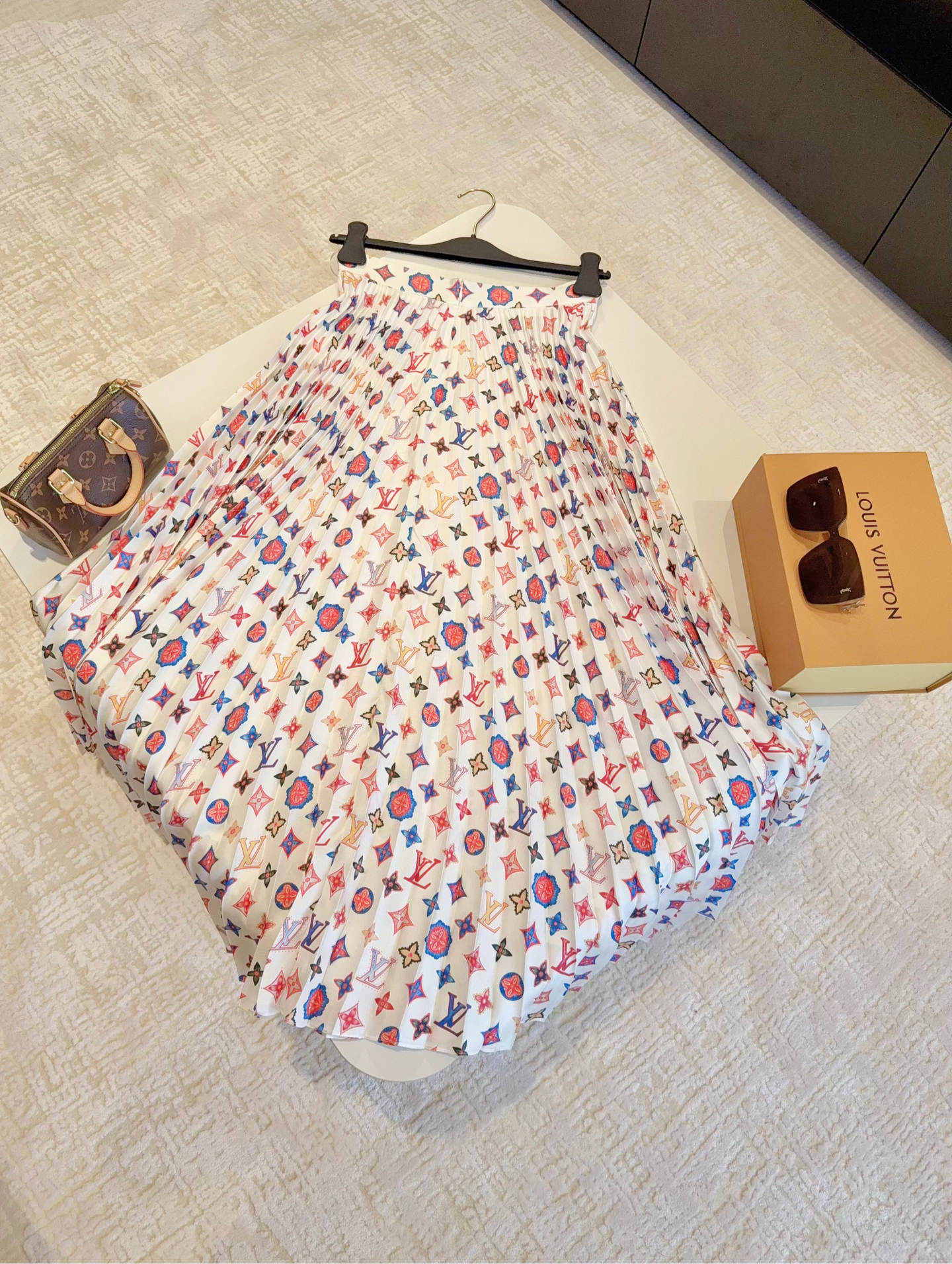 NIGO Louis Vuitton Women's Summer Colorful Letter Printed Pleated Mid Waist Silk Casual Half-body Skirt #nigo75484