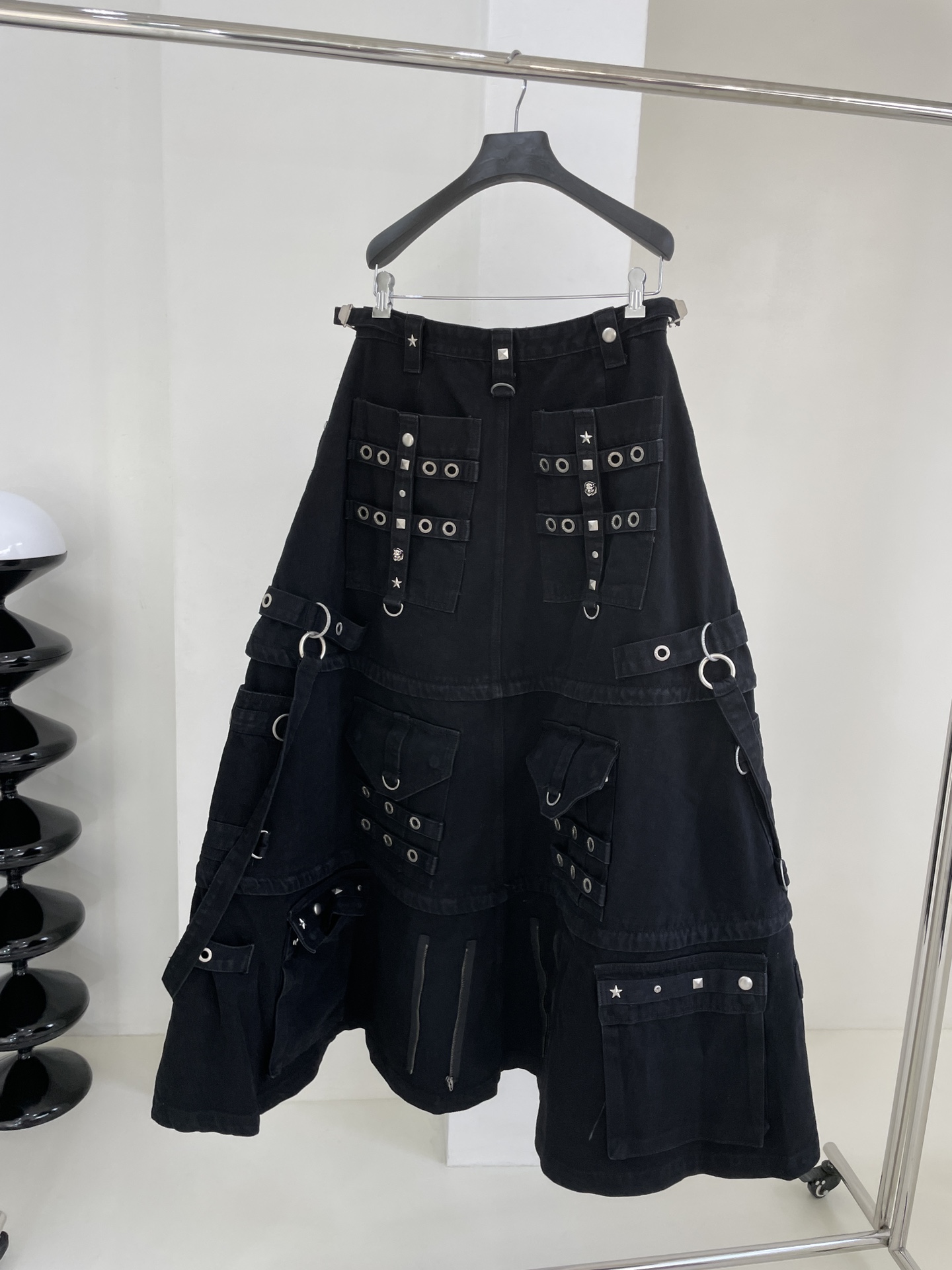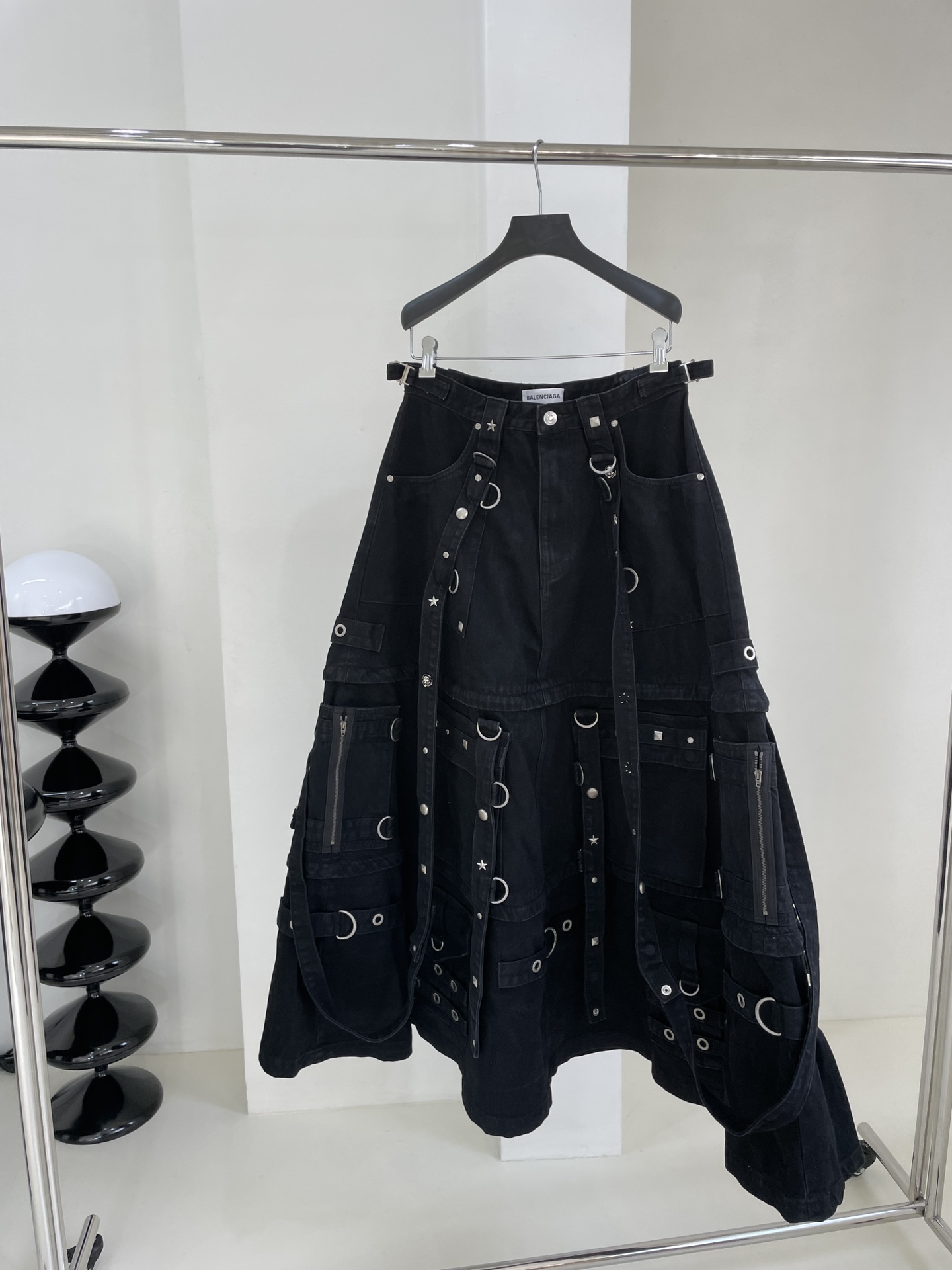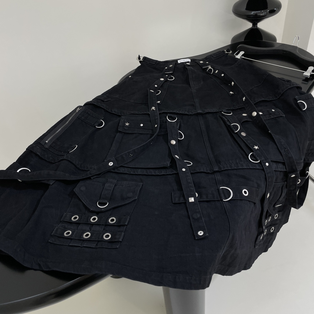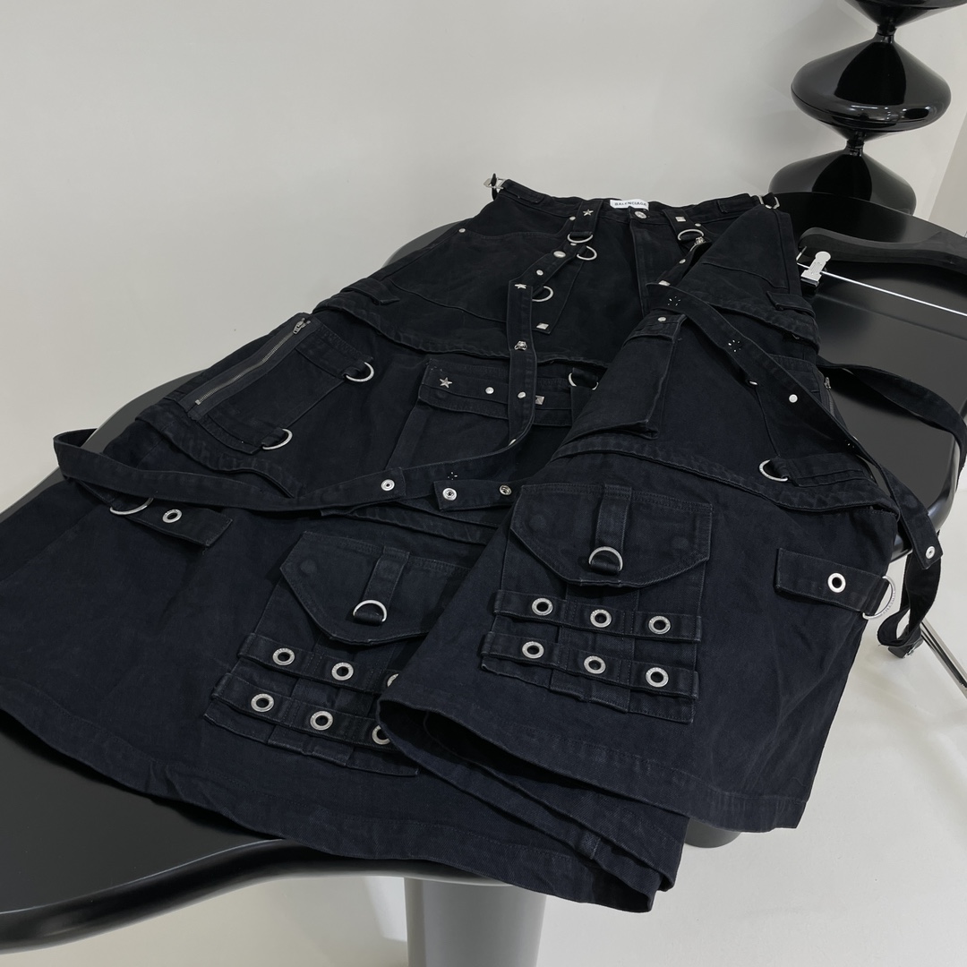 NIGO Balenciaga Women's Spring and Autumn High Street Metal Embellished Halter Skirt Black Loose Denim Long Skirt Ngvp #nigo6891