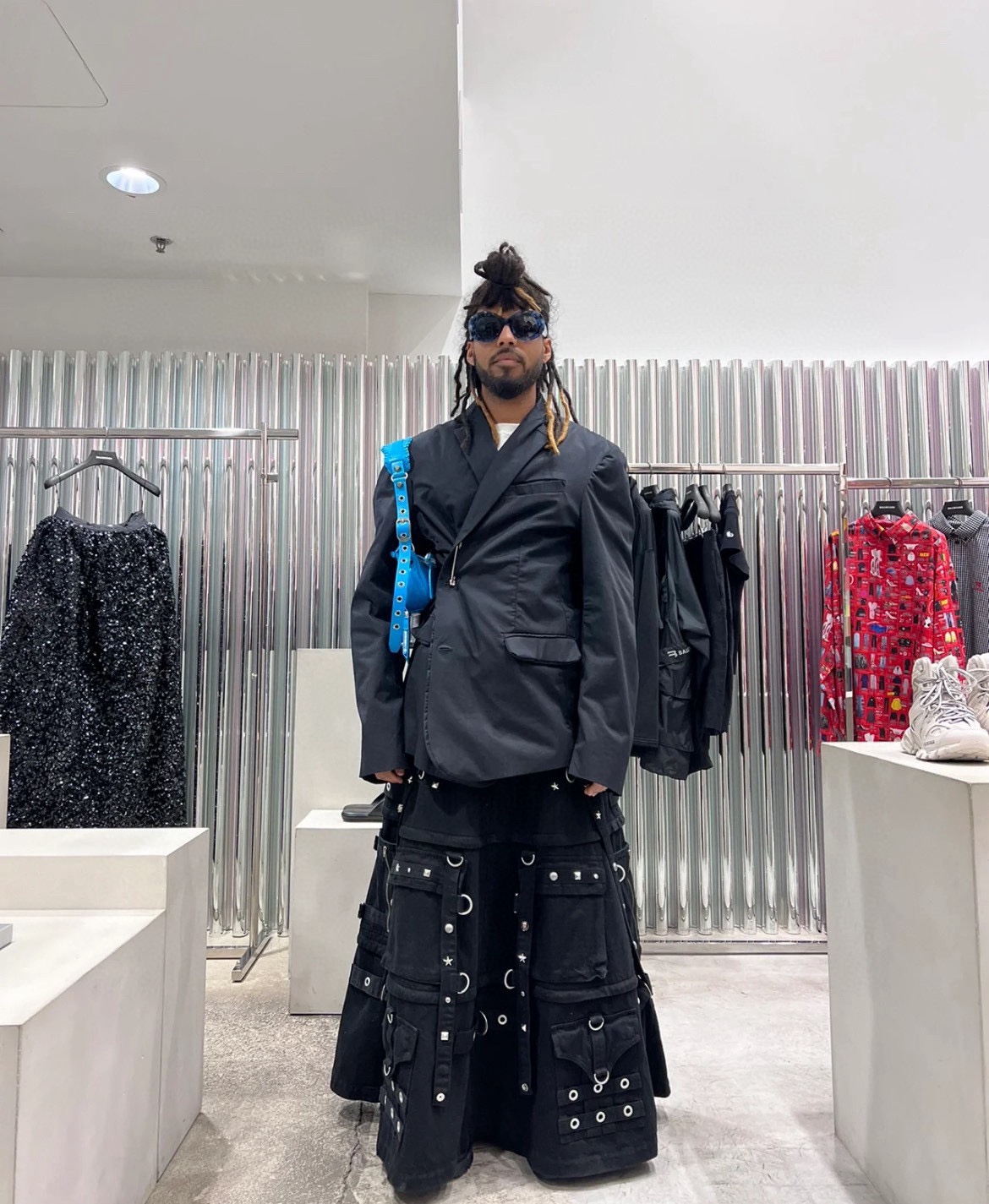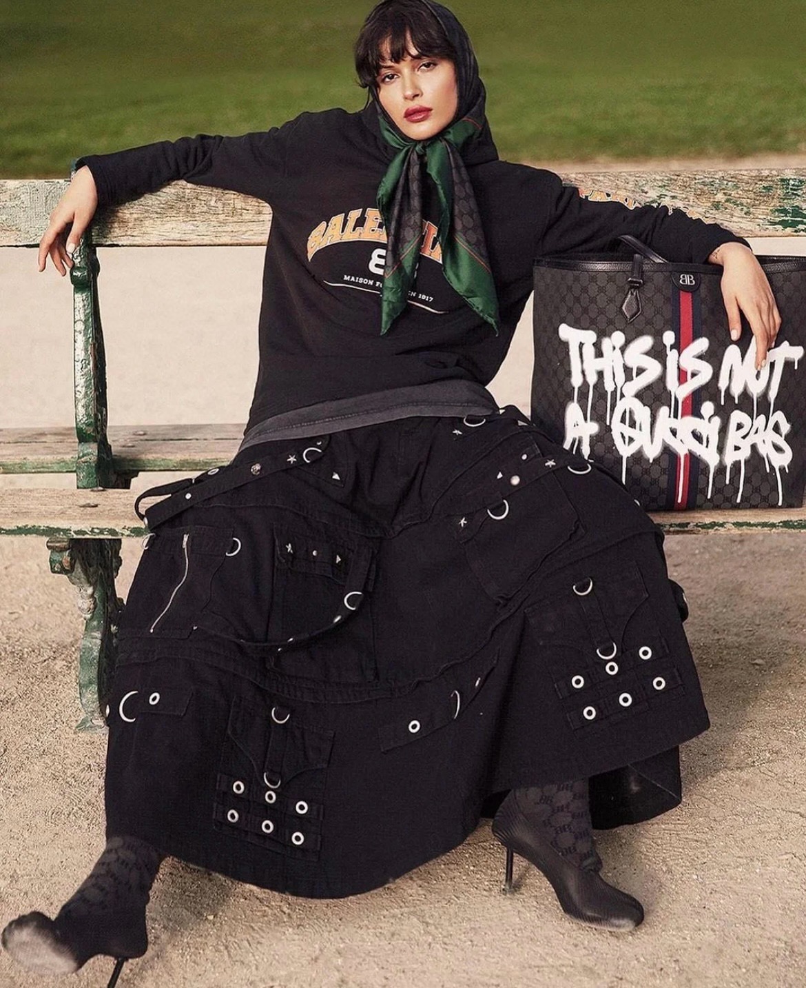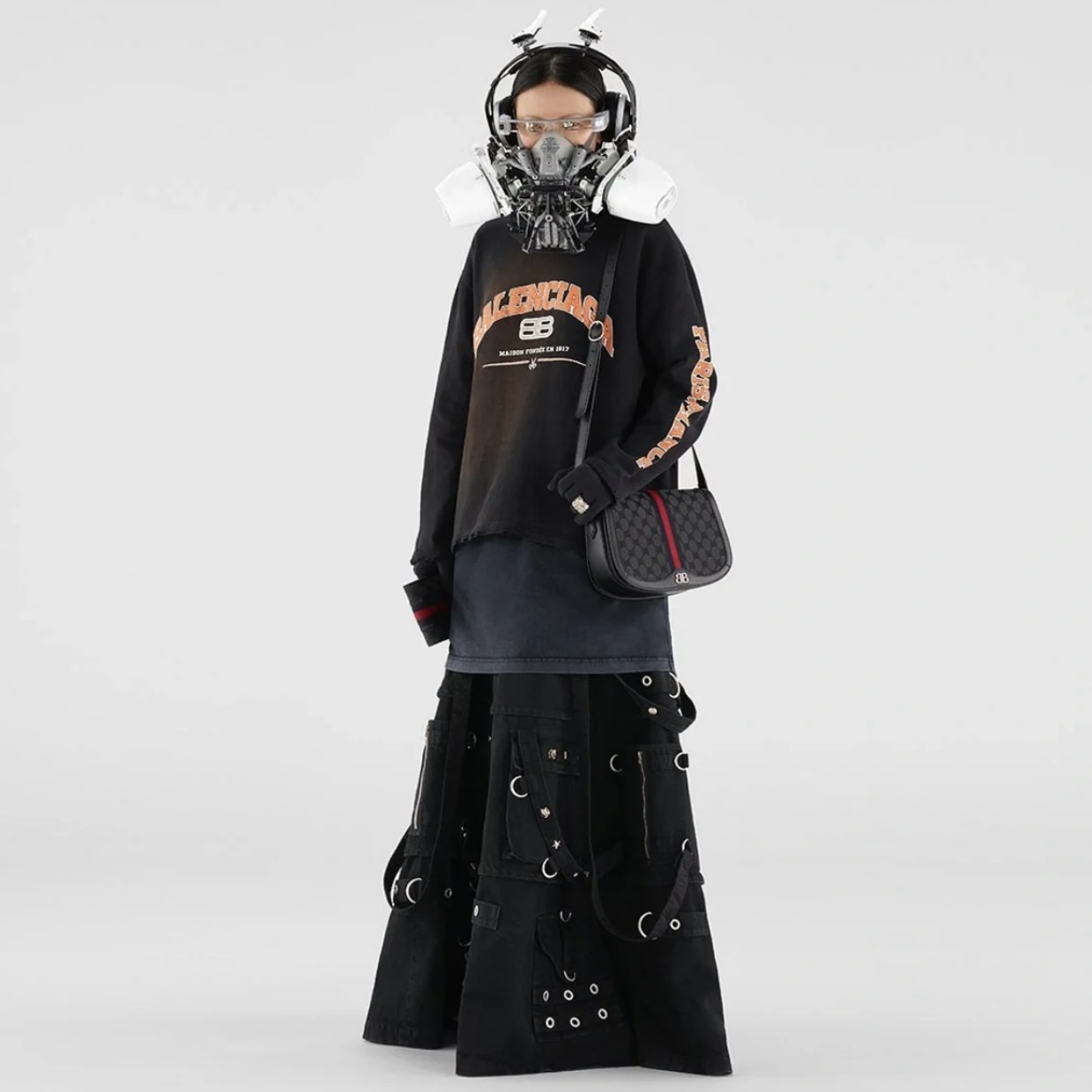 NIGO Balenciaga Women's Spring and Autumn High Street Metal Embellished Halter Skirt Black Loose Denim Long Skirt Ngvp #nigo6891