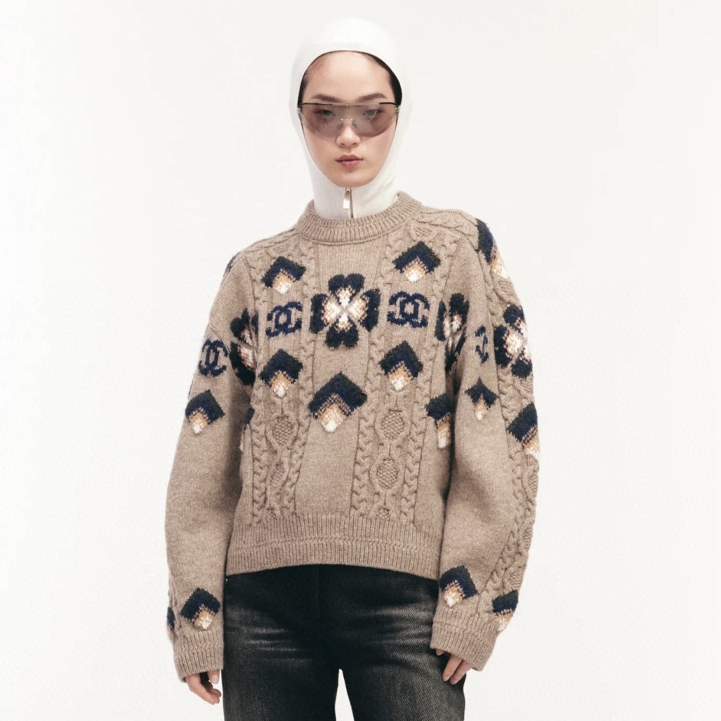 NIGO Chanel Women's Fall And Winter Clover Jacquard Round Neck Knit Long Sleeve Pullover Sweater #nigo74427