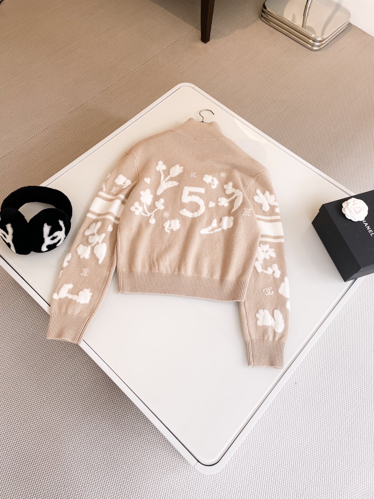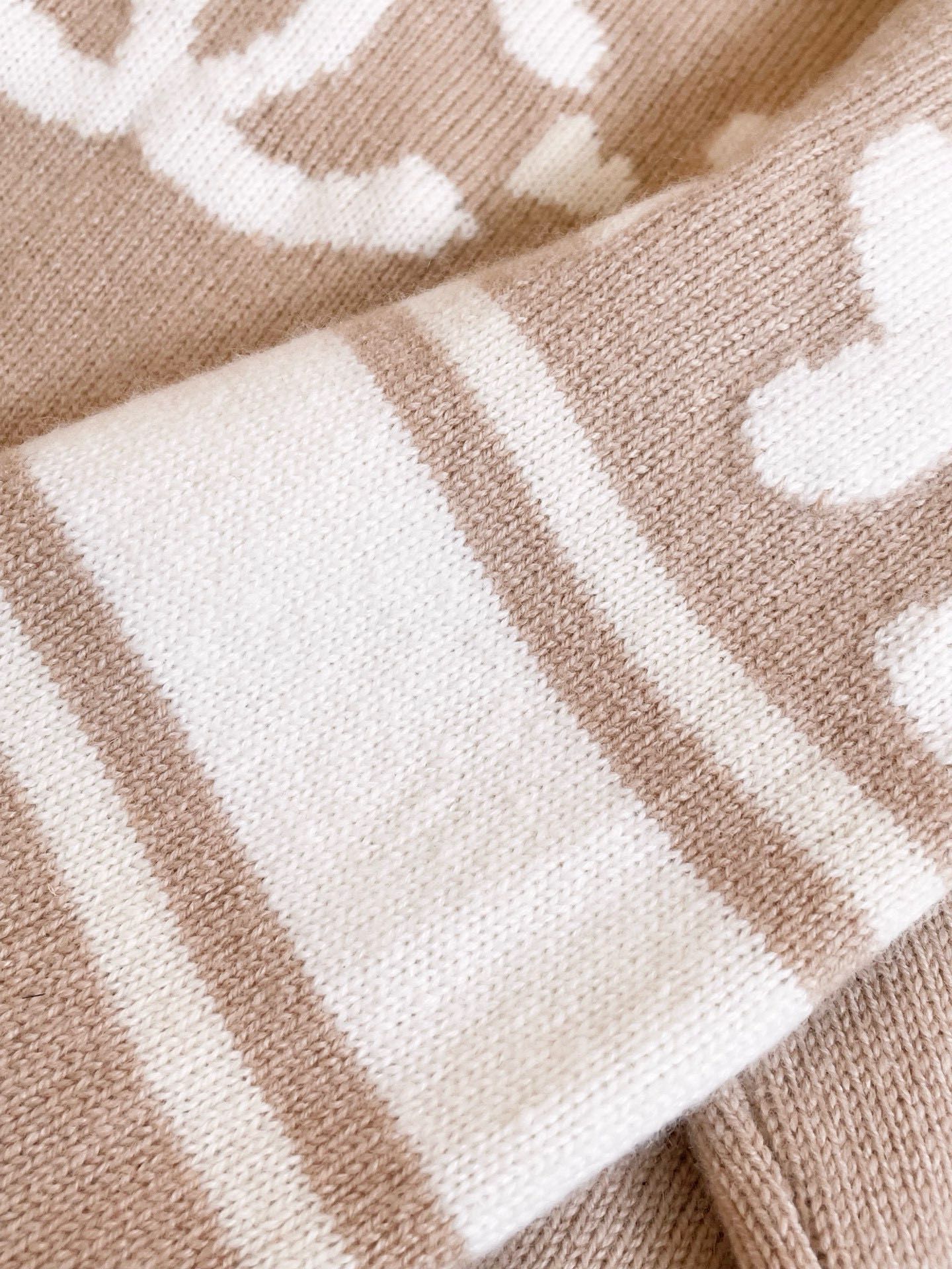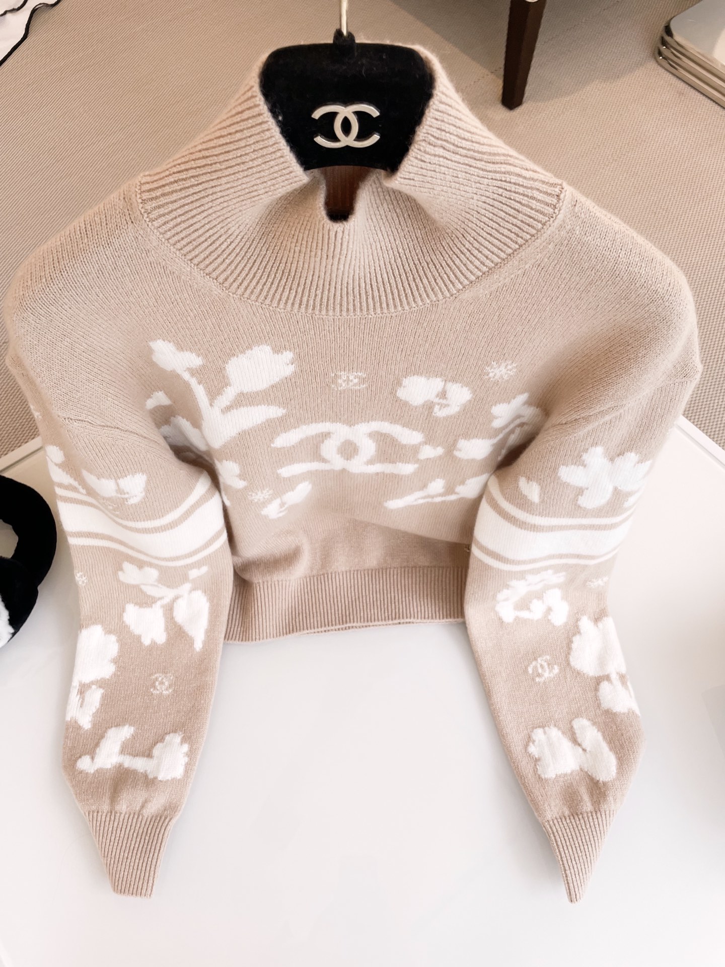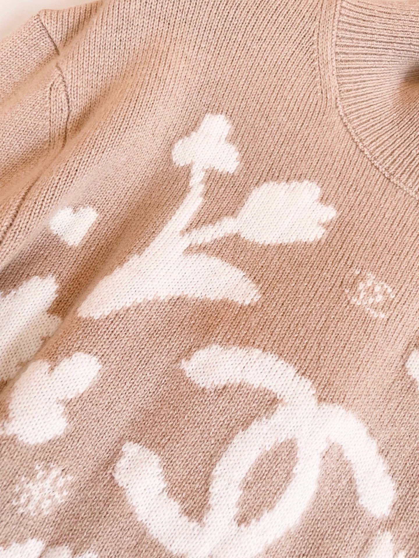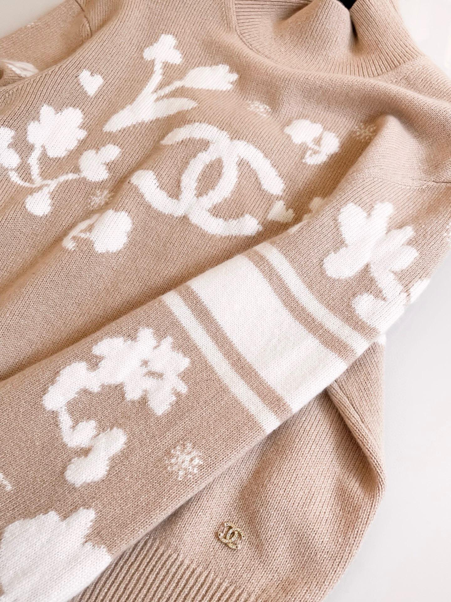 NIGO Chanel Women's Spring and Autumn Logo Printed High Neck Pullover Drop Shoulder Long Sleeve Cashmere Sweater #nigo74615