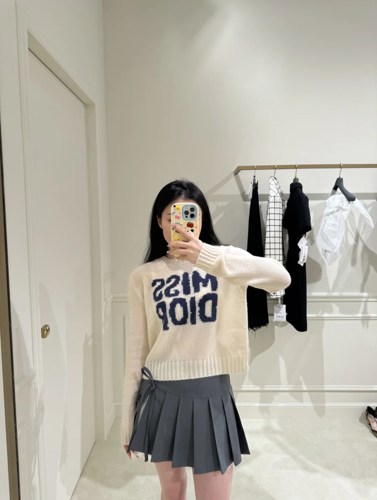 NIGO Dior Women's Autumn and Winter Logo Letter Applique Round Neck Long Sleeve Cashmere Sweater #nigo72788