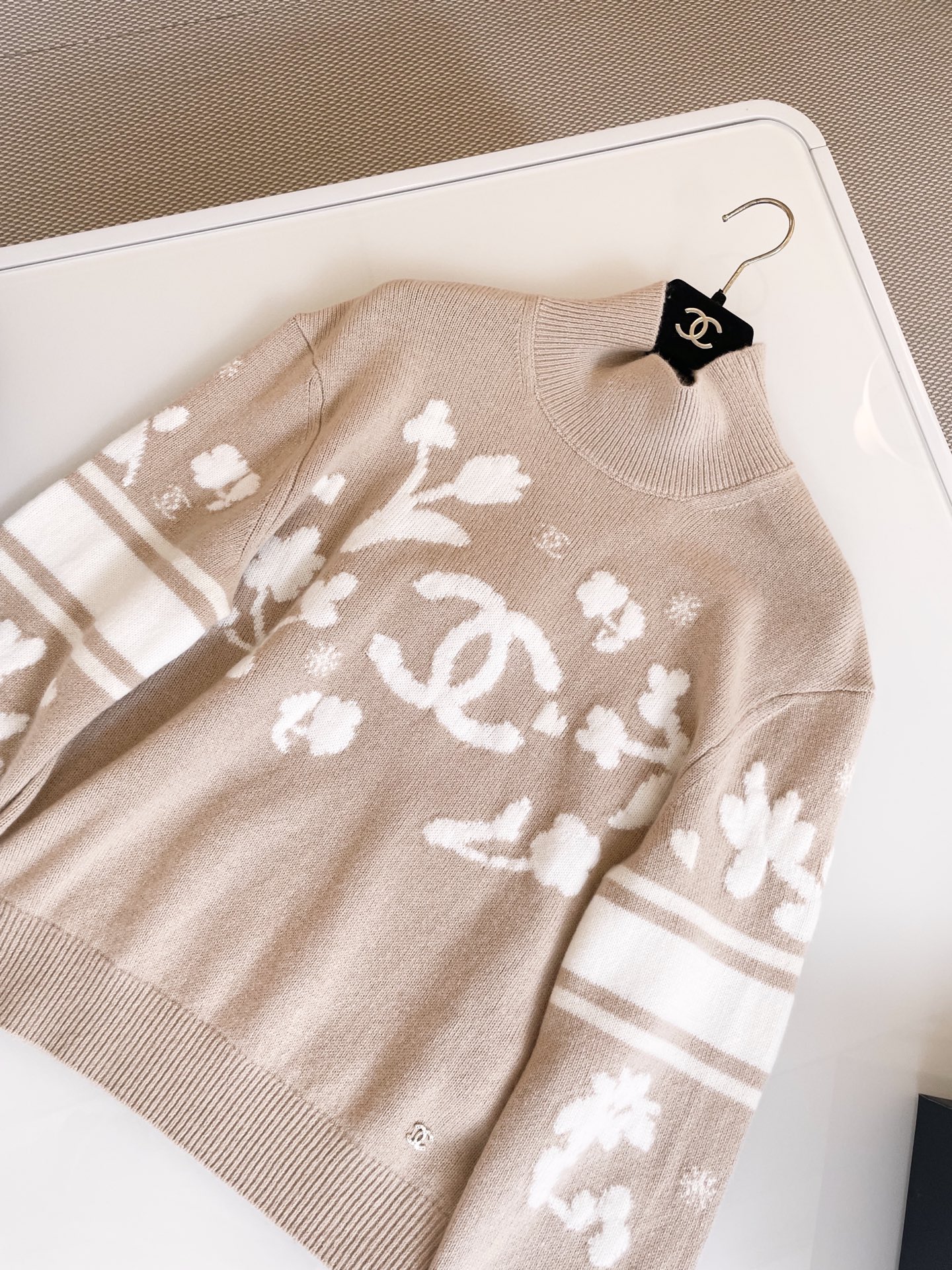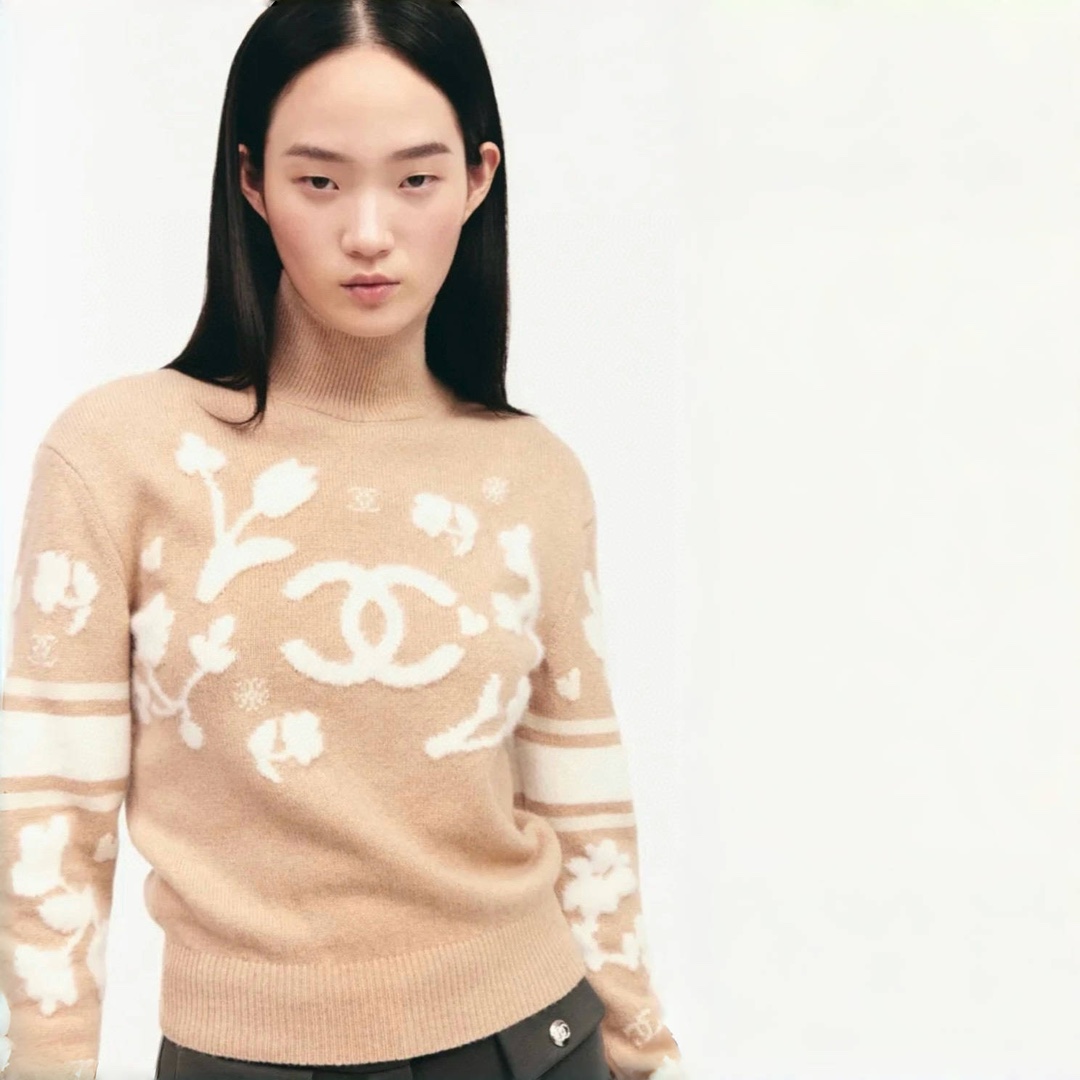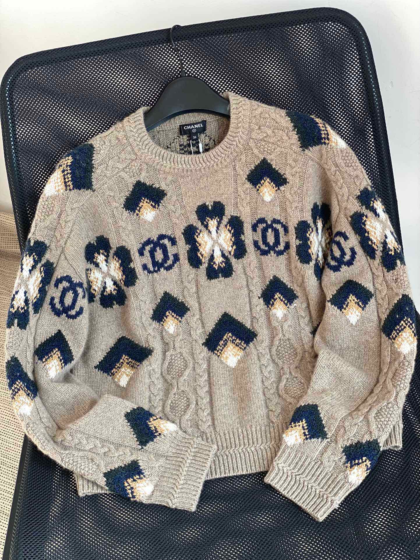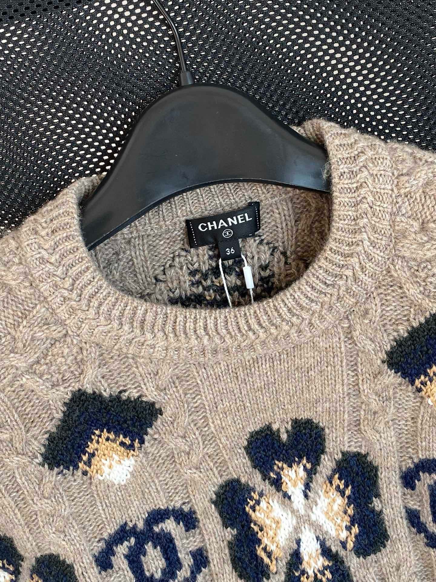 NIGO Chanel Women's Fall And Winter Clover Jacquard Round Neck Knit Long Sleeve Pullover Sweater #nigo74427