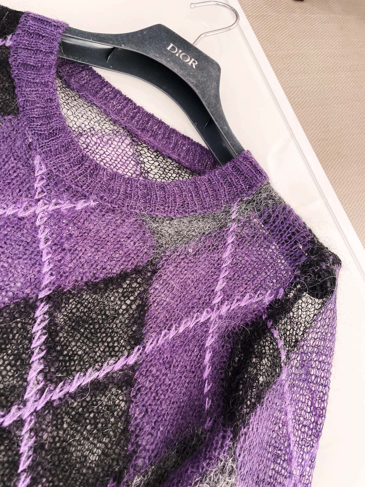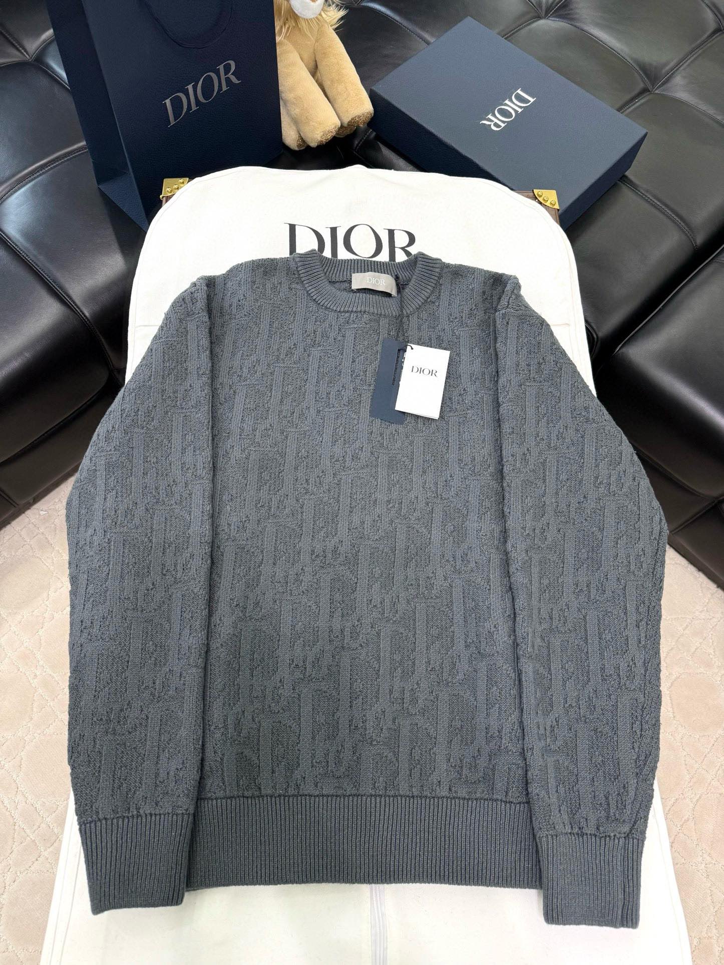 NIGO Dior Men's Spring and Autumn Solid Color Printed Ribbed Crew Neck Knit Sweater #nigo74476